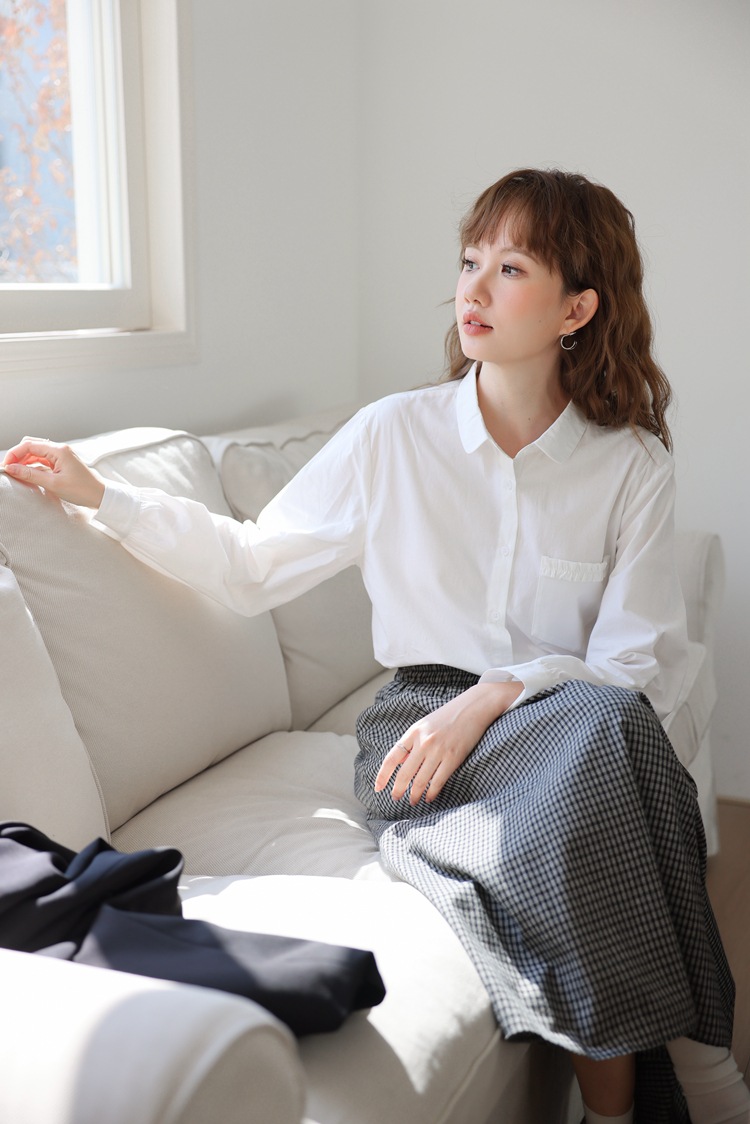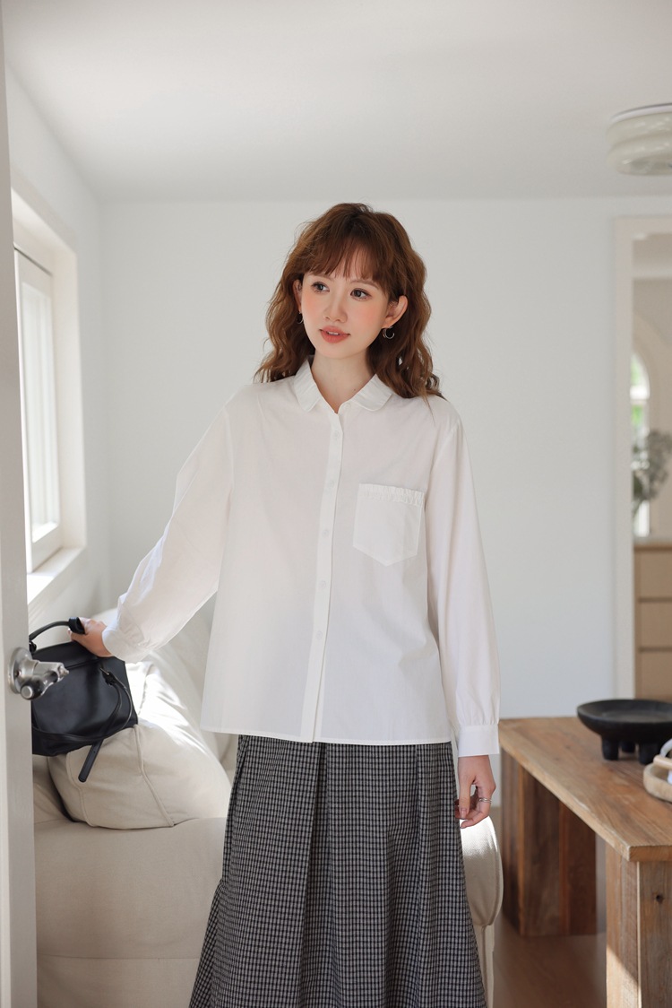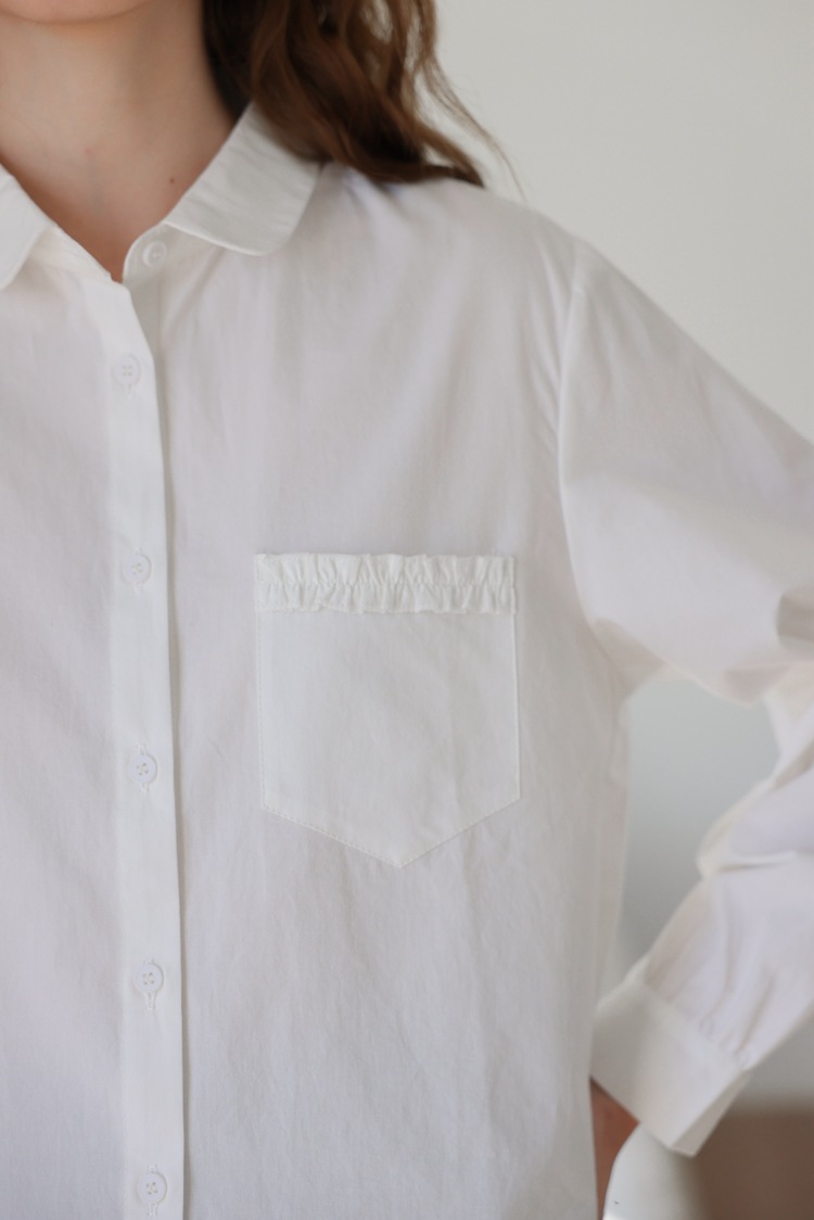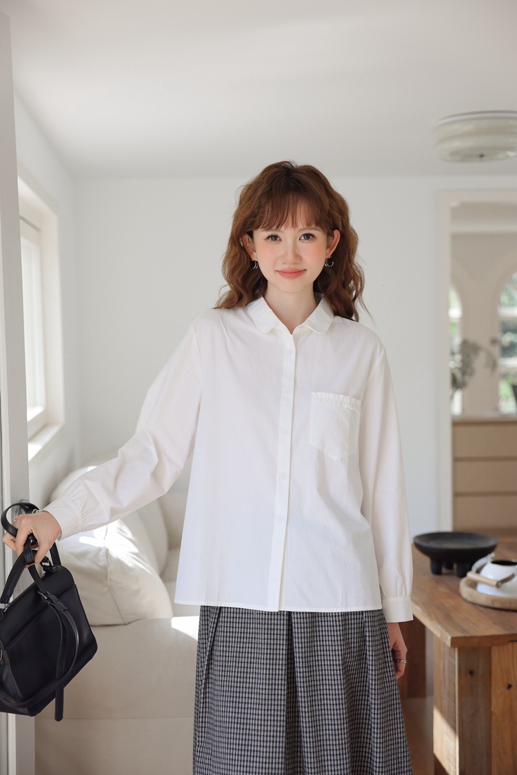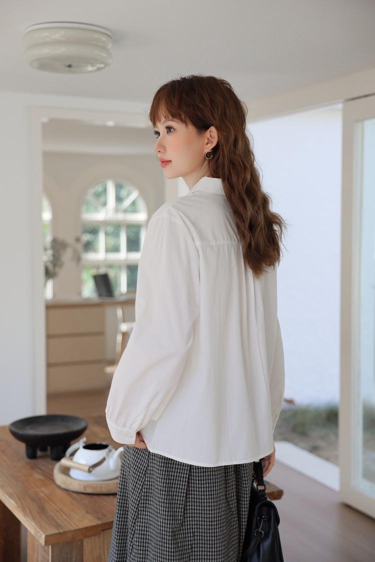 2025 년 봄 새로운 한국 통근 직장 스타일 간단한 흰색 최소 스타일 포켓 디자인 긴 소매 셔츠