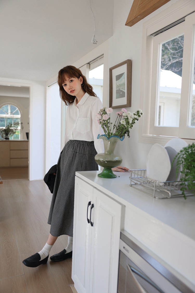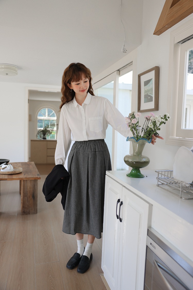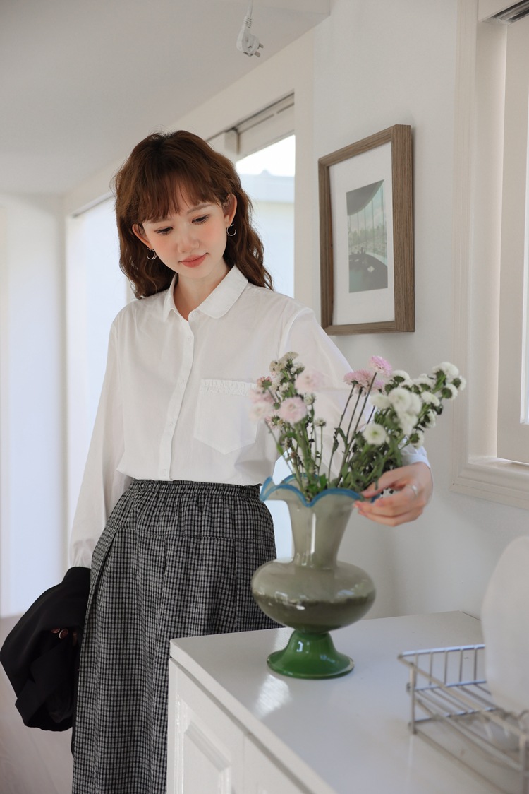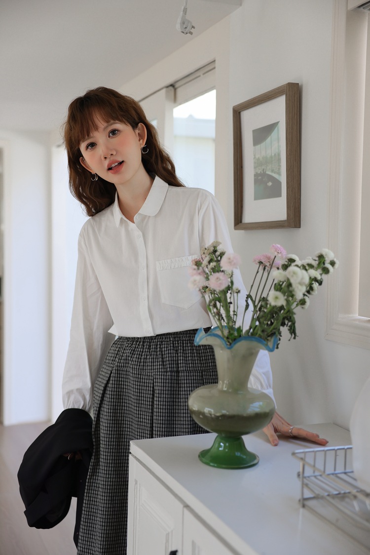 2025 년 봄 새로운 한국 통근 직장 스타일 간단한 흰색 최소 스타일 포켓 디자인 긴 소매 셔츠스토어 가기