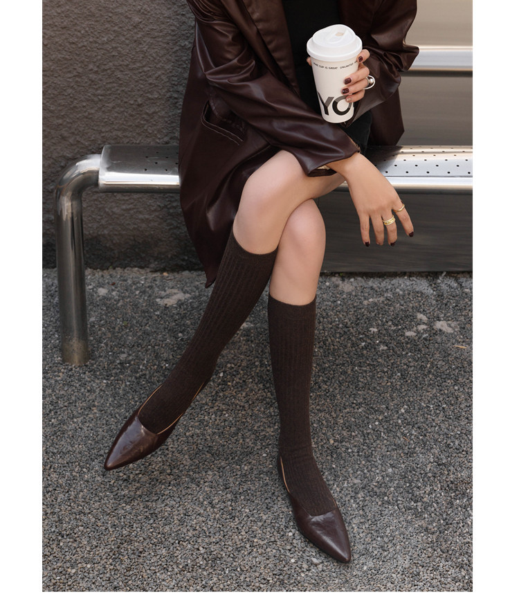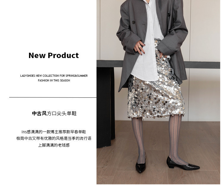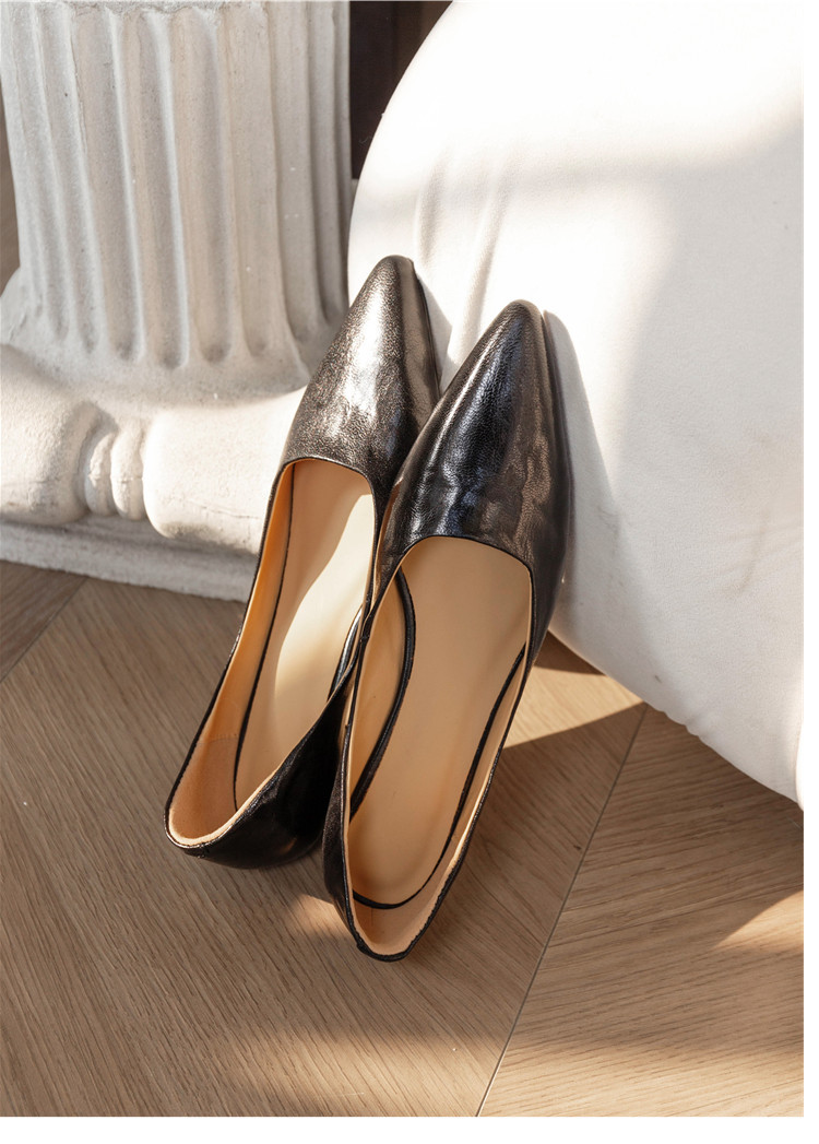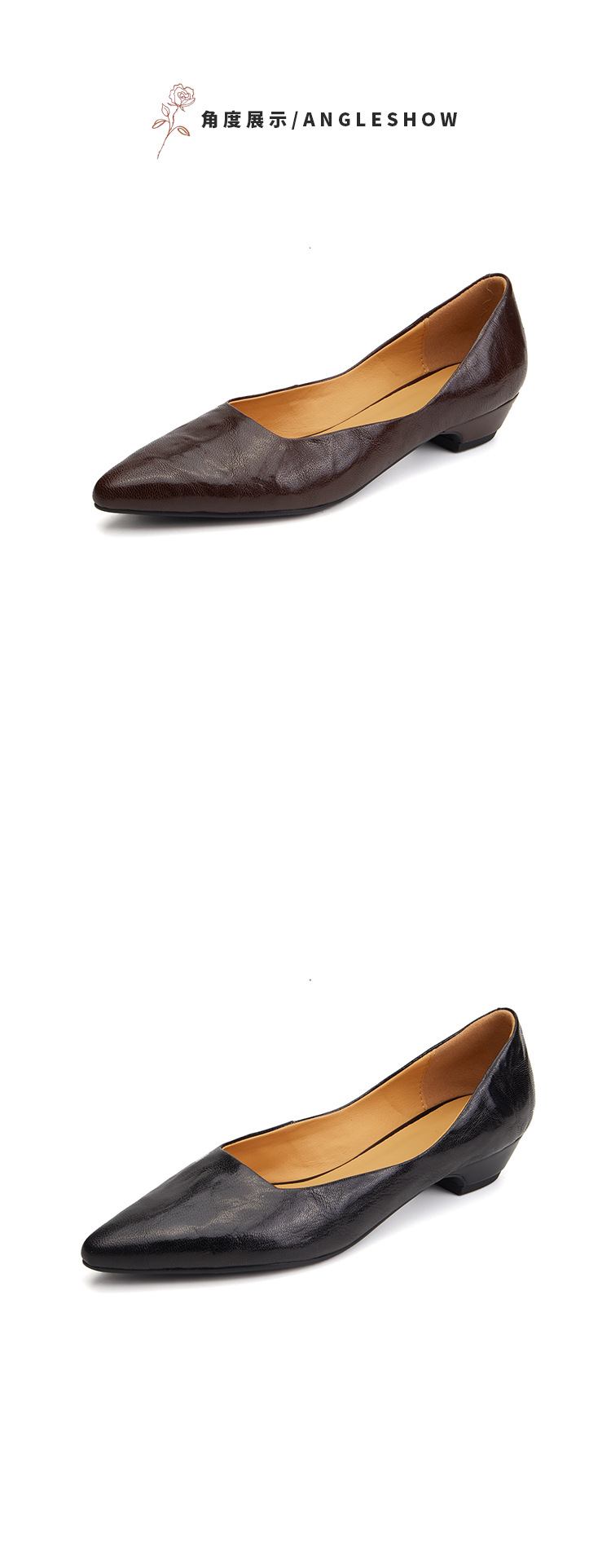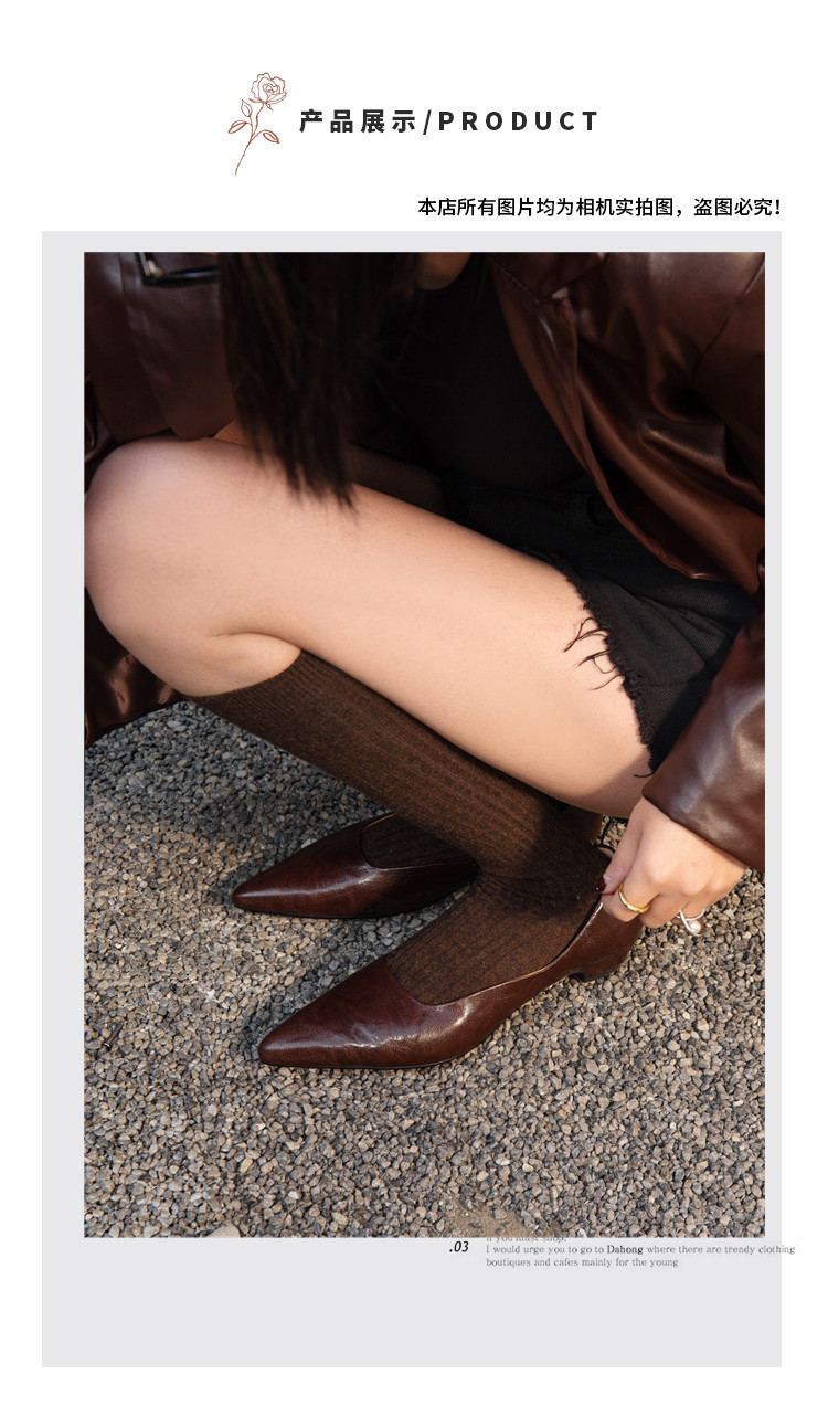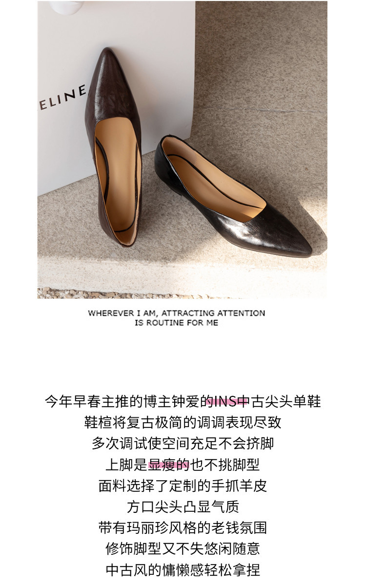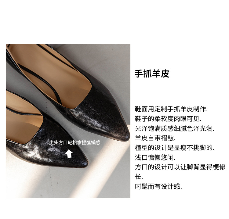 프랑스 정품 가죽 통근 블랙 미드 힐 작업 신발 여성의 2025 새로운 봄과 가을 다크 브라운 뾰족한 얕은 로우 탑 로우 힐 싱글 레이어 신발스토어 가기