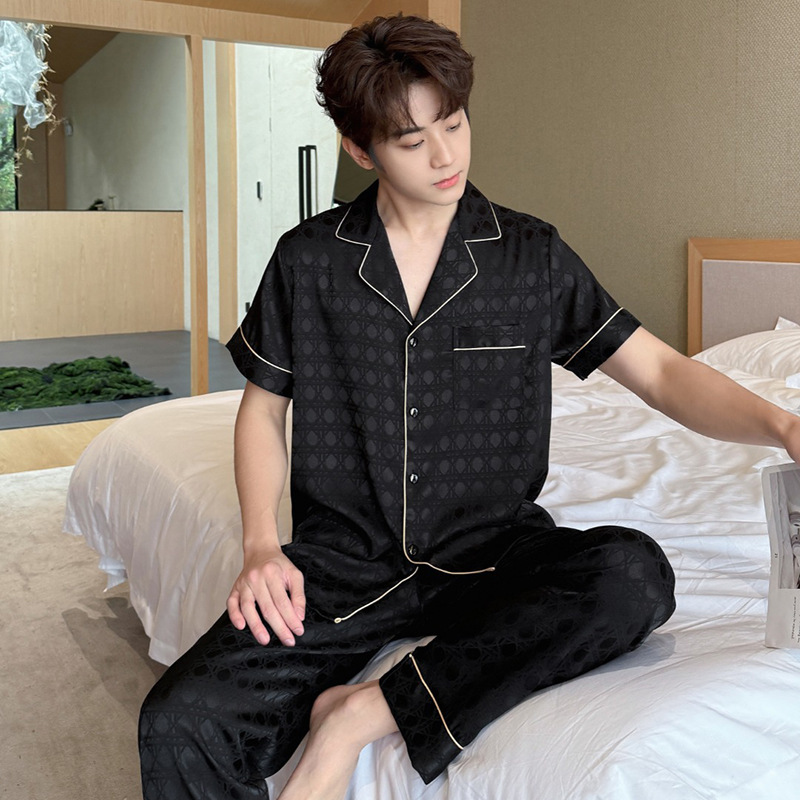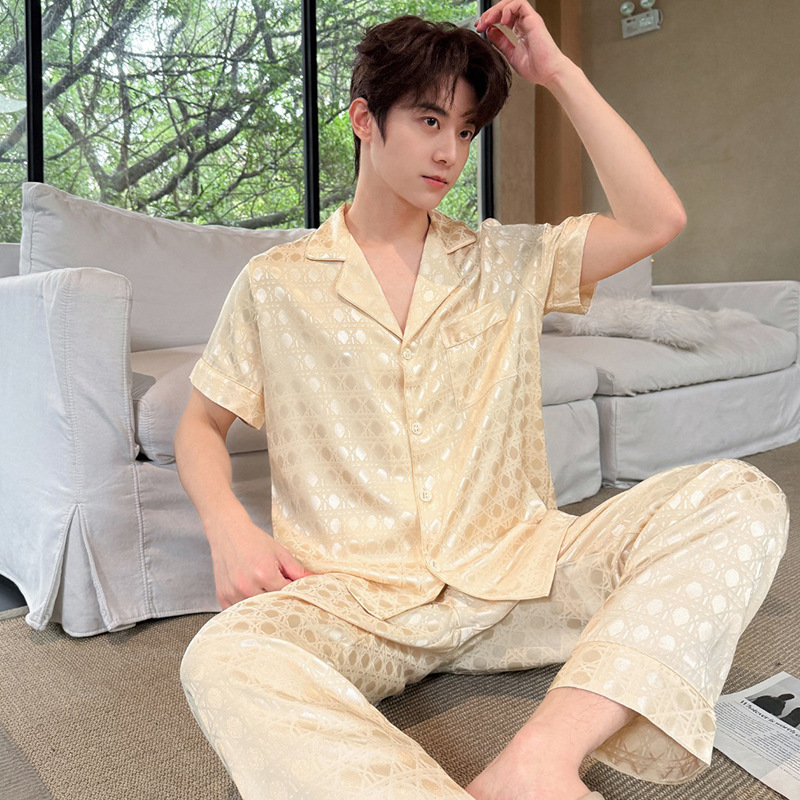 2025 새로운 커플 잠옷 여름 아이스 실크 얇은 짧은 소매 세트 외부 남성 플러스 사이즈 캐주얼 홈 의류스토어 가기