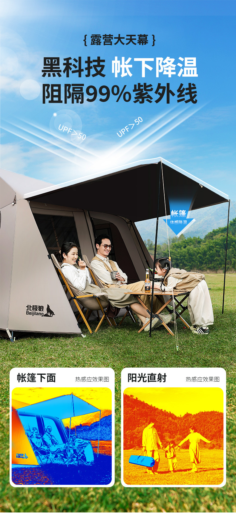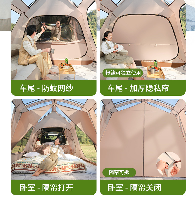 텐트 야외 지붕 능선 13 자동차 꼬리 텐트 검은 고무 자외선 차단제 폭풍우 예방 2 실 1 홀 캐노피 3 대 1 하룻밤 캠핑