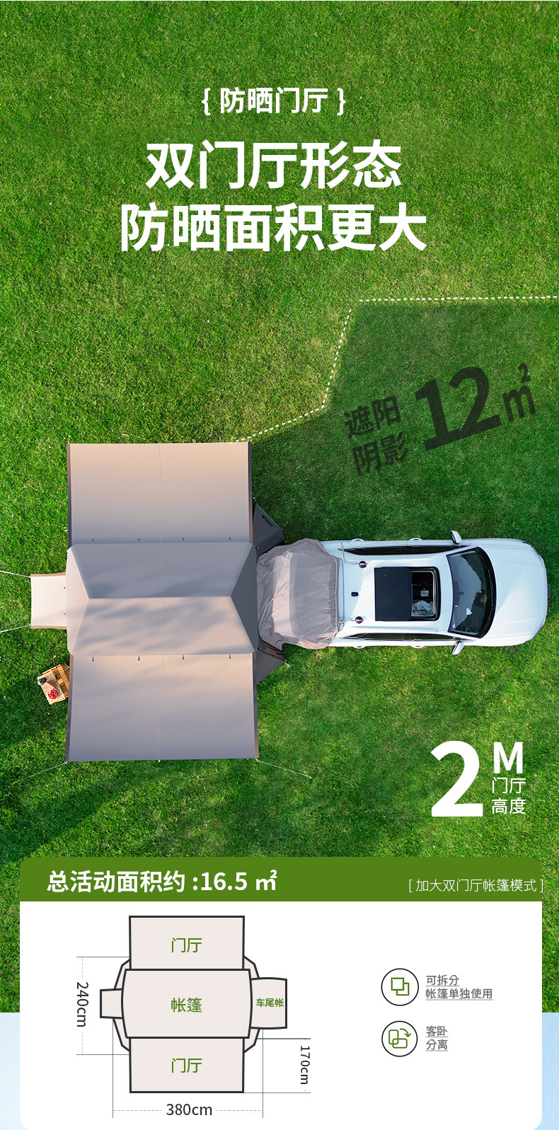 텐트 야외 지붕 능선 13 자동차 꼬리 텐트 검은 고무 자외선 차단제 폭풍우 예방 2 실 1 홀 캐노피 3 대 1 하룻밤 캠핑스토어 가기