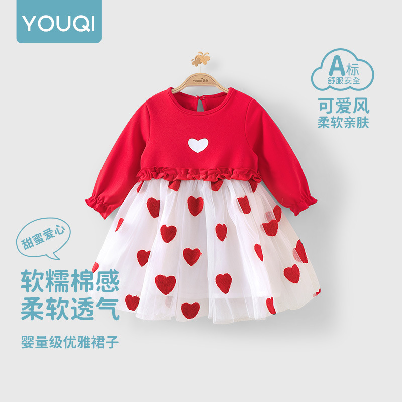 Youqi Girls 원피스 여자 아기 소녀 공주 스커트 판초 베일 스커트 2025 봄 서양식 긴 소매 축제 공주 스커트