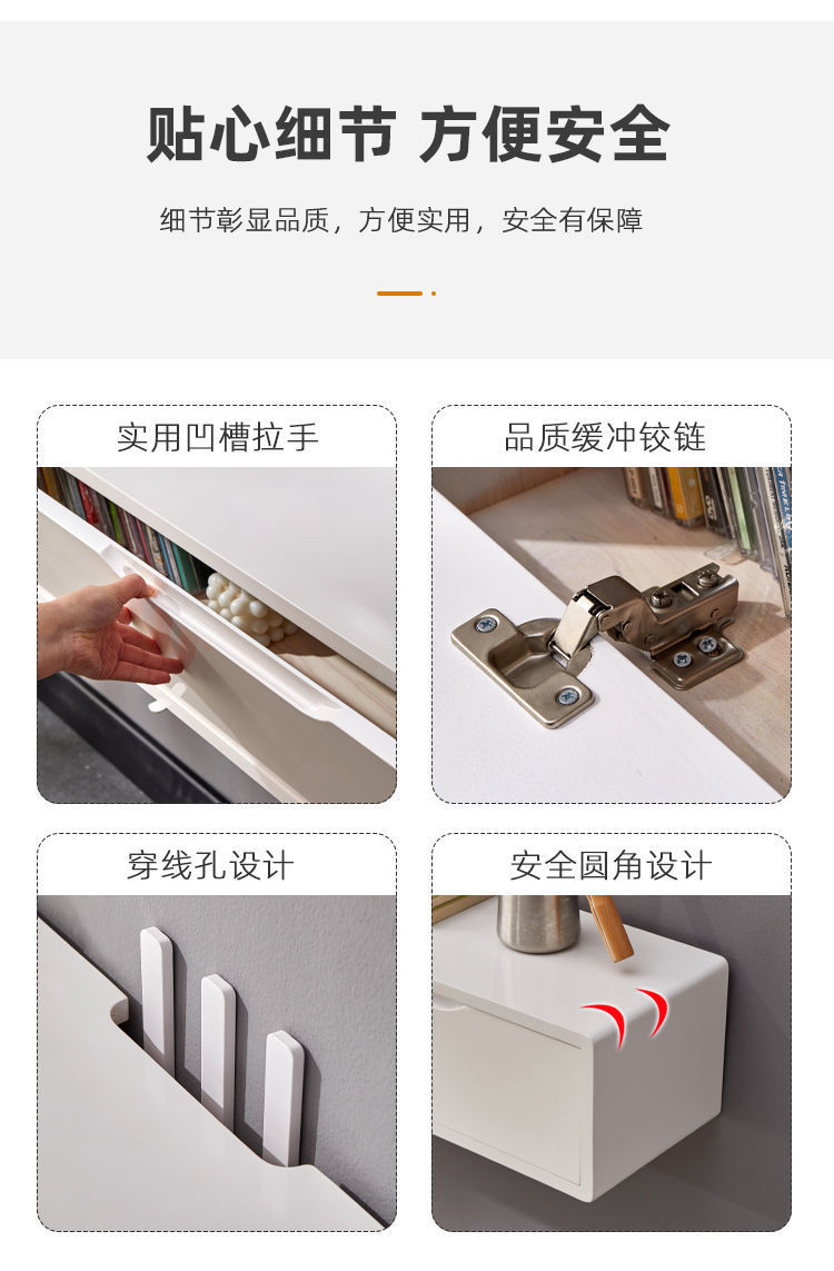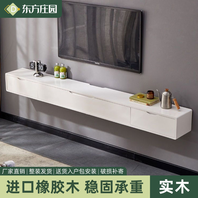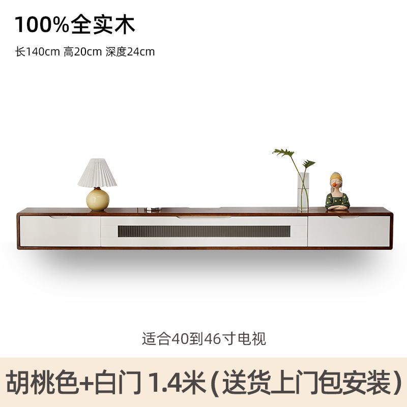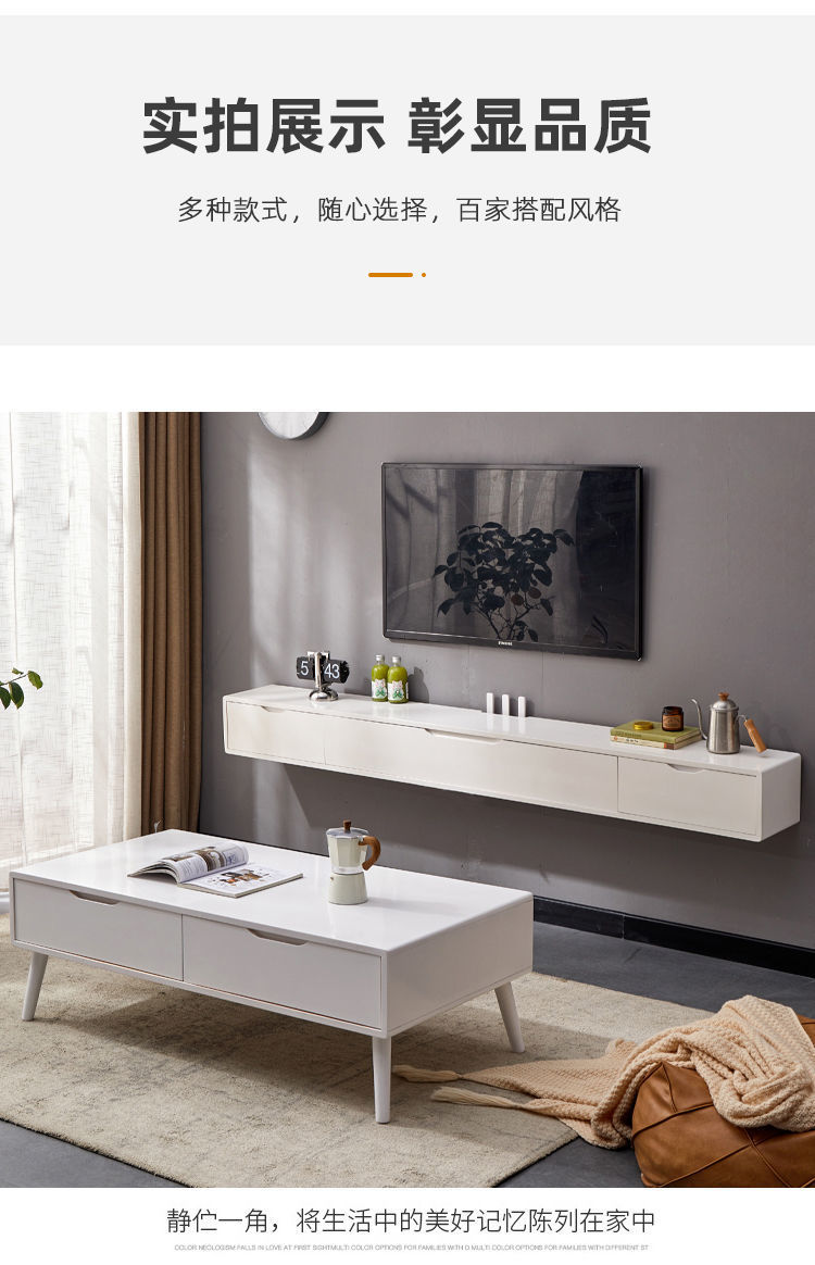 단단한 나무 TV 캐비닛 커피 테이블 조합 벽걸이 거실 벽 작은 아파트 침실 빛 럭셔리 현대 간단한 교수형 캐비닛