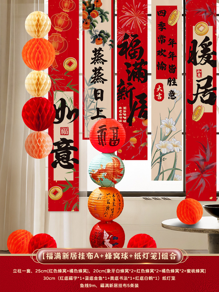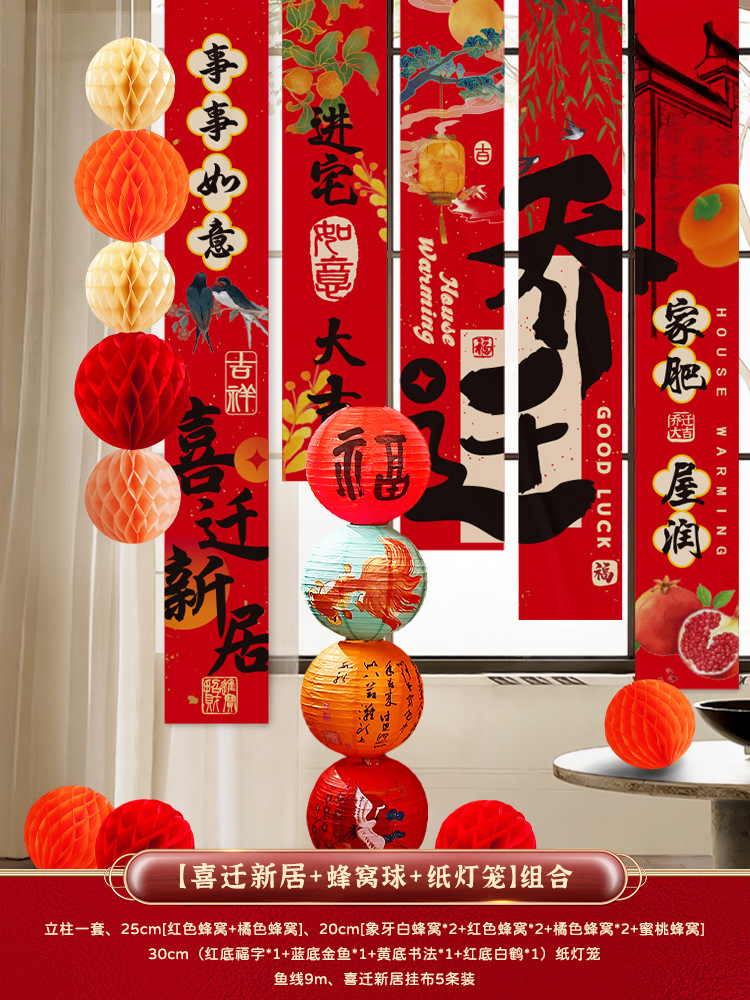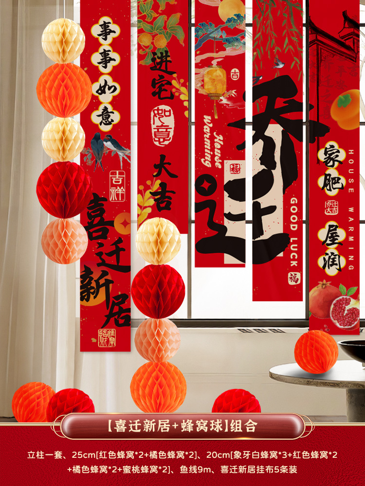 • 집들이 - 새 집으로 이사하는 행잉 천 + 벌집 공 패키지 c