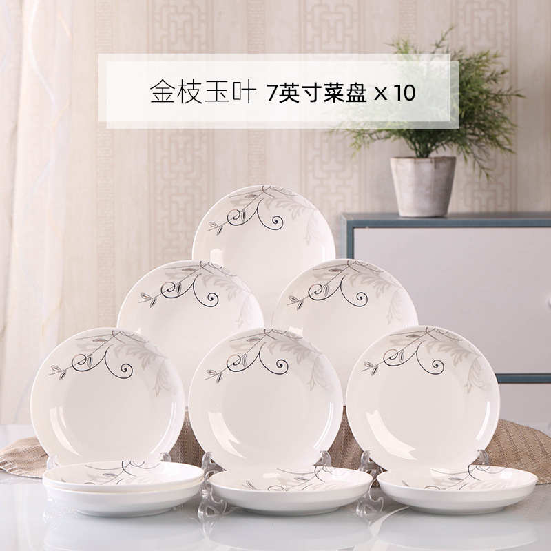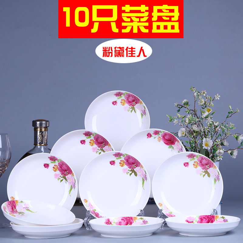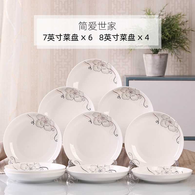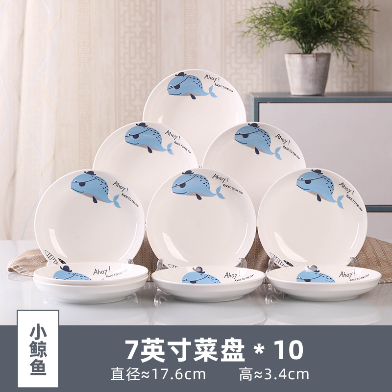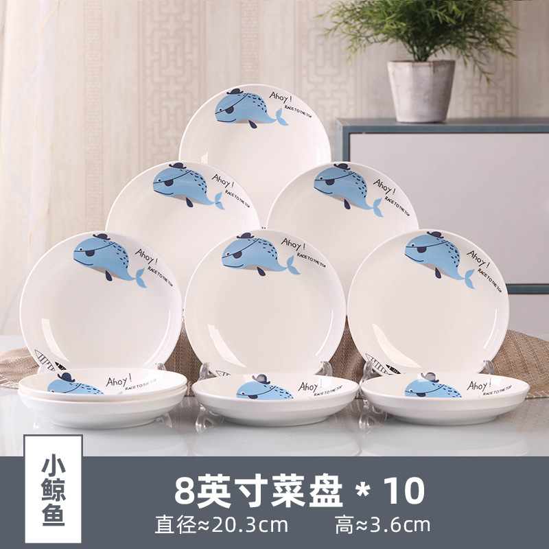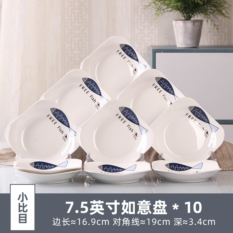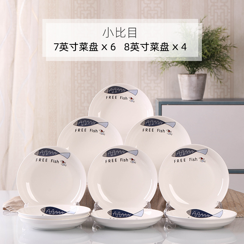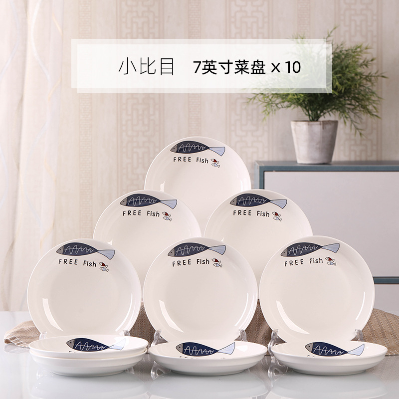 가정용 10 접시 세라믹 식기 라운드 조합 간단한 접시 세트 새로운 생선 접시 창조적 인 접시