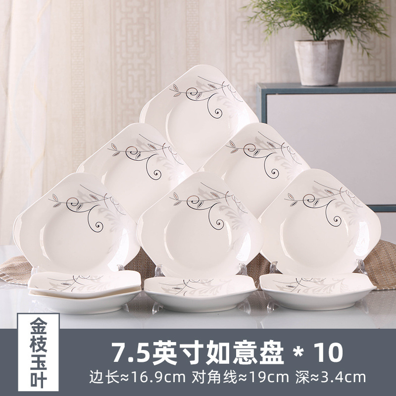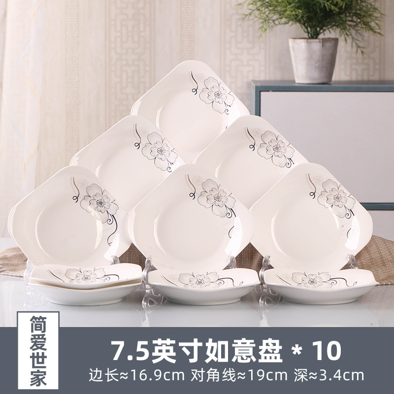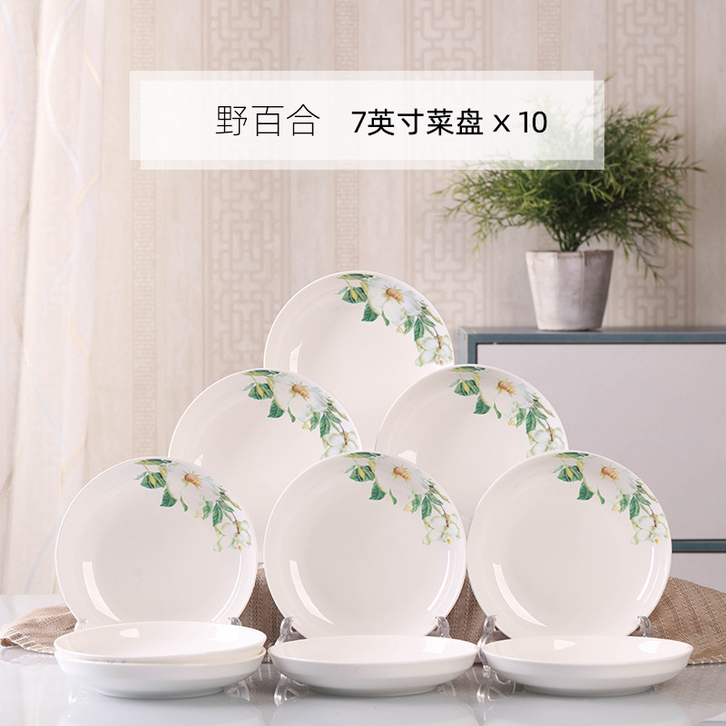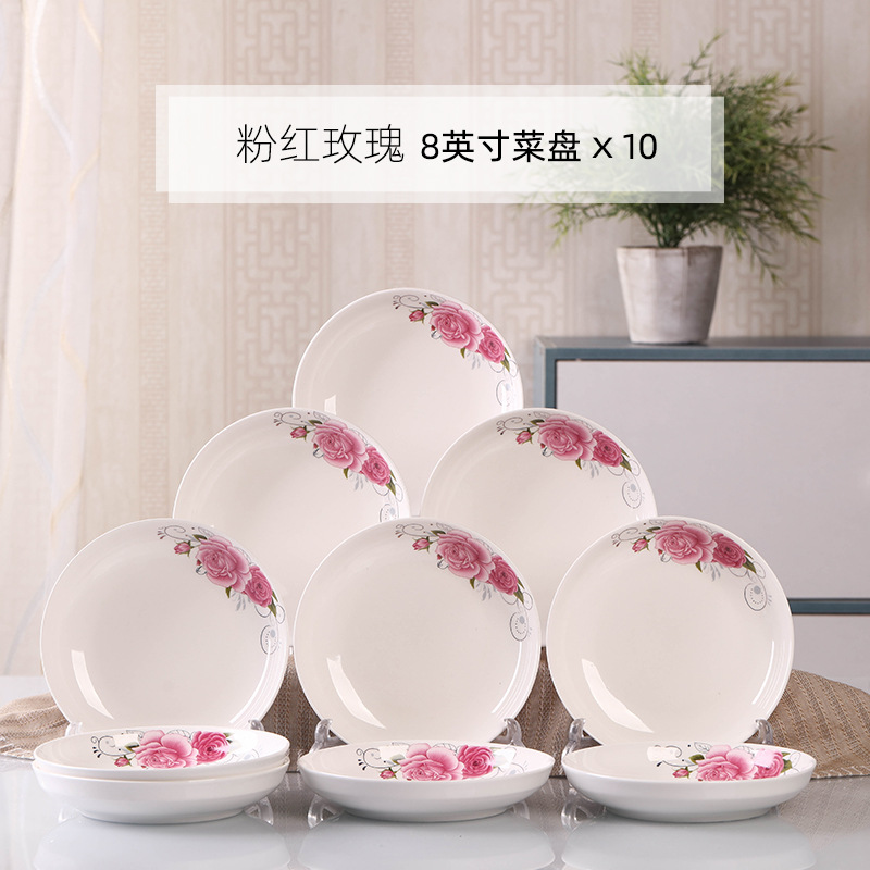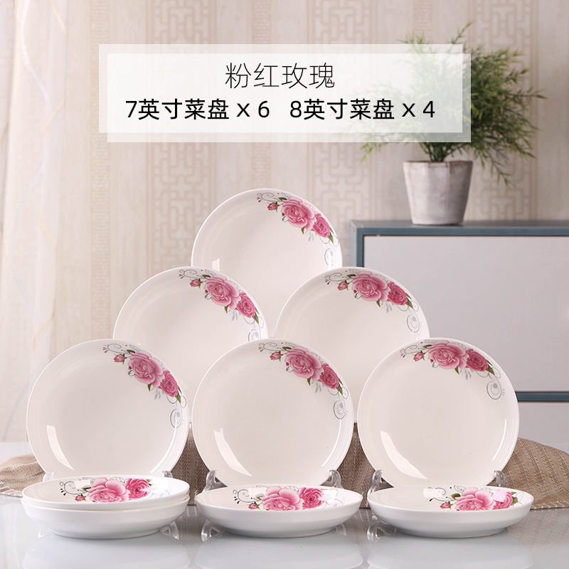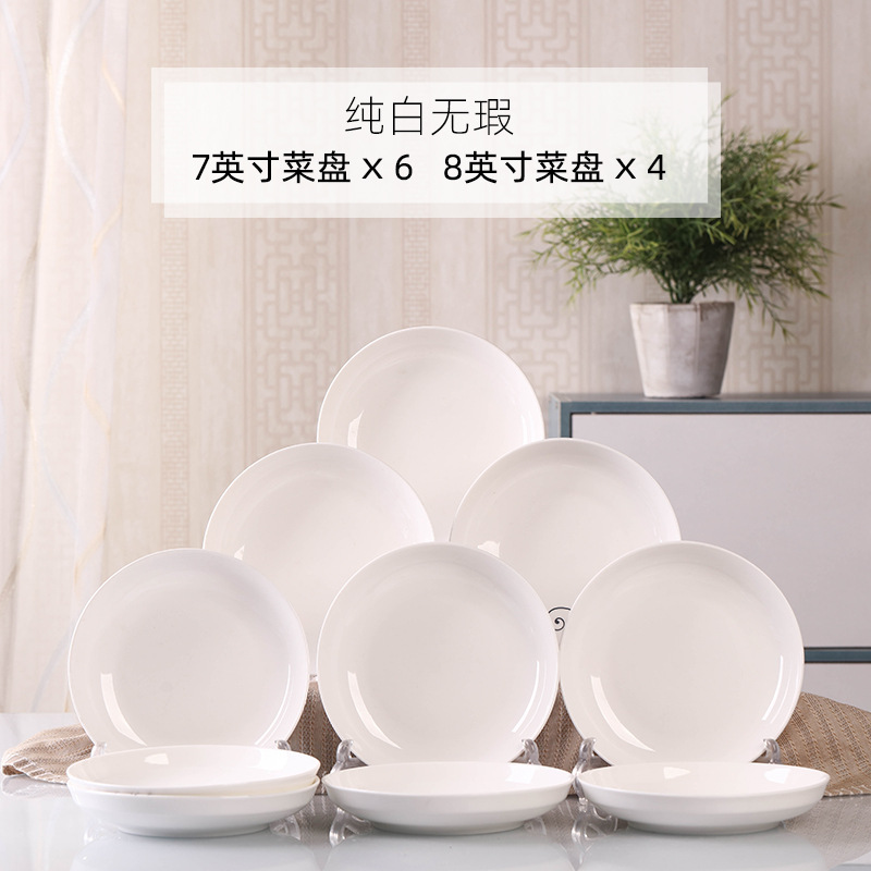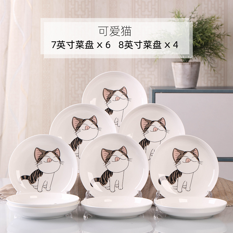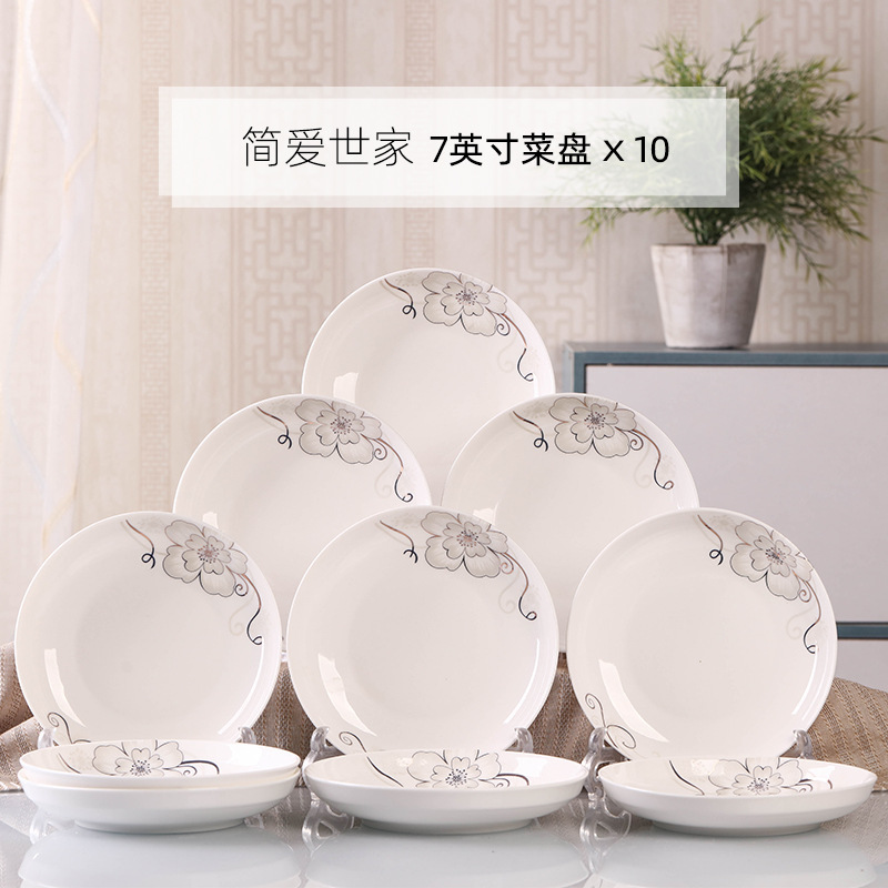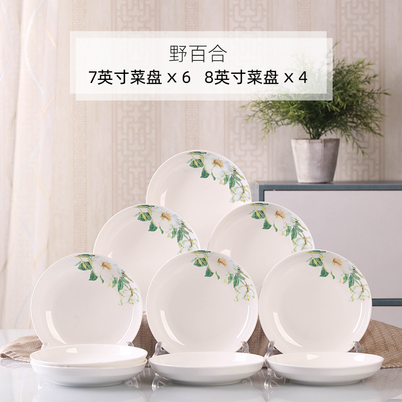 가정용 10 접시 세라믹 식기 라운드 조합 간단한 접시 세트 새로운 생선 접시 창조적 인 접시