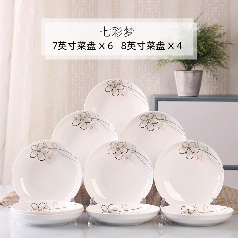 가정용 10 접시 세라믹 식기 라운드 조합 간단한 접시 세트 새로운 생선 접시 창조적 인 접시스토어 가기