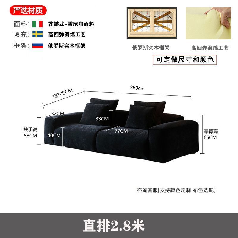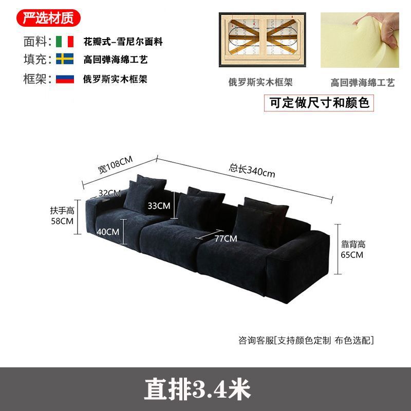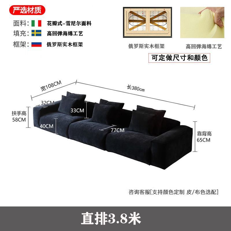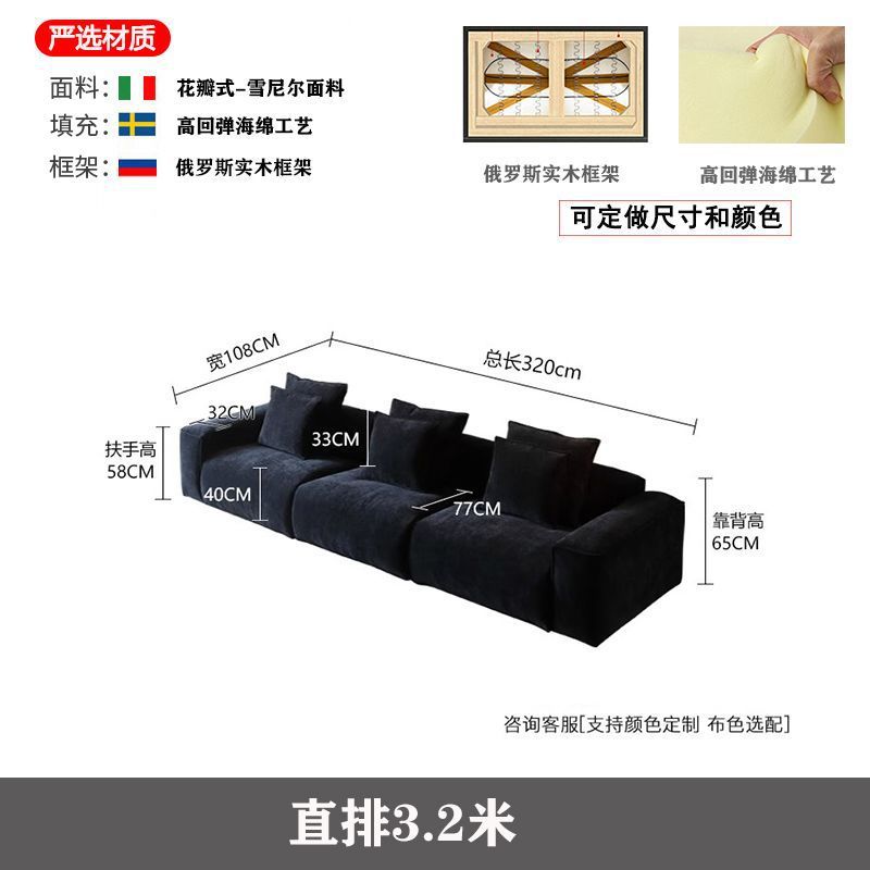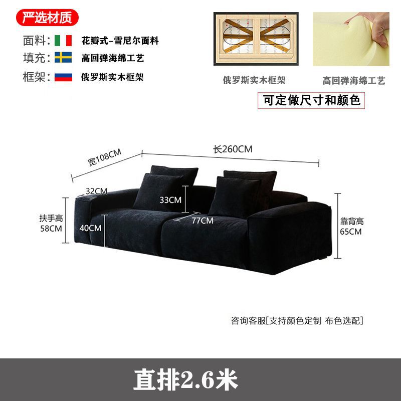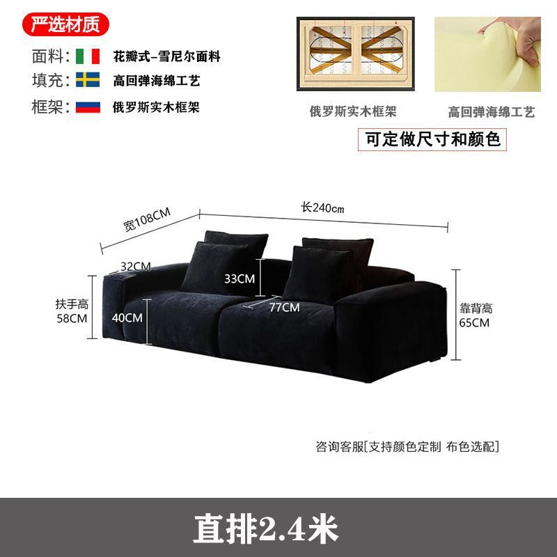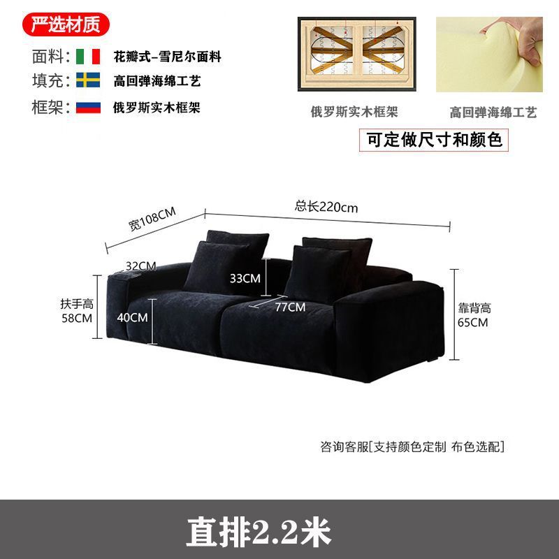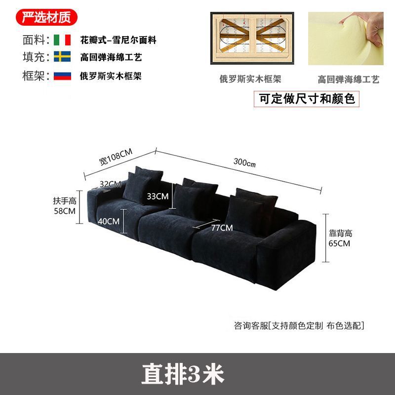 거실 소파 직선 작은 아파트 2024 학년 간단한 현대 chenille 검은 소파 공장 콘센트스토어 가기