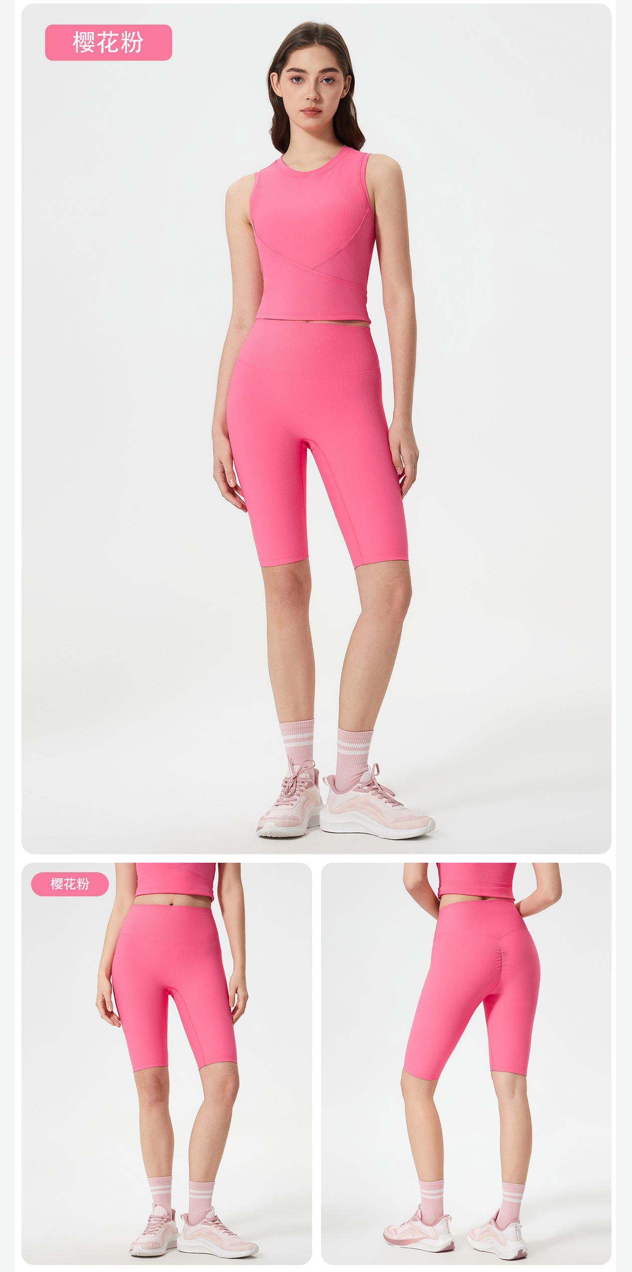 봄과 여름 높은 허리 복부 요가 바지 꽉 엉덩이 피트니스 반바지 여성용 야외 사이클링 반바지 D25042