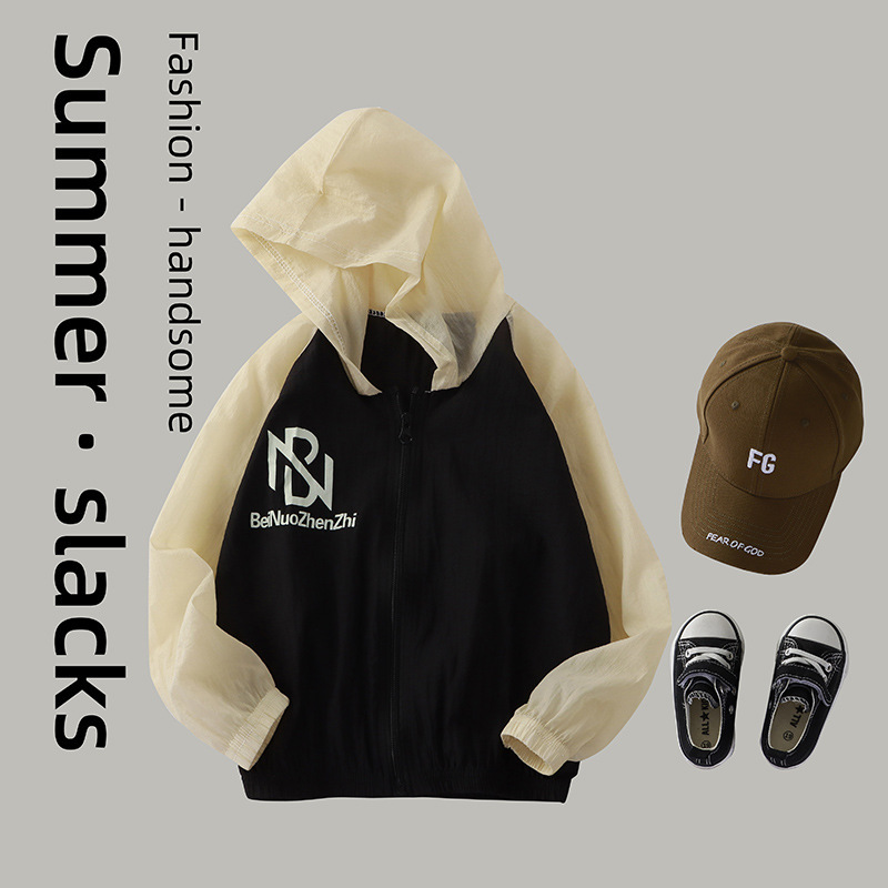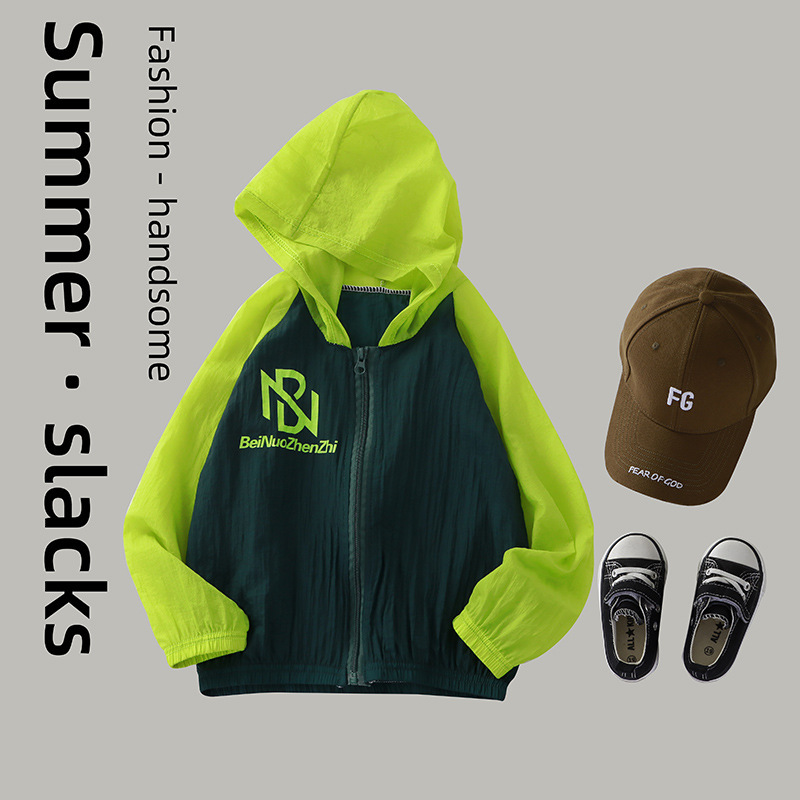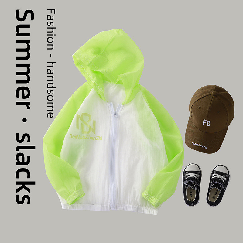 Summer Hoodie Boys and Girls Middle and Big Kids Outer는 새로운 올 매치 컬러 매칭 경량 태양 보호 의류 아동용 태양 보호 의류스토어 가기