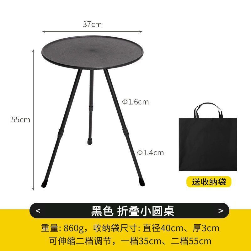 • 작은 원형 테이블 높이 조절 가능 - 오닉스 블랙 [수납 가방 없음]
