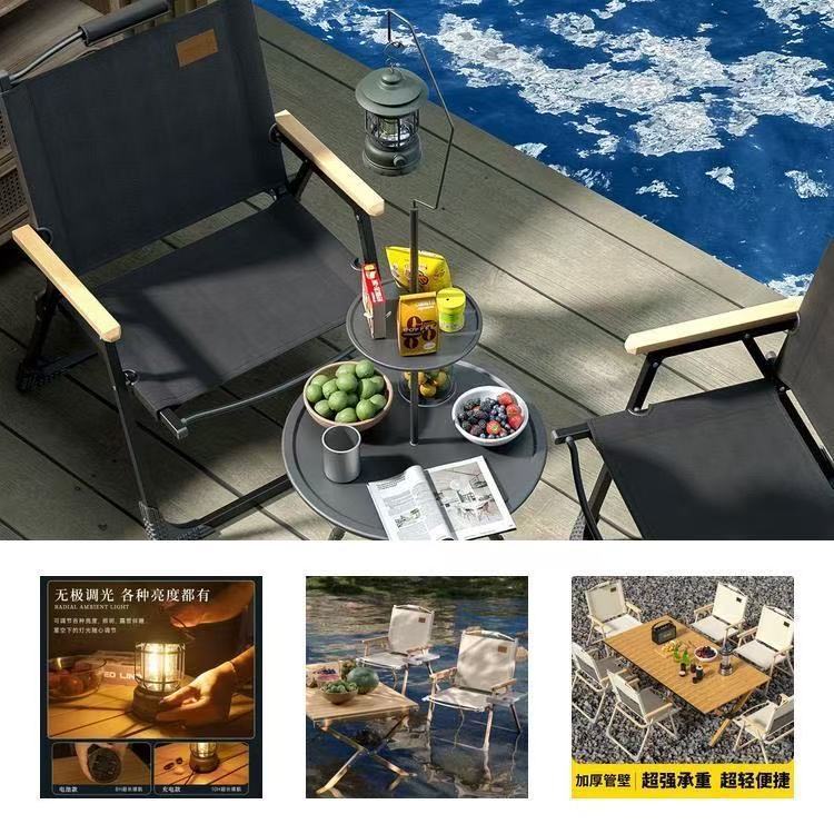 휴대용 테이블 야외 피크닉 테이블 강철 다리 접이식 테이블 소형 원형 테이블 높이 조절 가능 캠핑용 조명대 포함