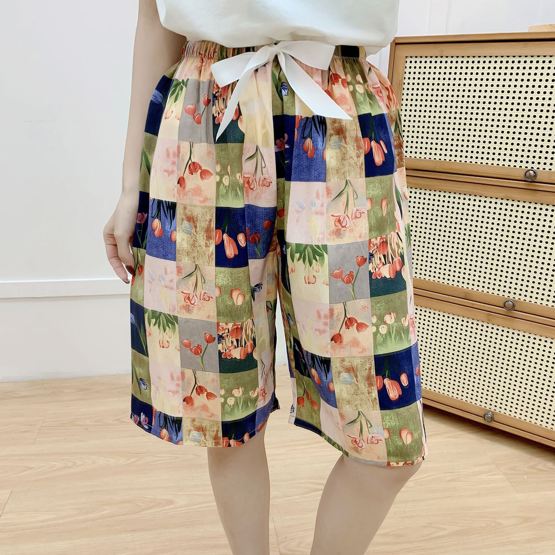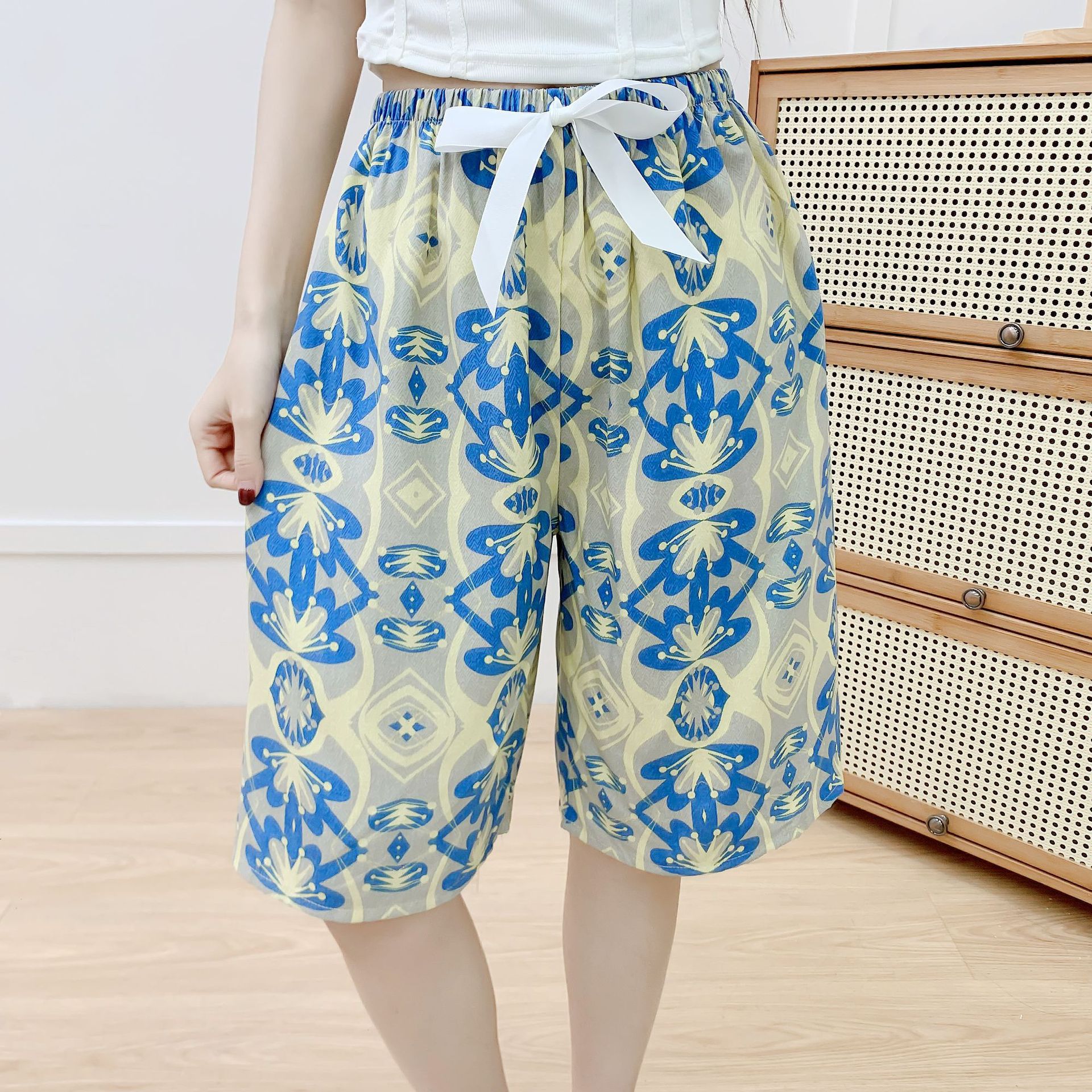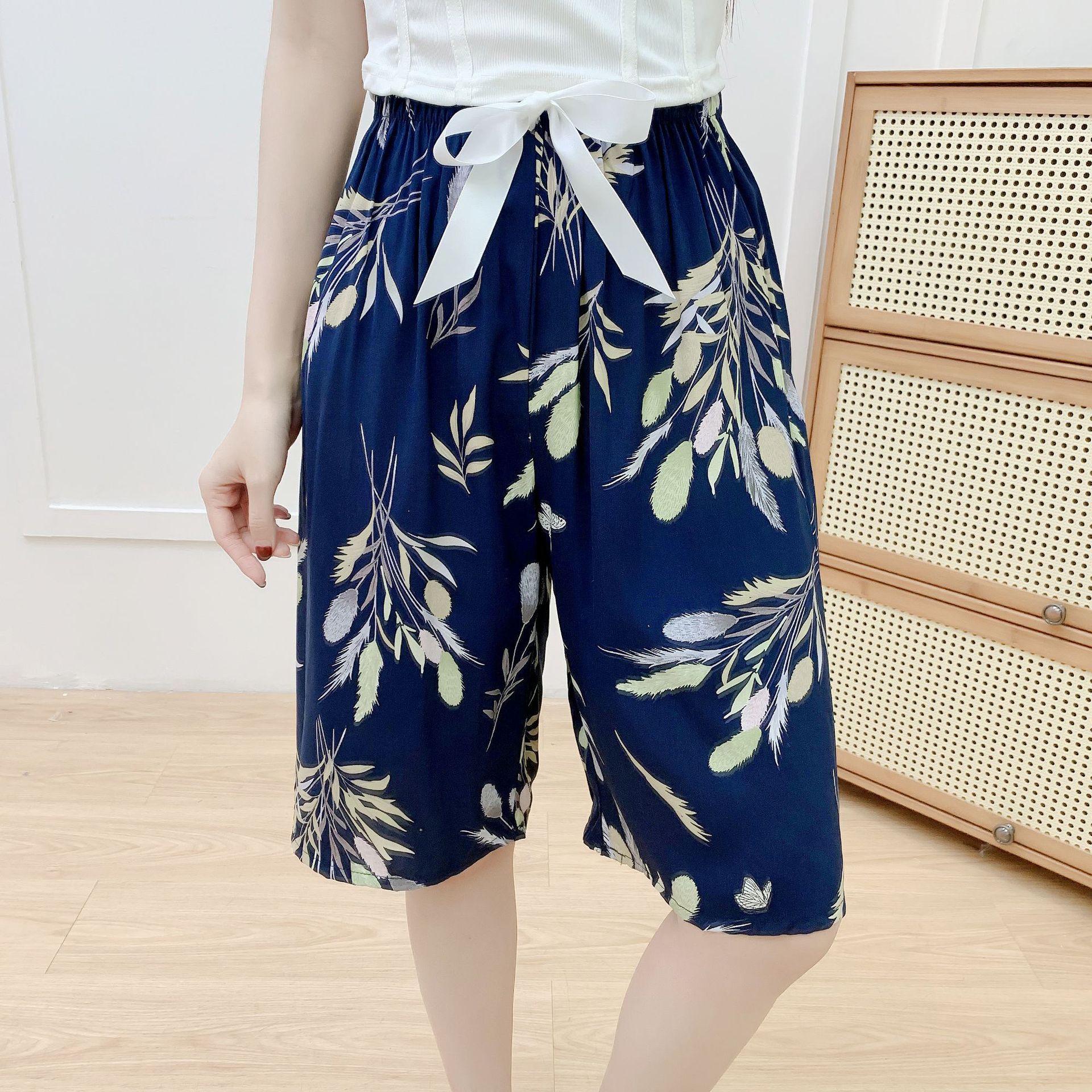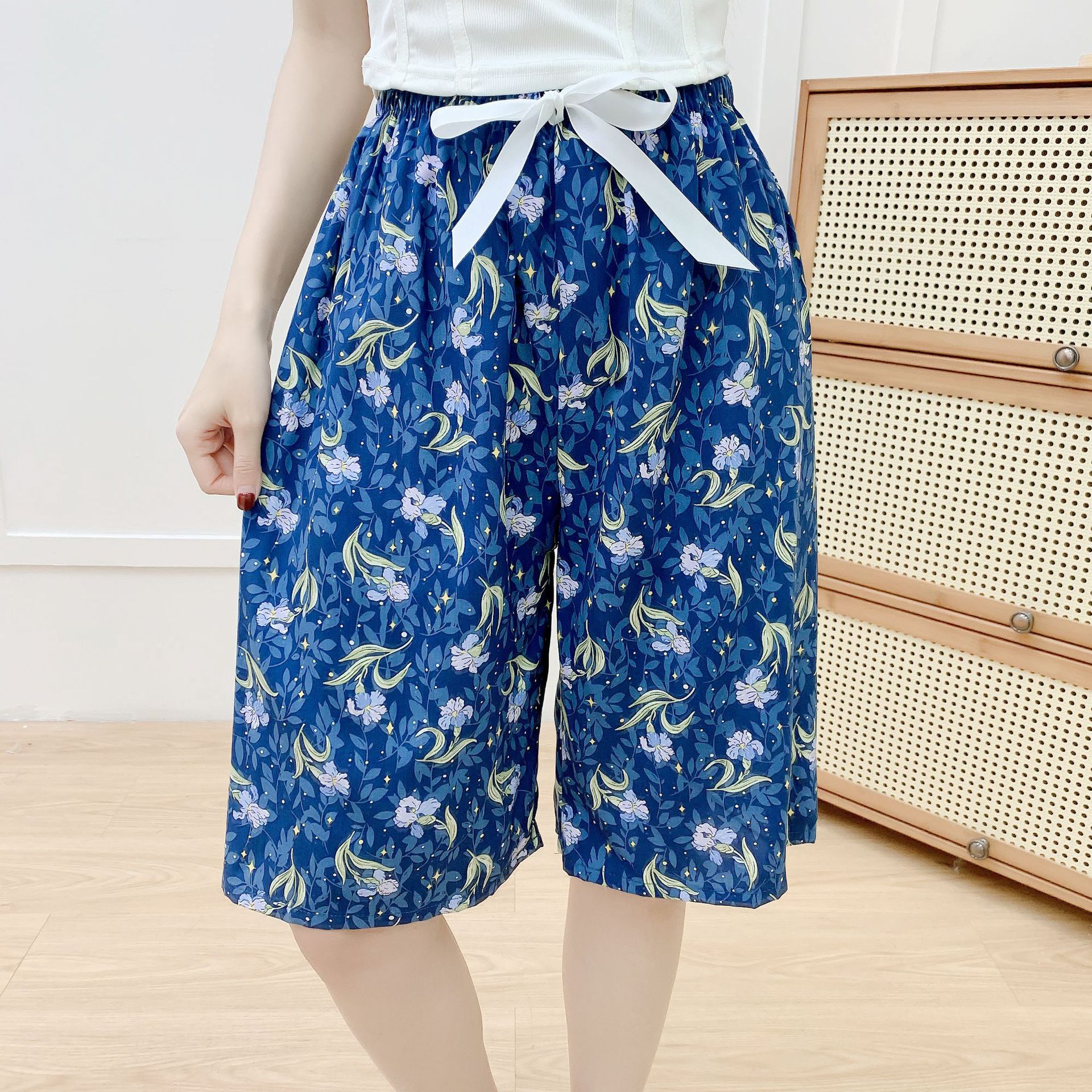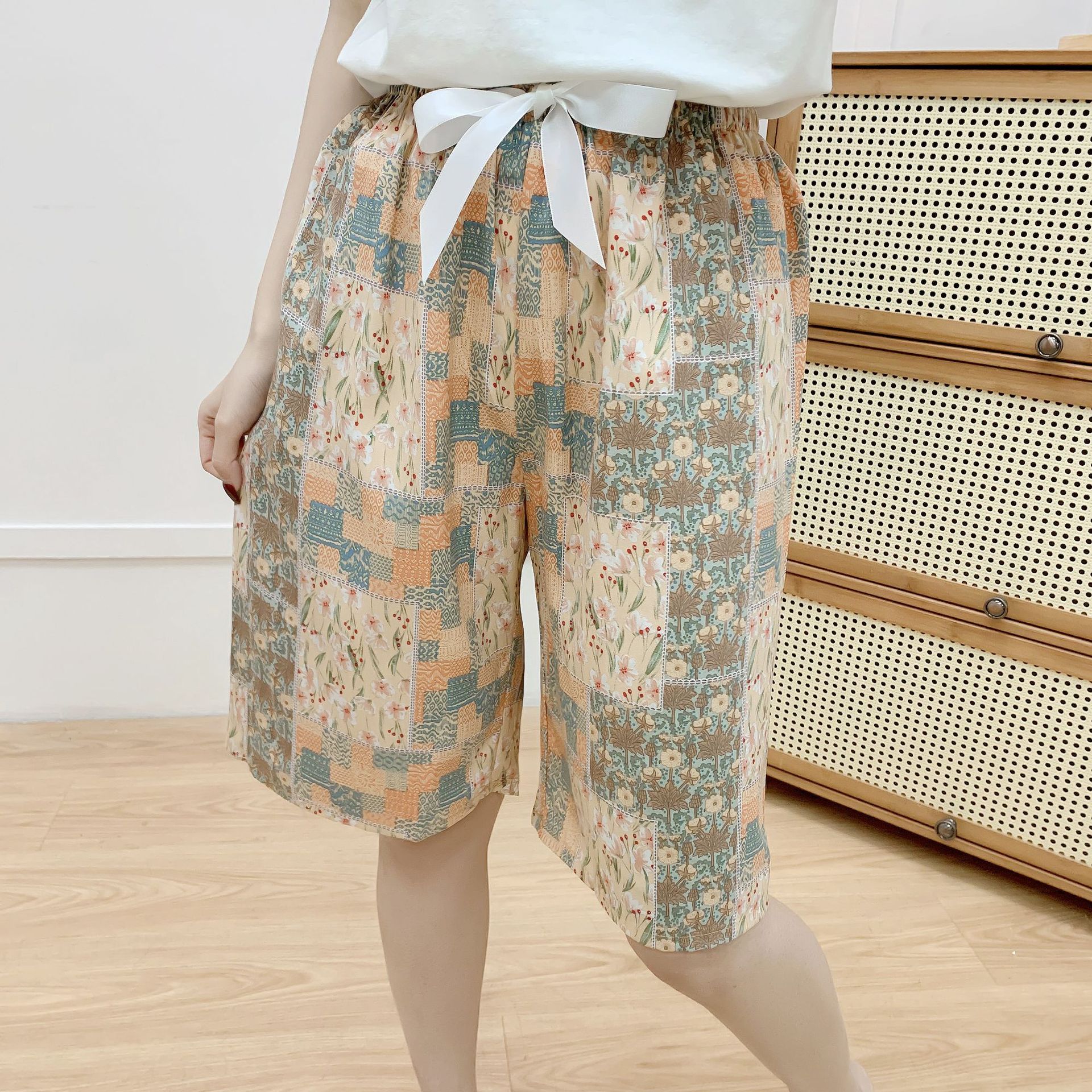 면 실크 파자마 바지 여름 새로운 도착 얇은 여성용 바지 인공 면화 플러스 사이즈 외부 착용 캐주얼 5 점 홈 바지스토어 가기