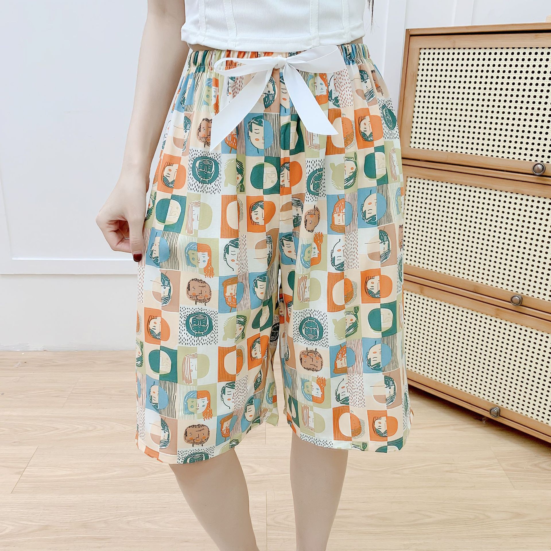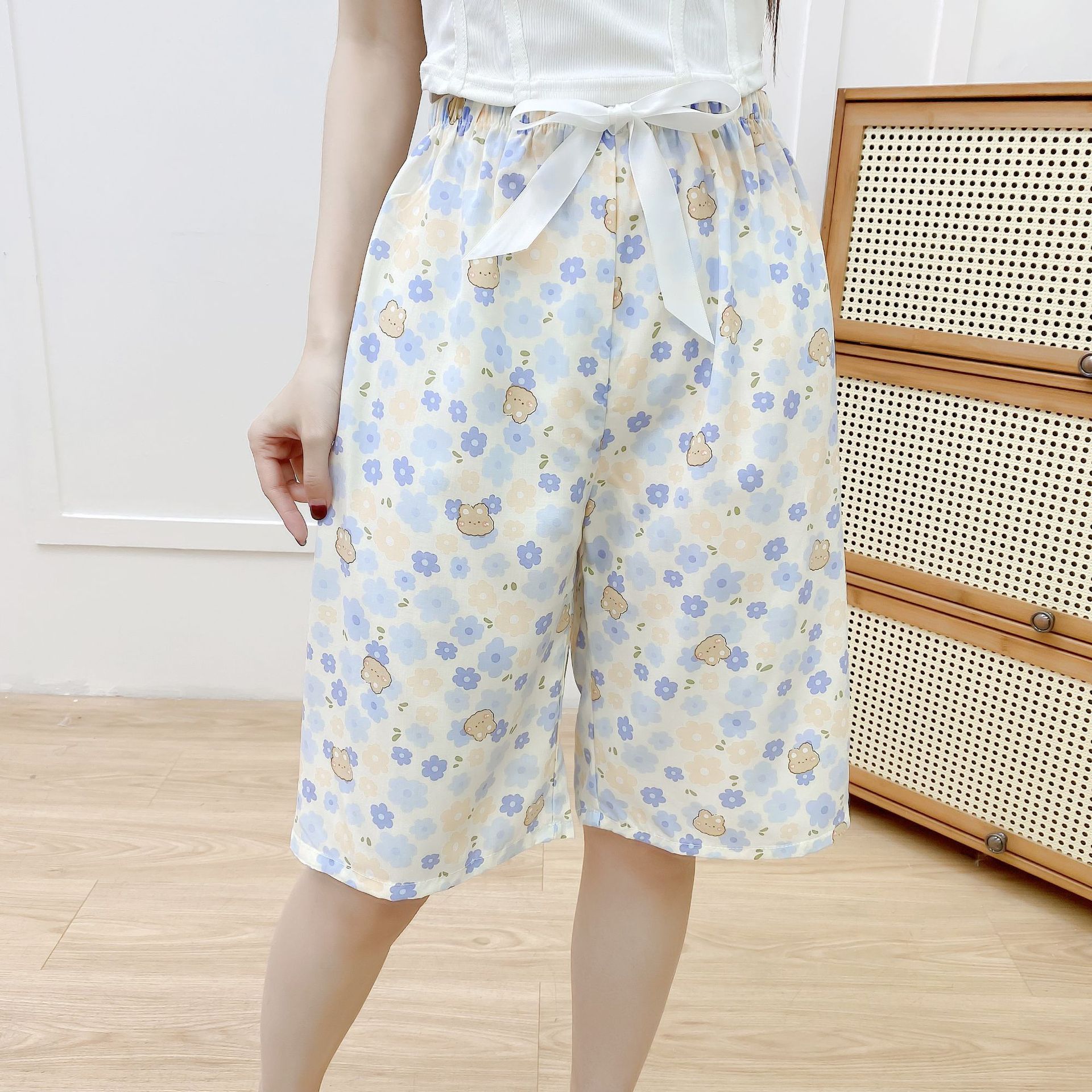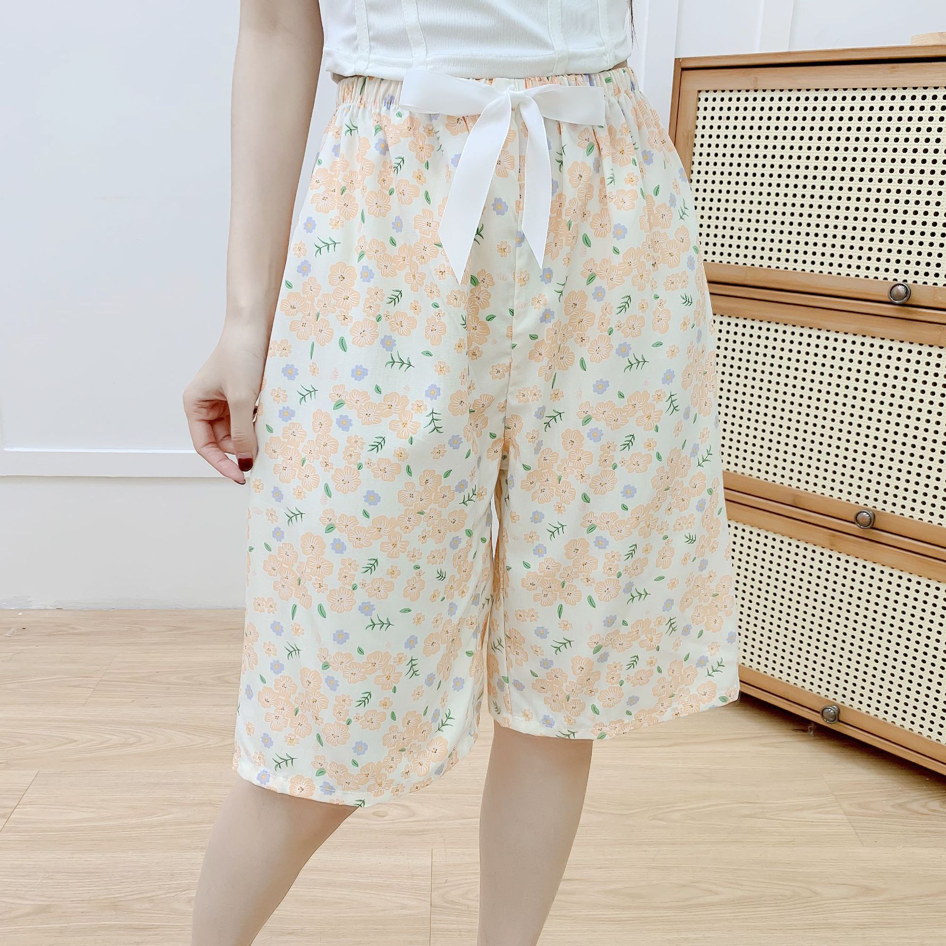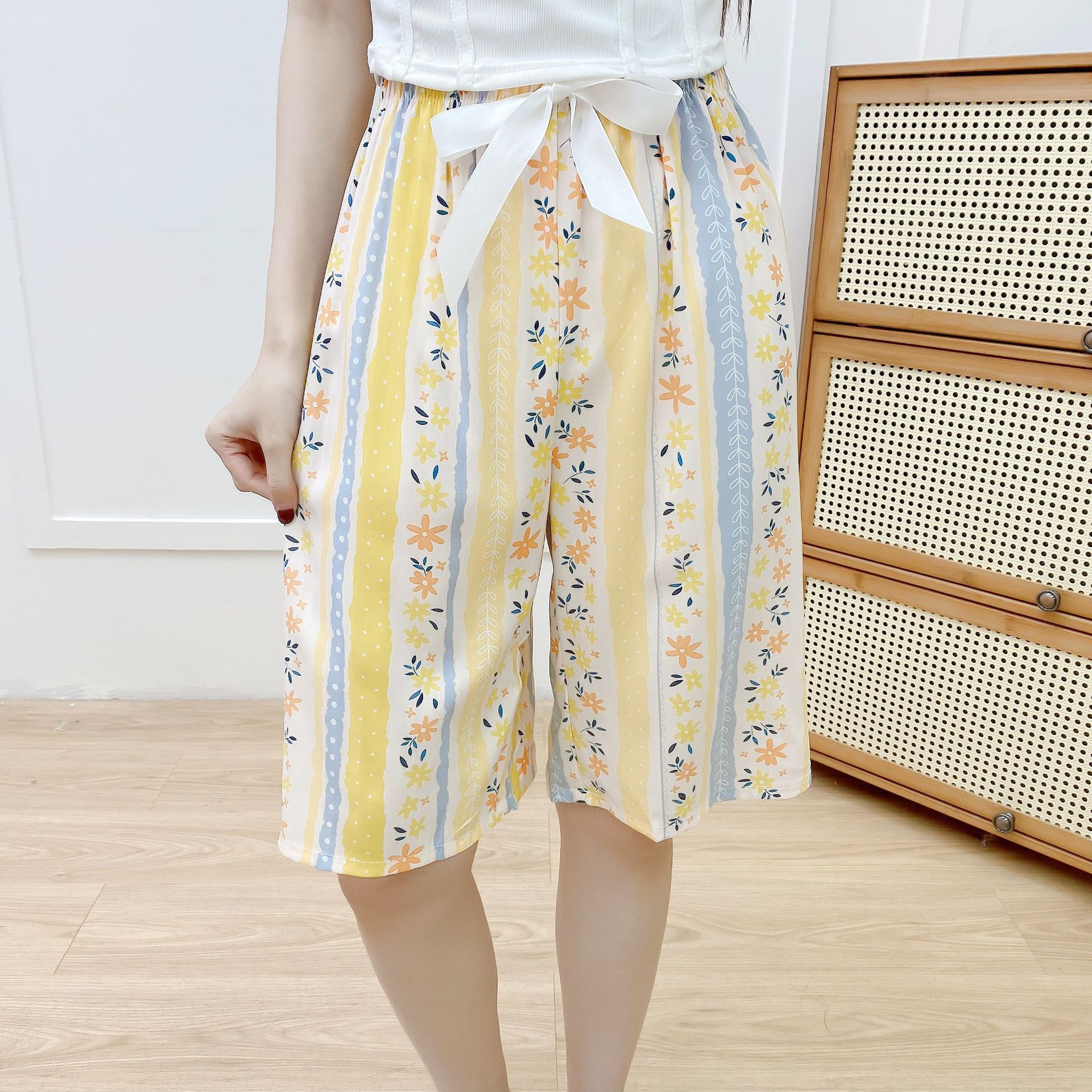 면 실크 파자마 바지 여름 새로운 도착 얇은 여성용 바지 인공 면화 플러스 사이즈 외부 착용 캐주얼 5 점 홈 바지스토어 가기