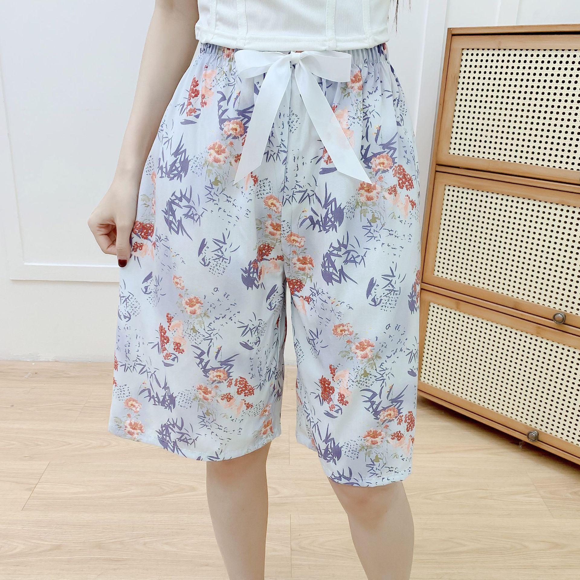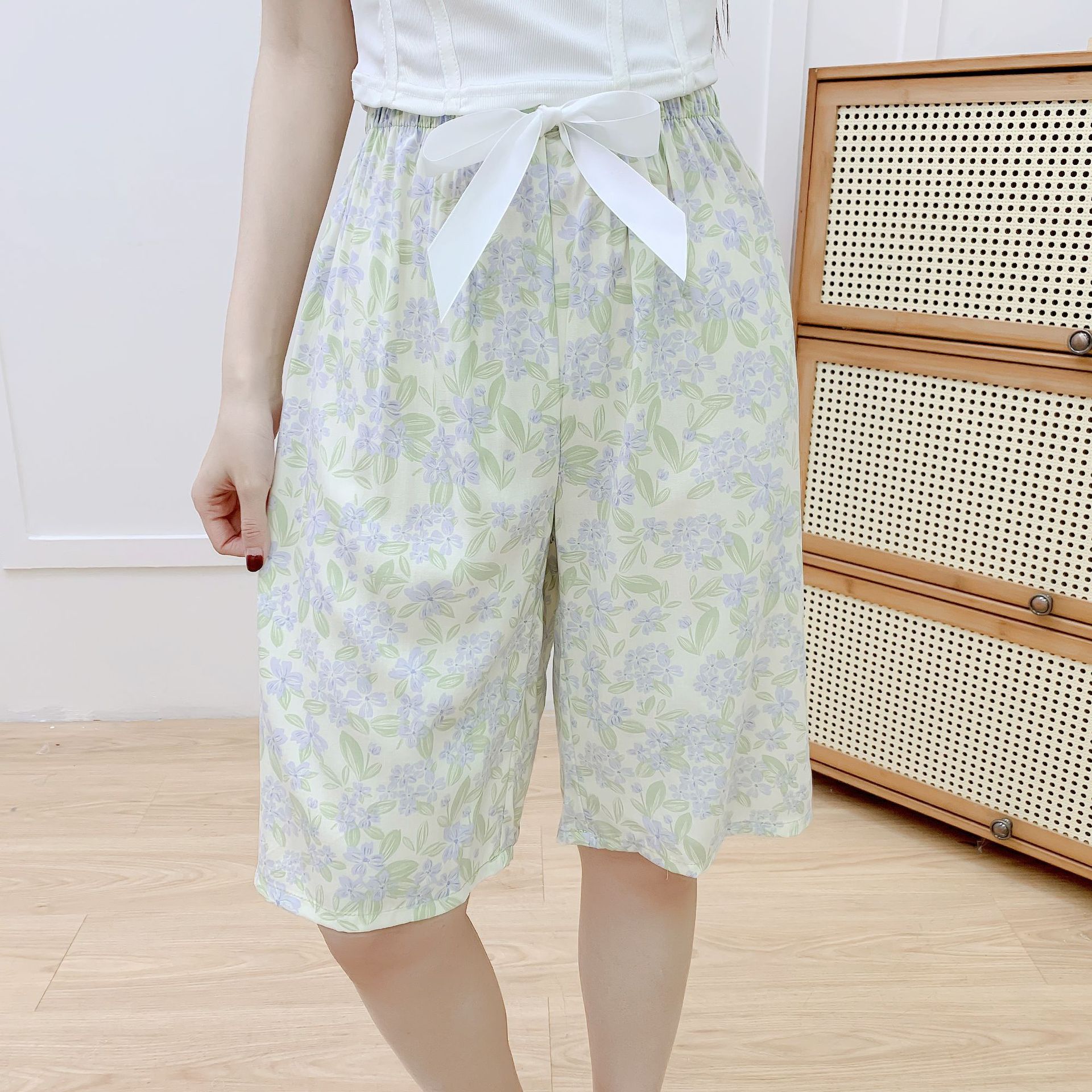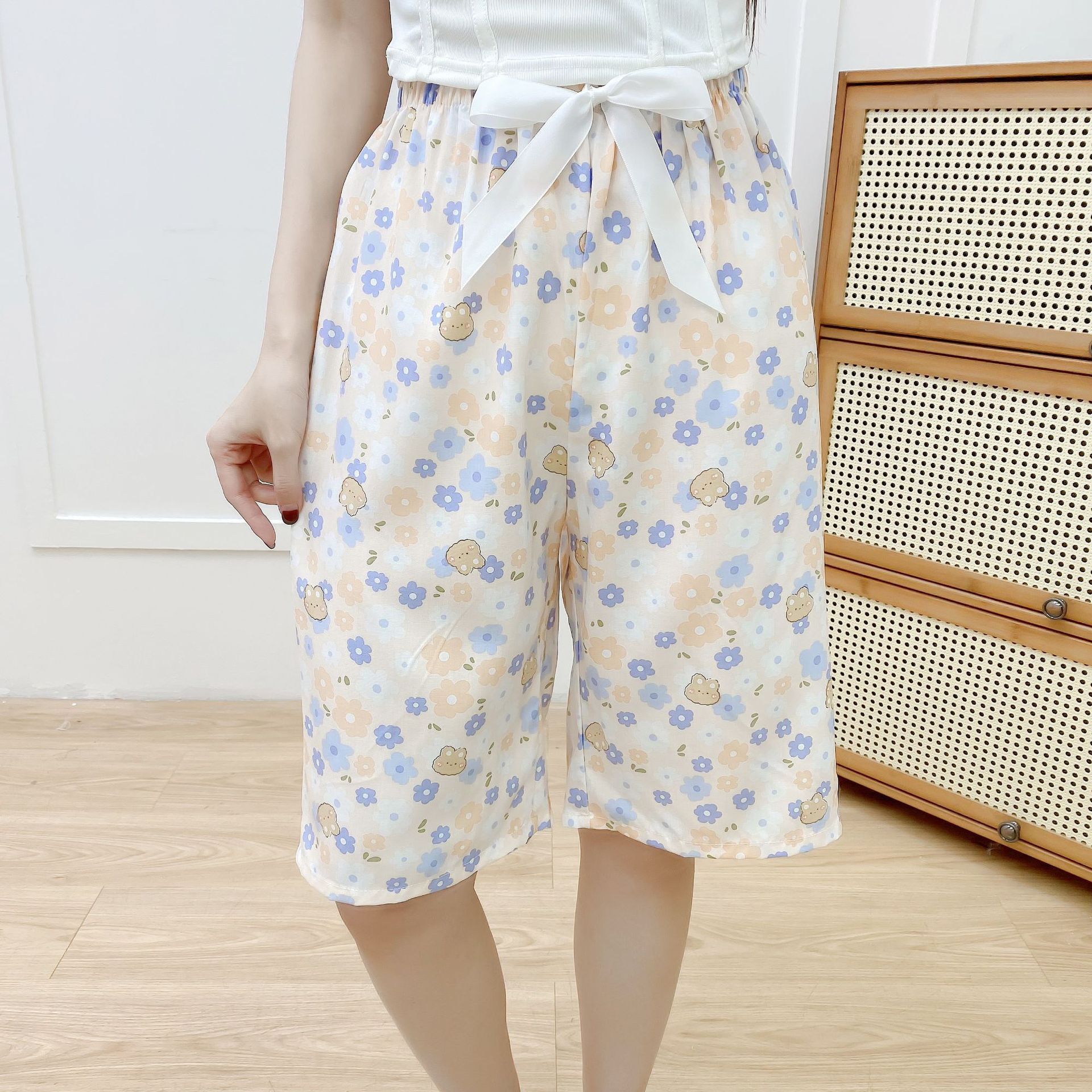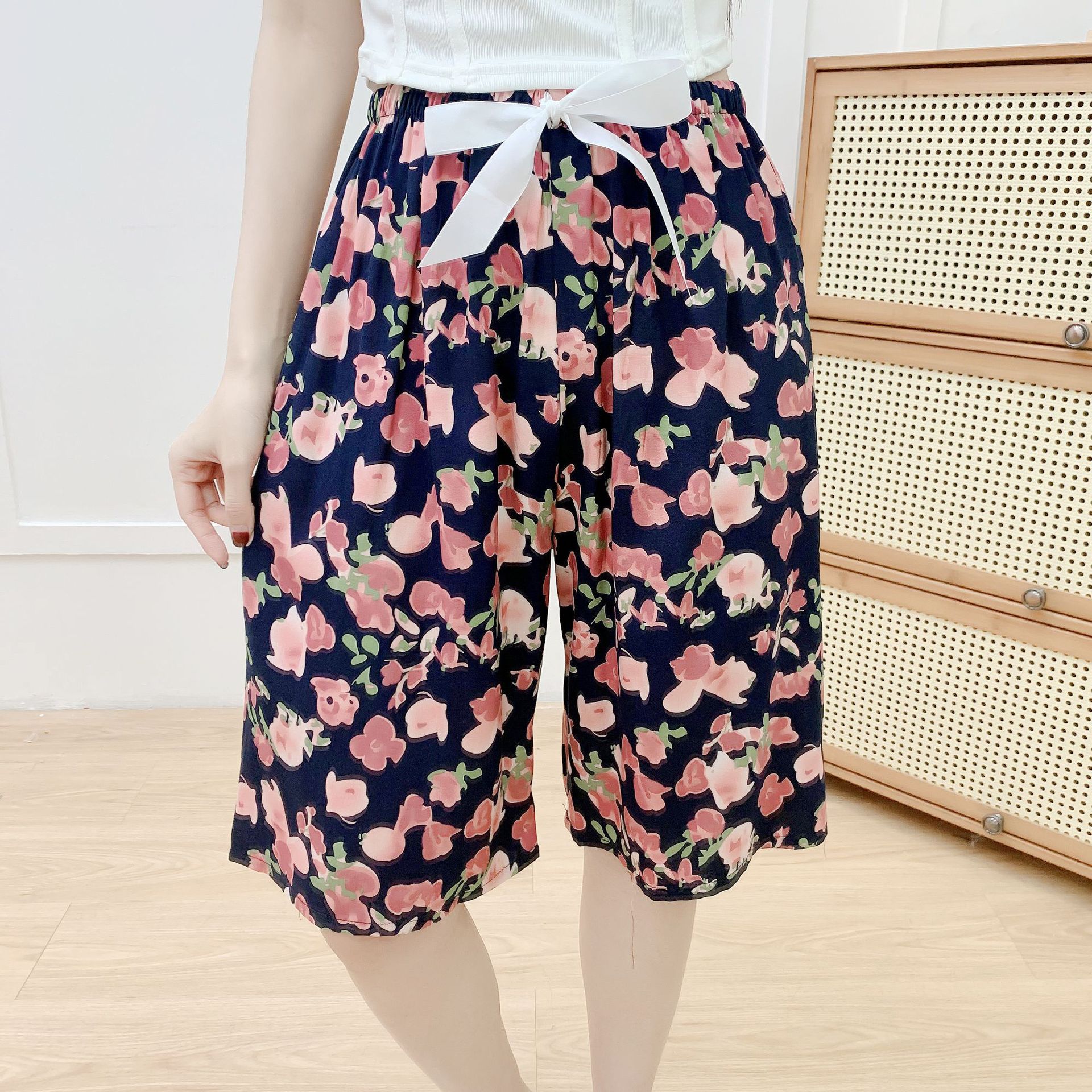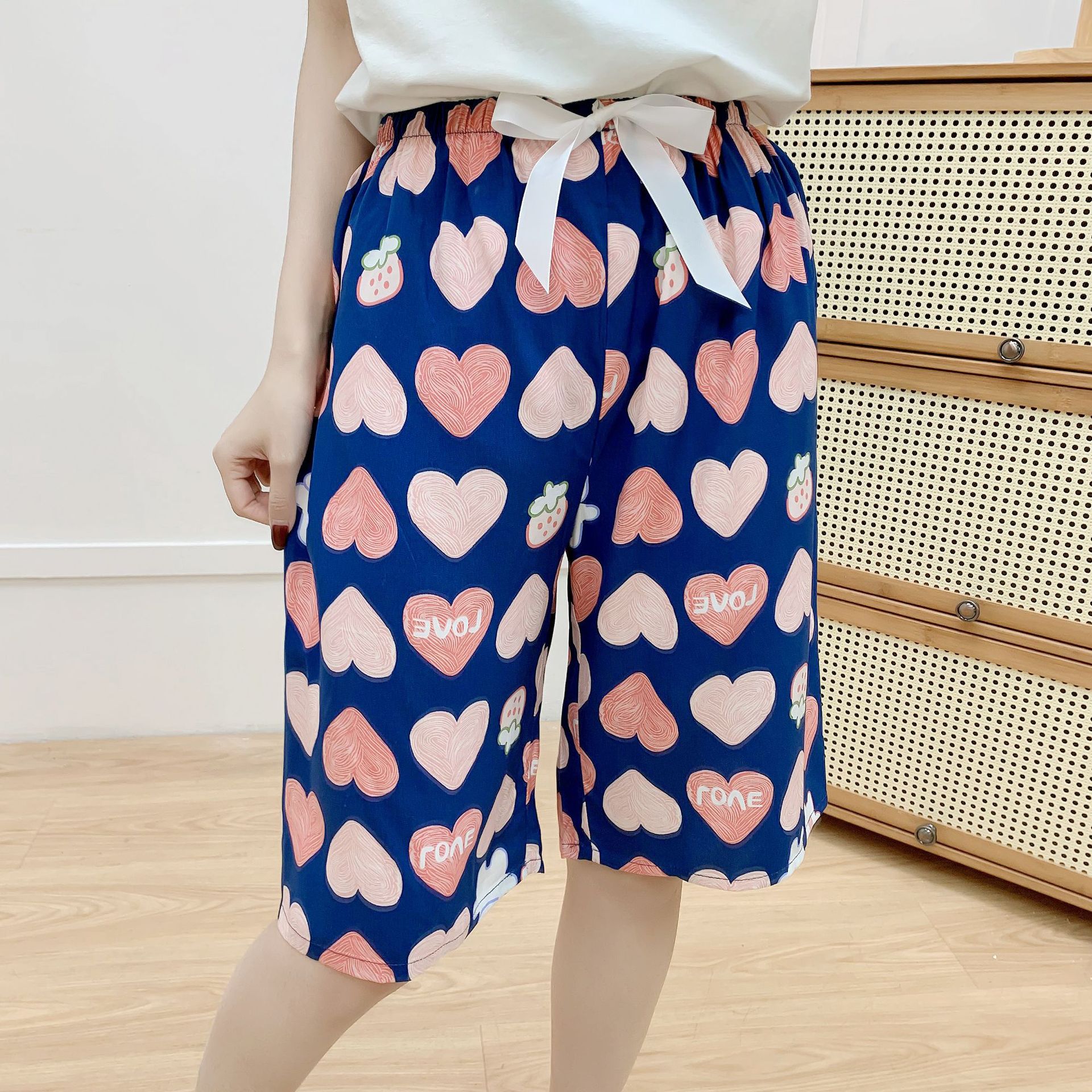 면 실크 파자마 바지 여름 새로운 도착 얇은 여성용 바지 인공 면화 플러스 사이즈 외부 착용 캐주얼 5 점 홈 바지스토어 가기