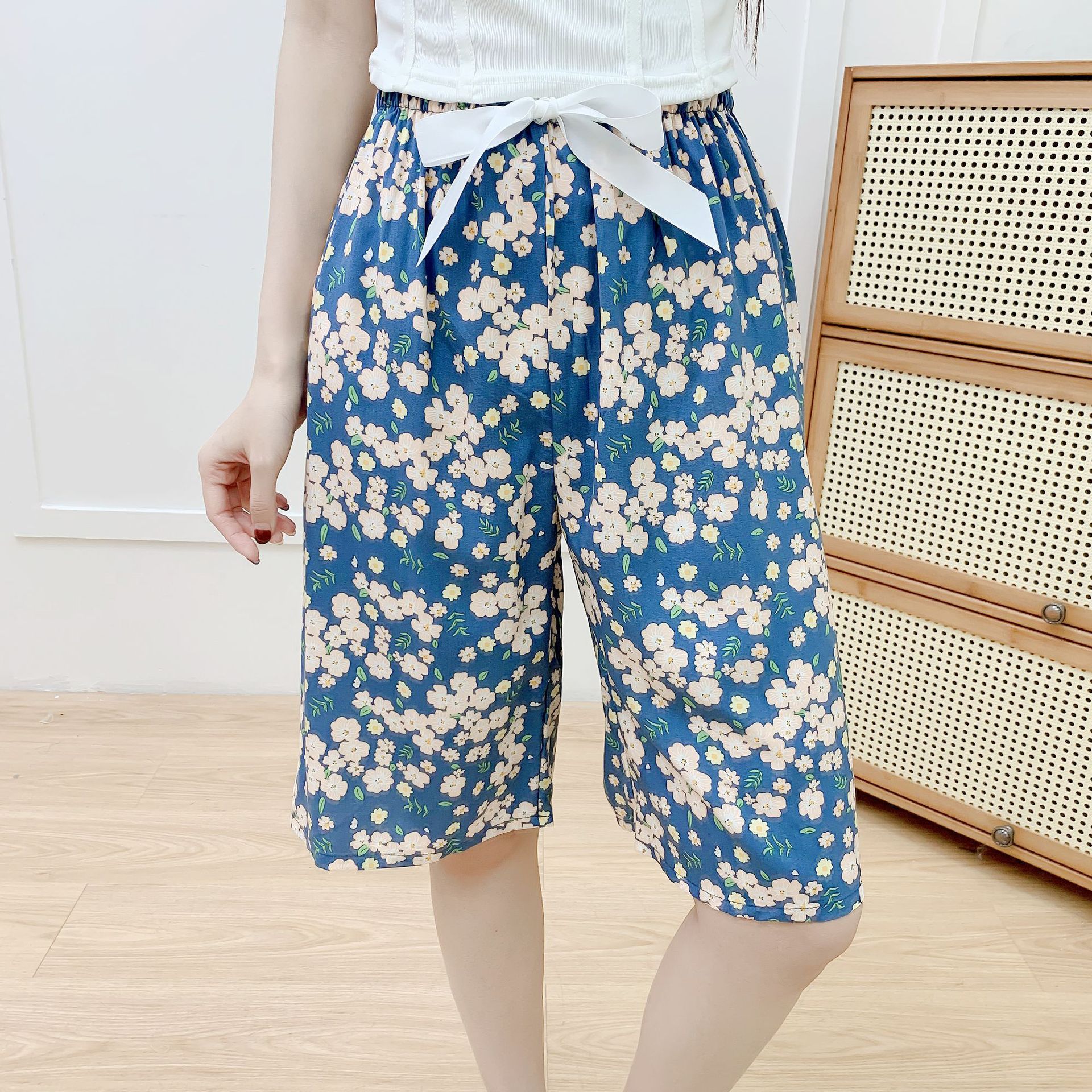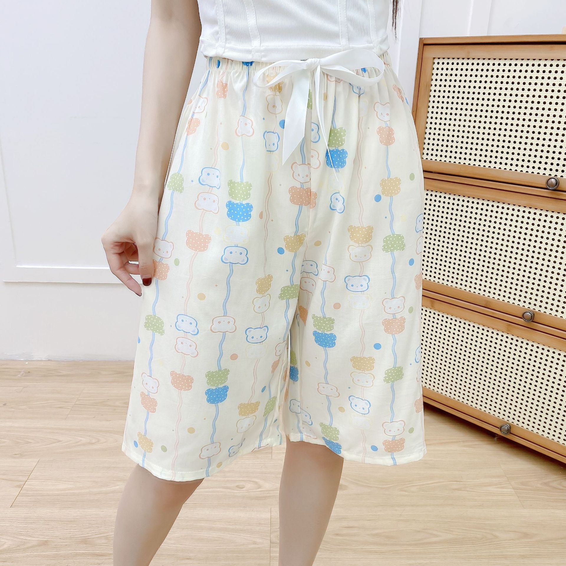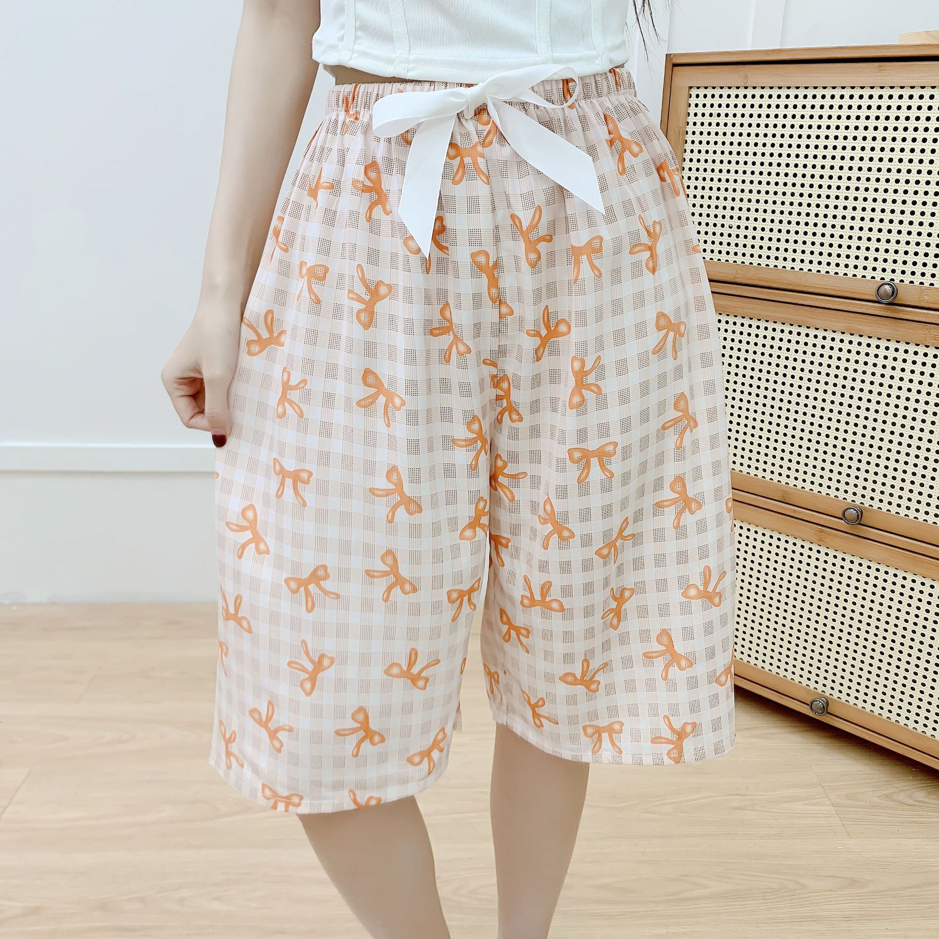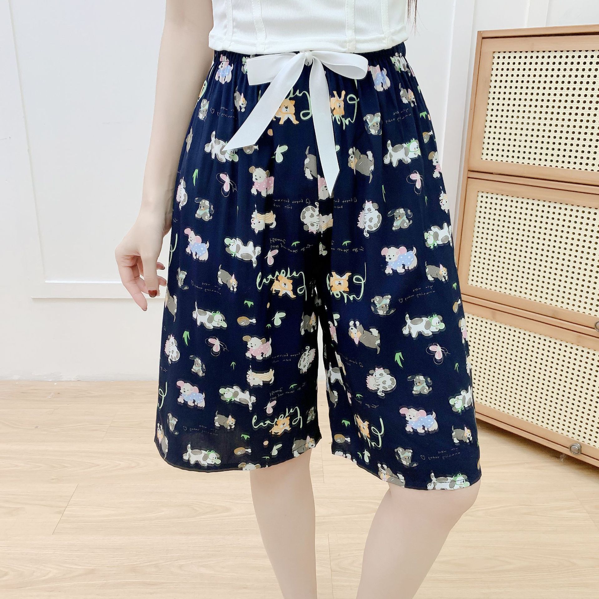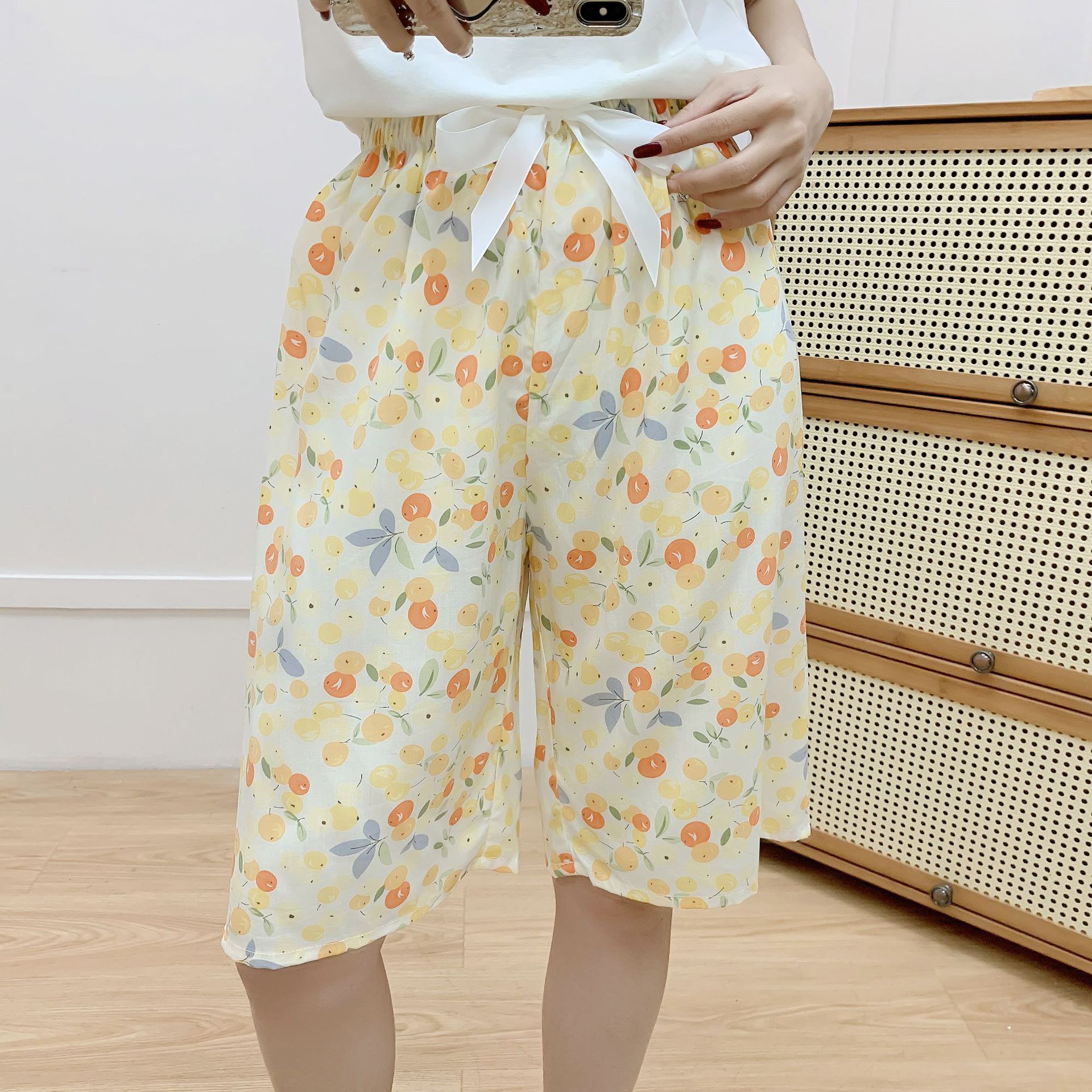면 실크 파자마 바지 여름 새로운 도착 얇은 여성용 바지 인공 면화 플러스 사이즈 외부 착용 캐주얼 5 점 홈 바지스토어 가기