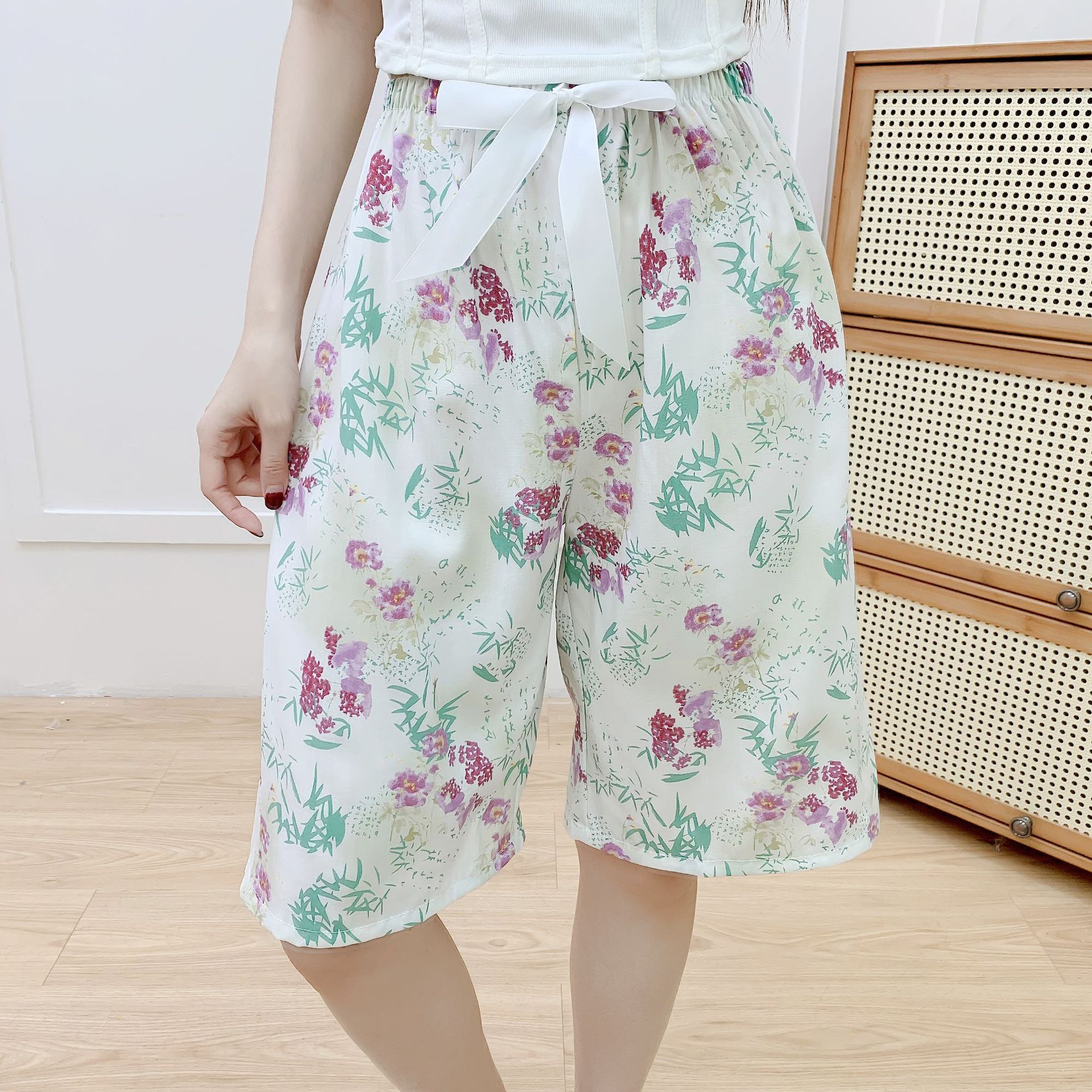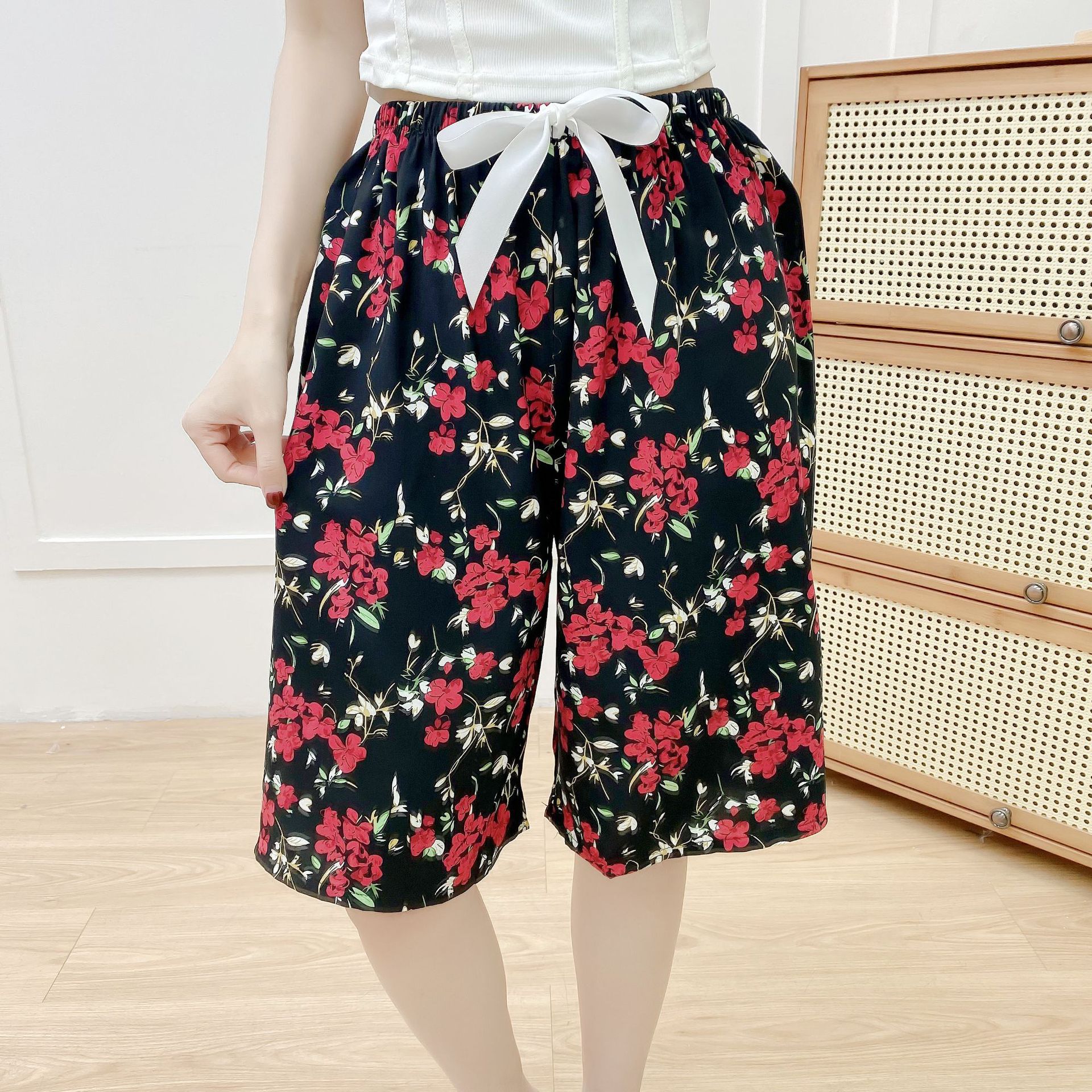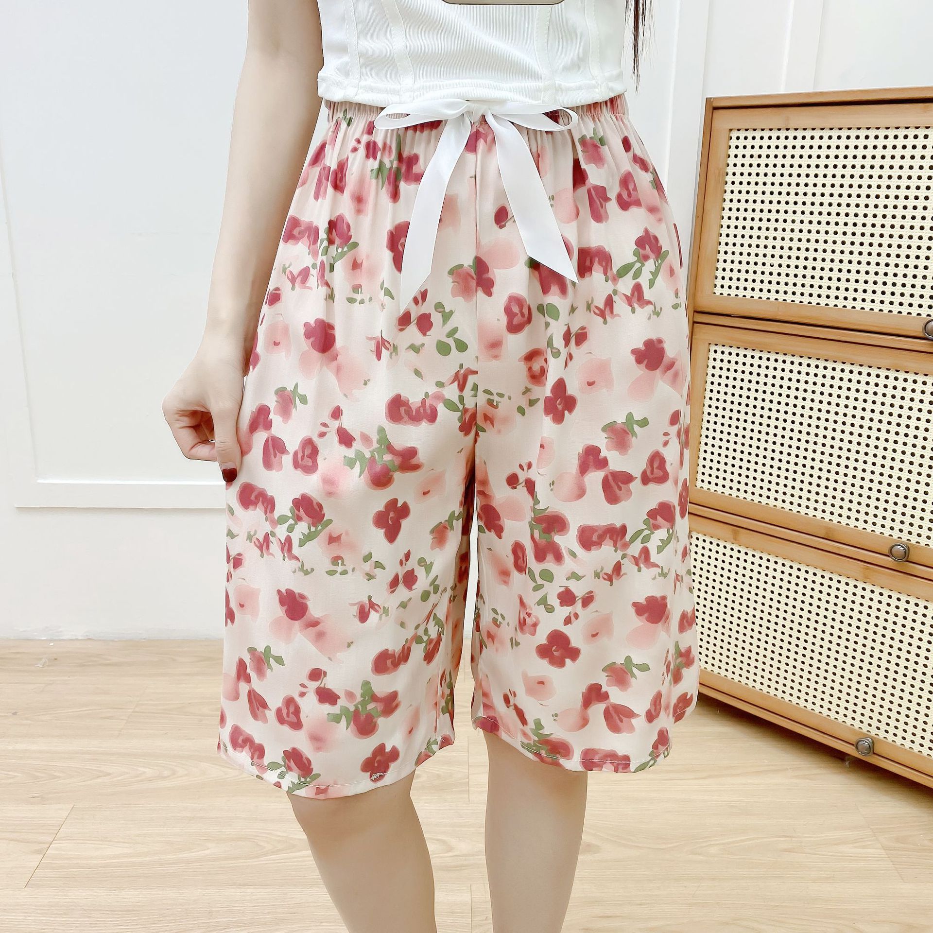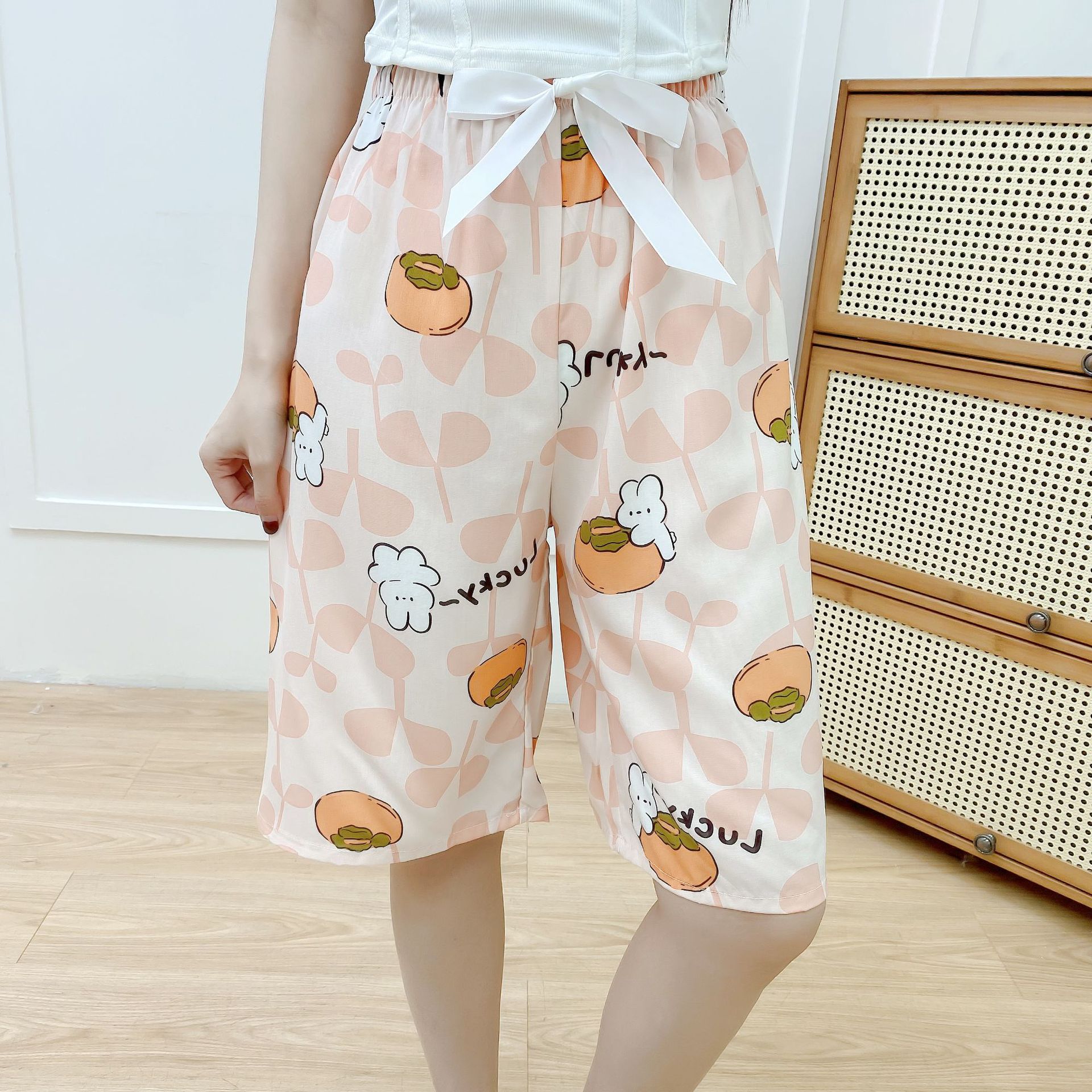 면 실크 파자마 바지 여름 새로운 도착 얇은 여성용 바지 인공 면화 플러스 사이즈 외부 착용 캐주얼 5 점 홈 바지스토어 가기