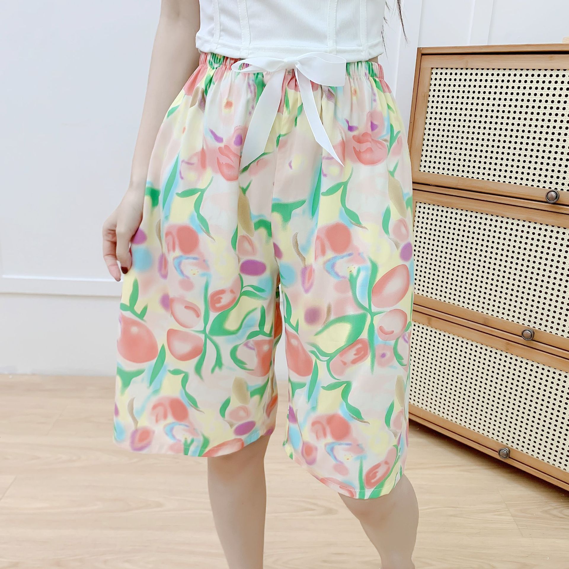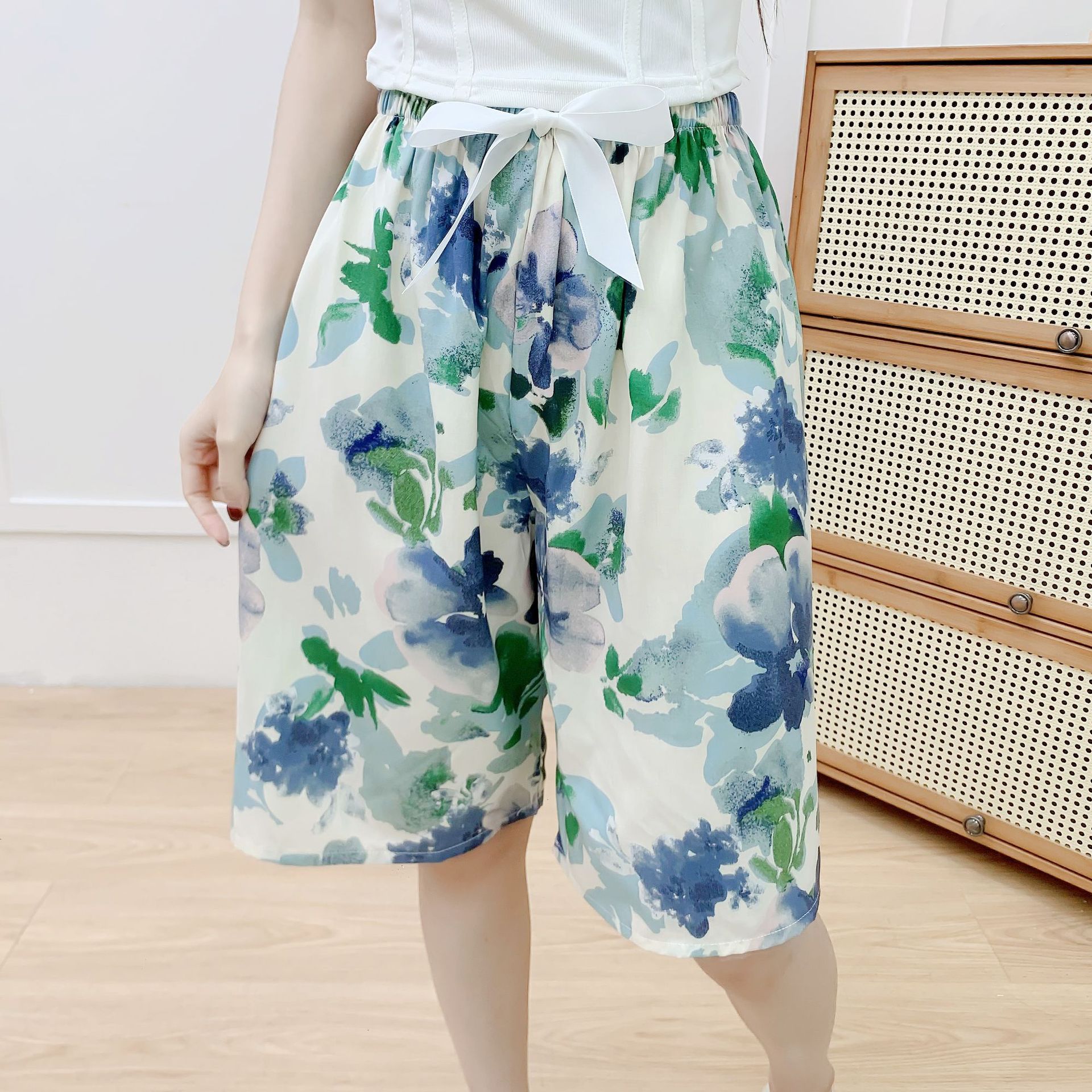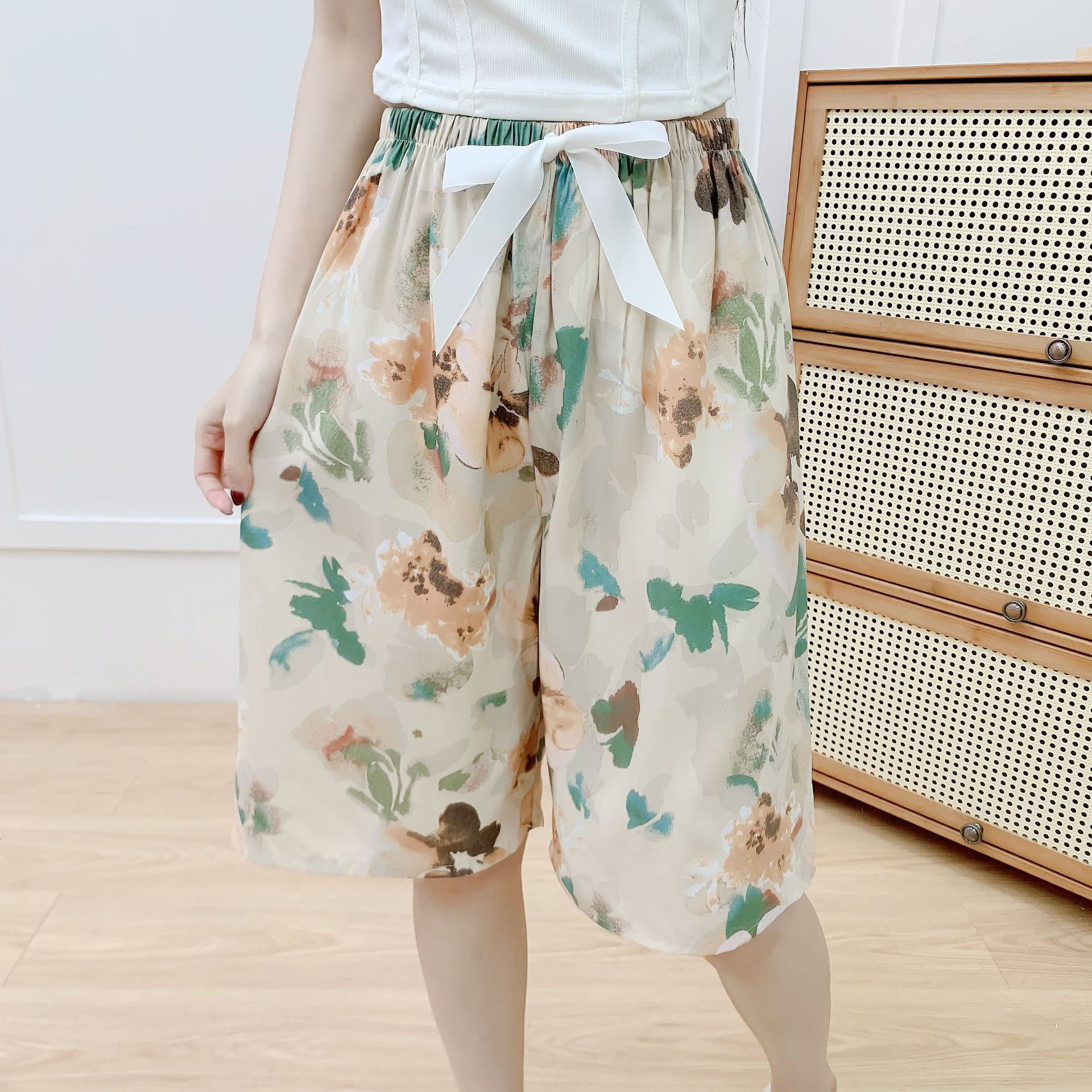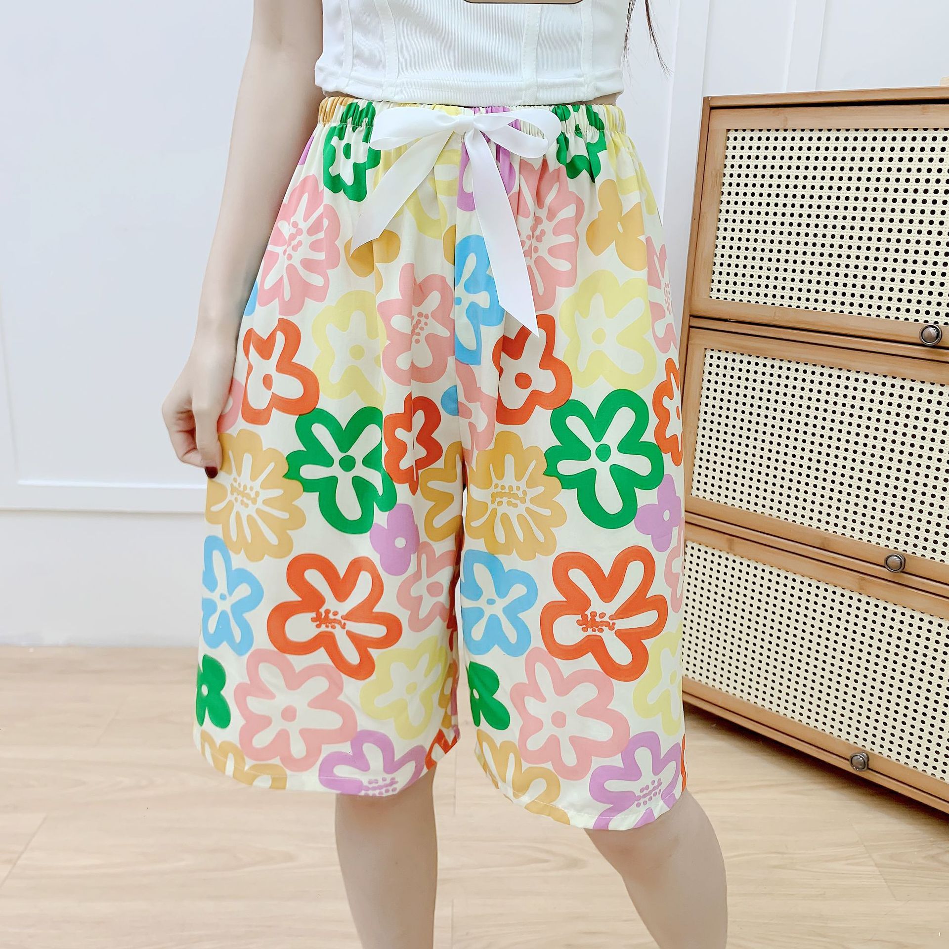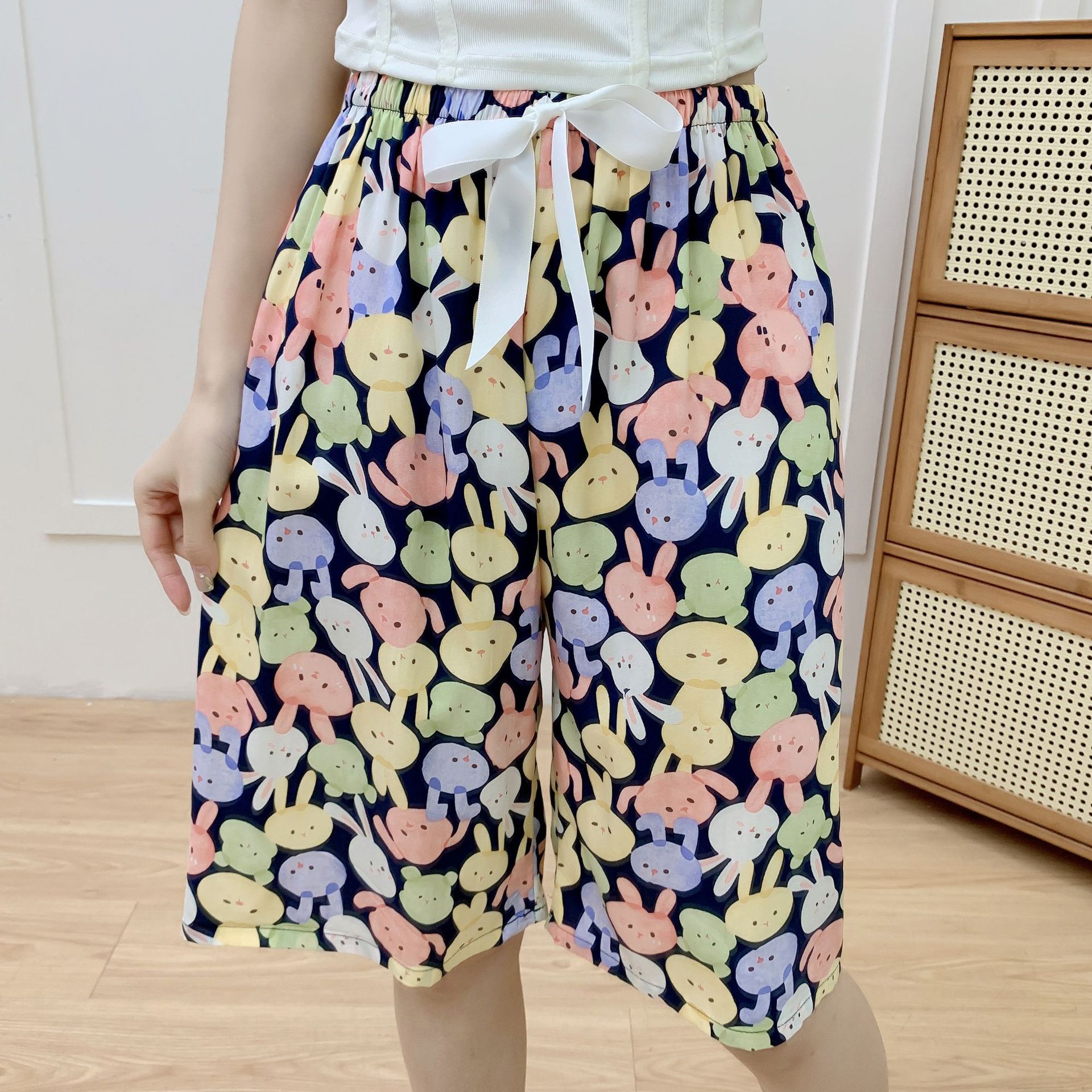 면 실크 파자마 바지 여름 새로운 도착 얇은 여성용 바지 인공 면화 플러스 사이즈 외부 착용 캐주얼 5 점 홈 바지스토어 가기