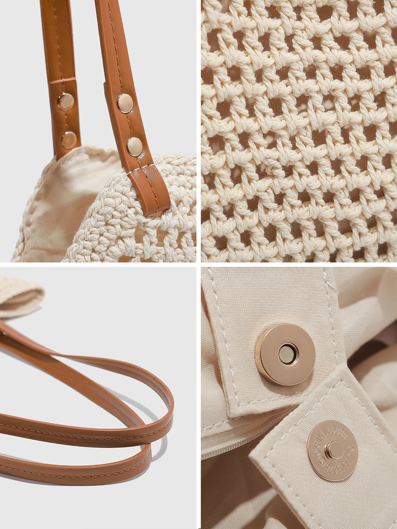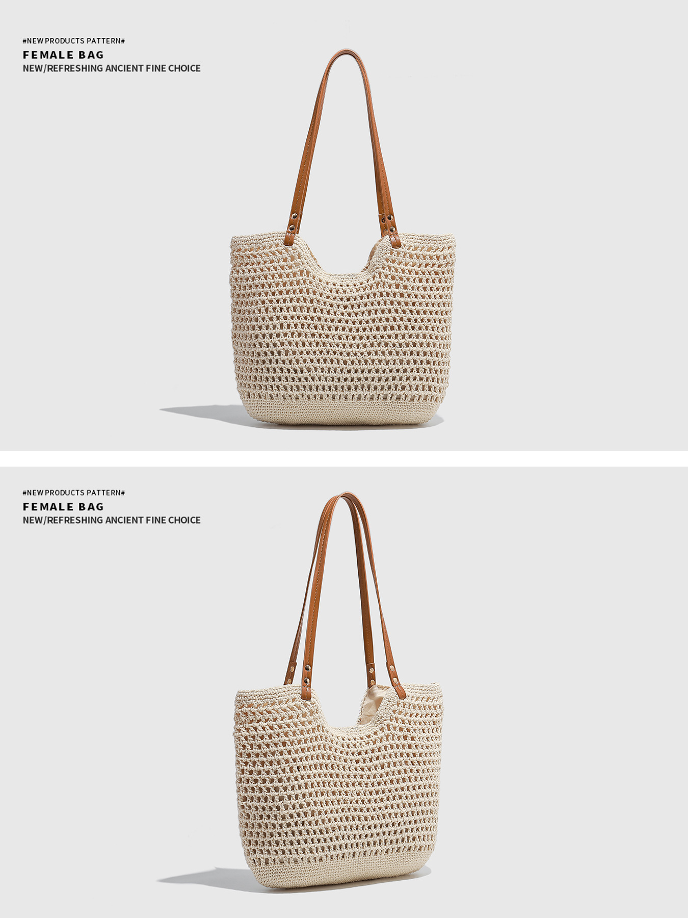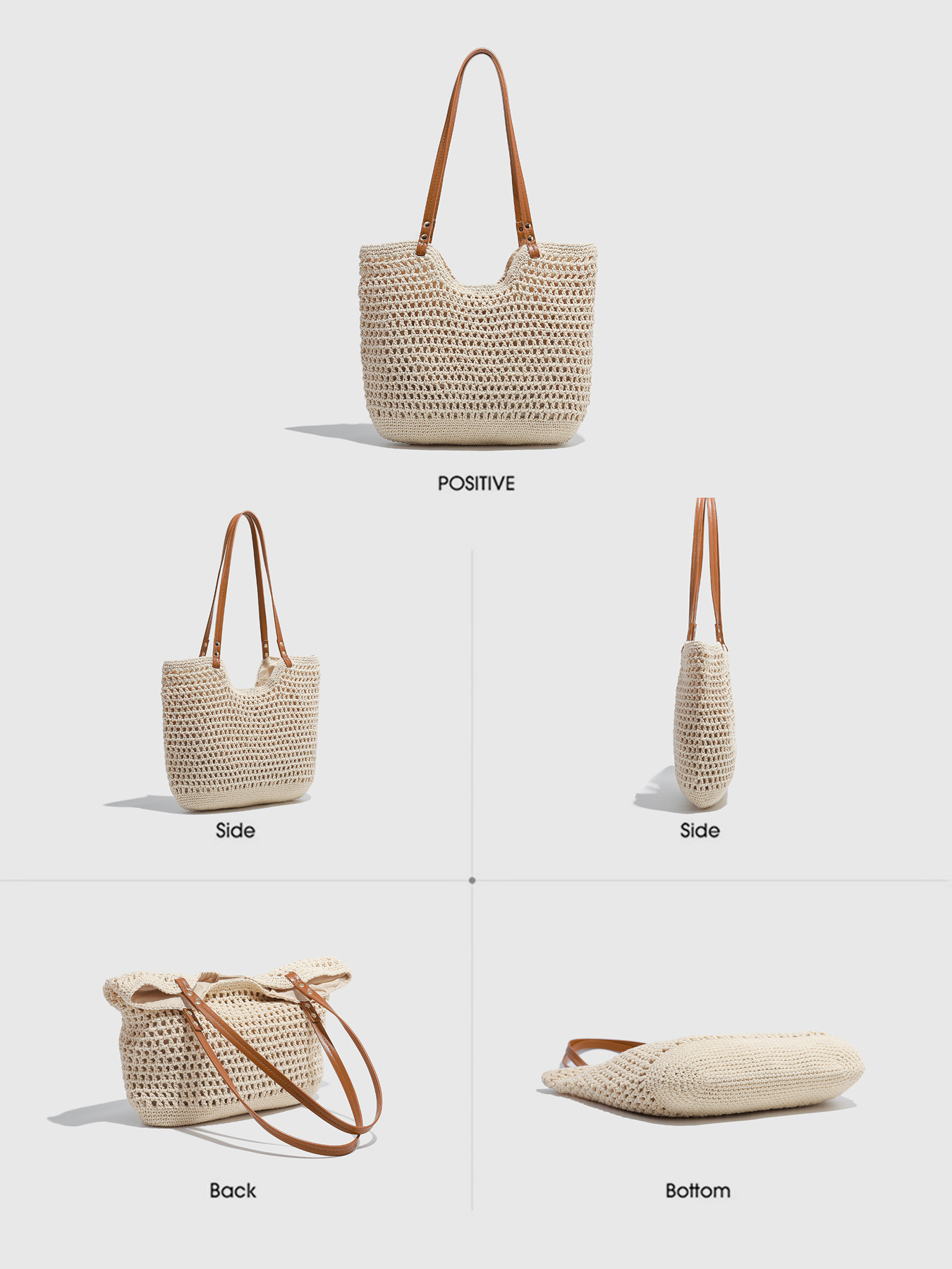 대형 짠 토트 백 2025 새로운 봄, 여름 해변 레저 휴가 해변 가방 어깨 겨드랑이 가방 크로스 바디