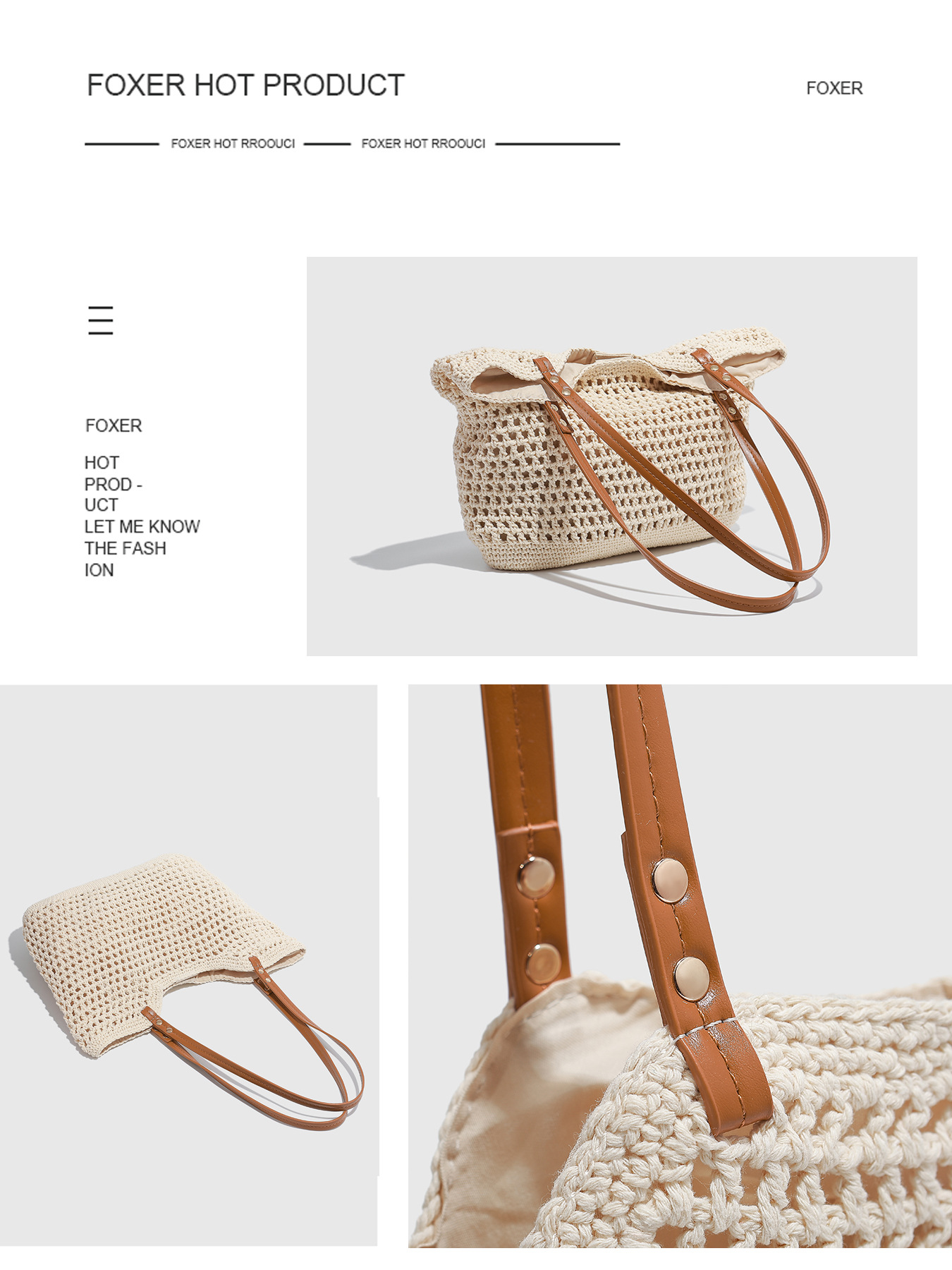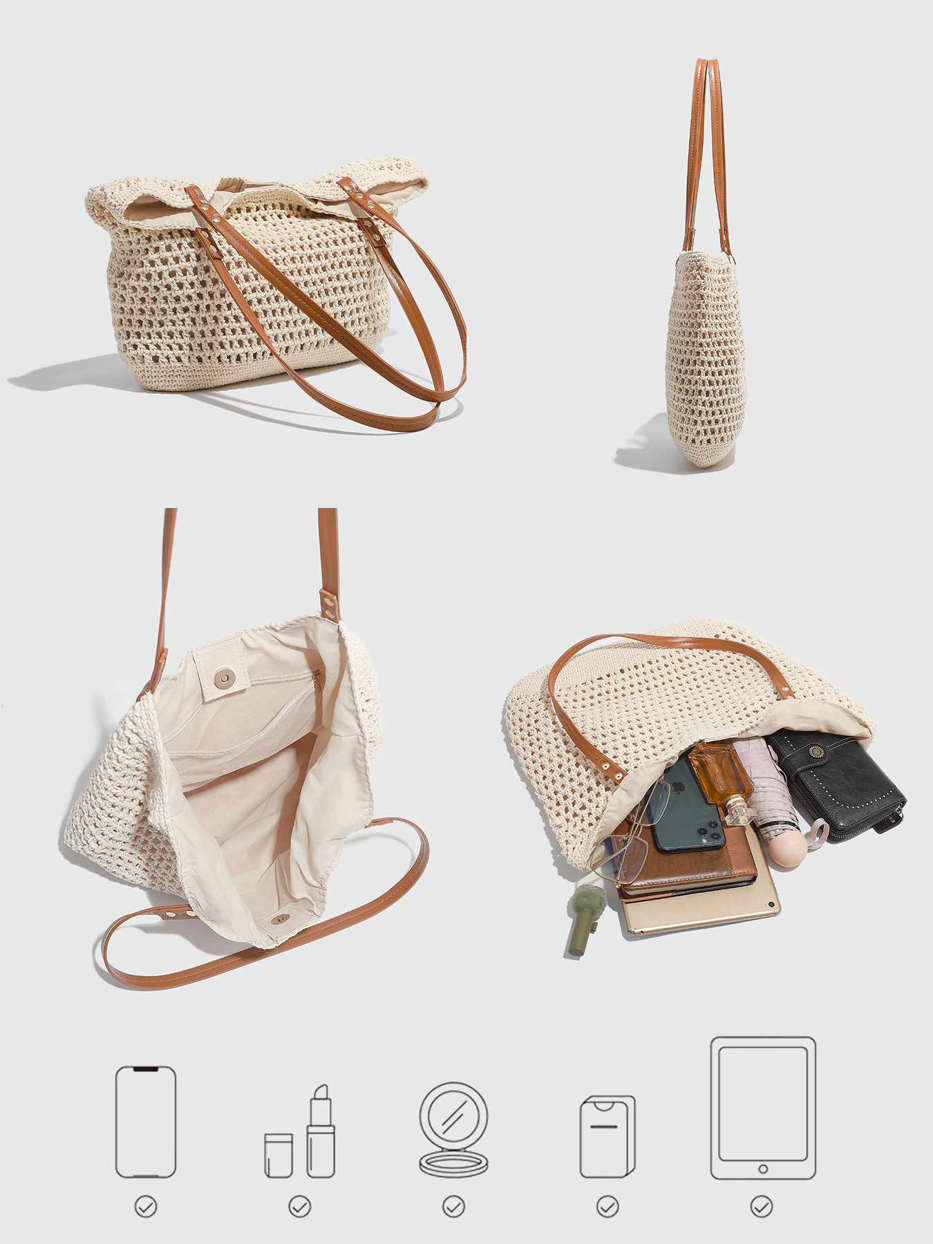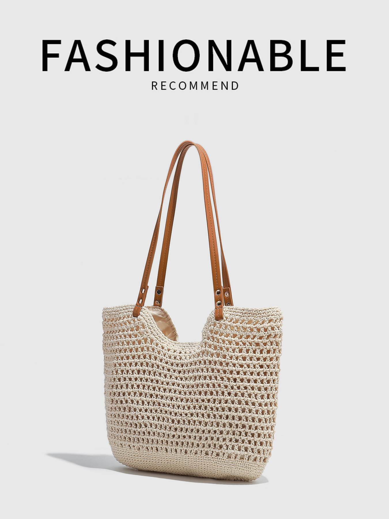 대형 짠 토트 백 2025 새로운 봄, 여름 해변 레저 휴가 해변 가방 어깨 겨드랑이 가방 크로스 바디스토어 가기