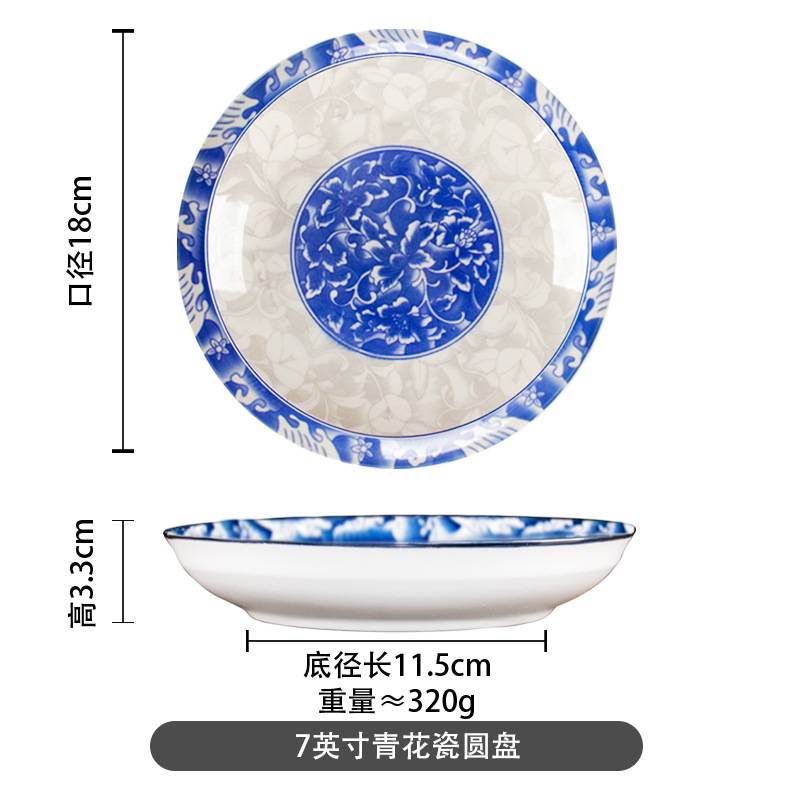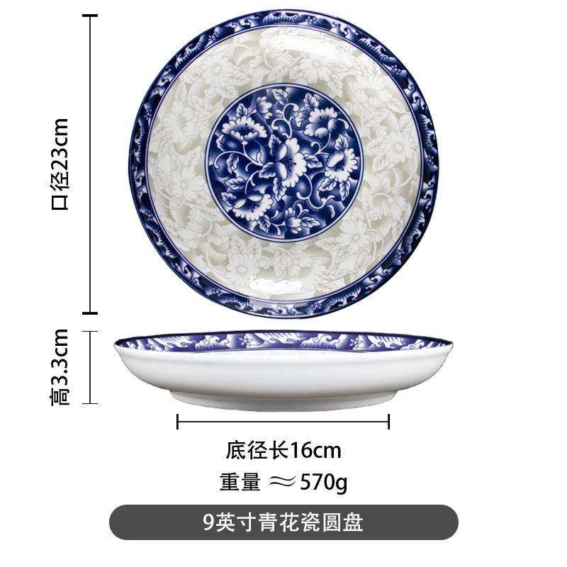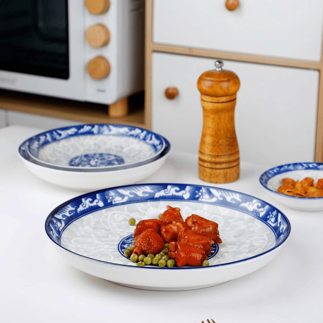 파란색과 흰색 도자기 접시 가정용 세라믹 유약 다채로운 쌀 접시 2025 새로운 호텔 식기 대형 플레이트 상업스토어 가기