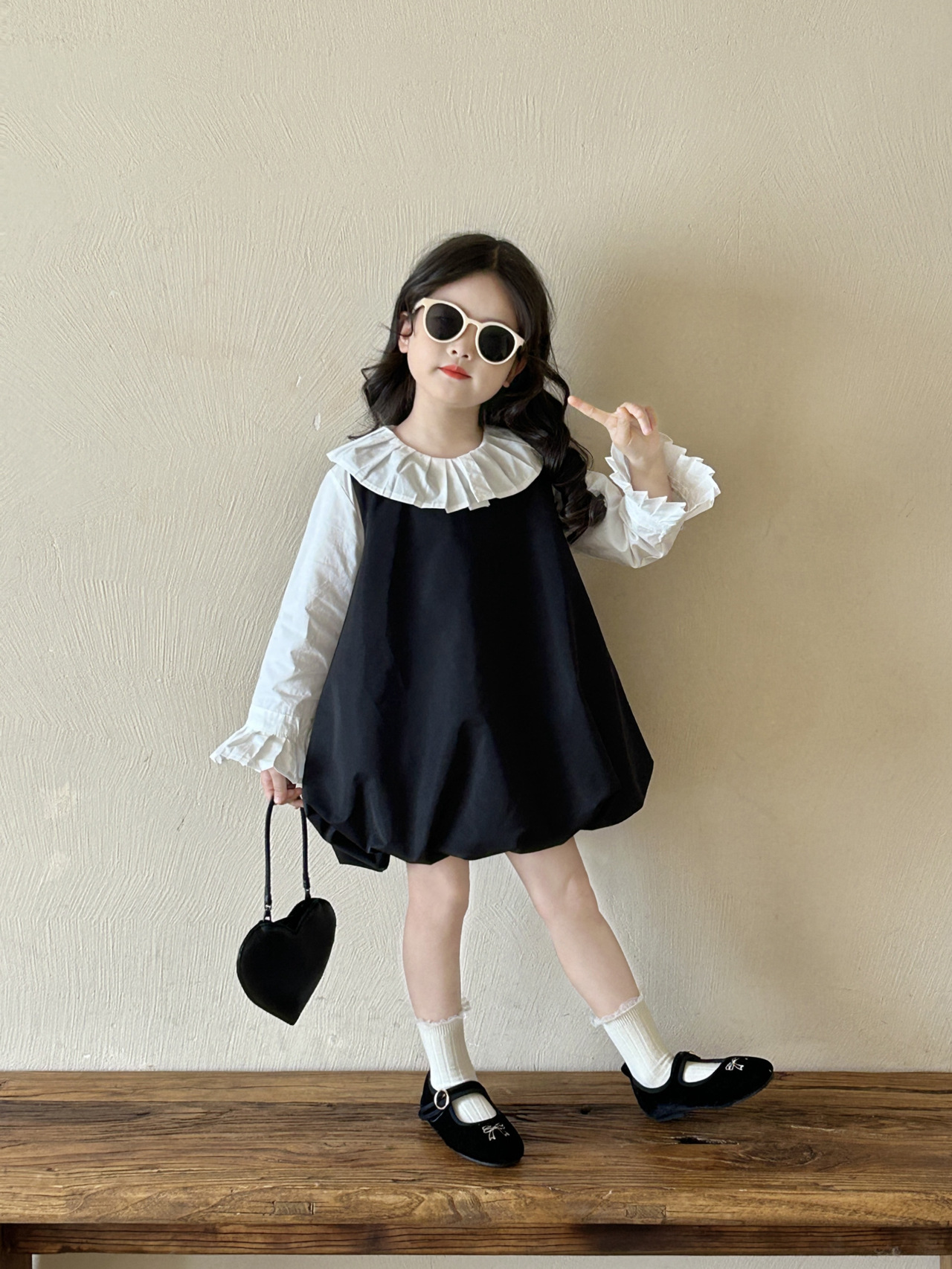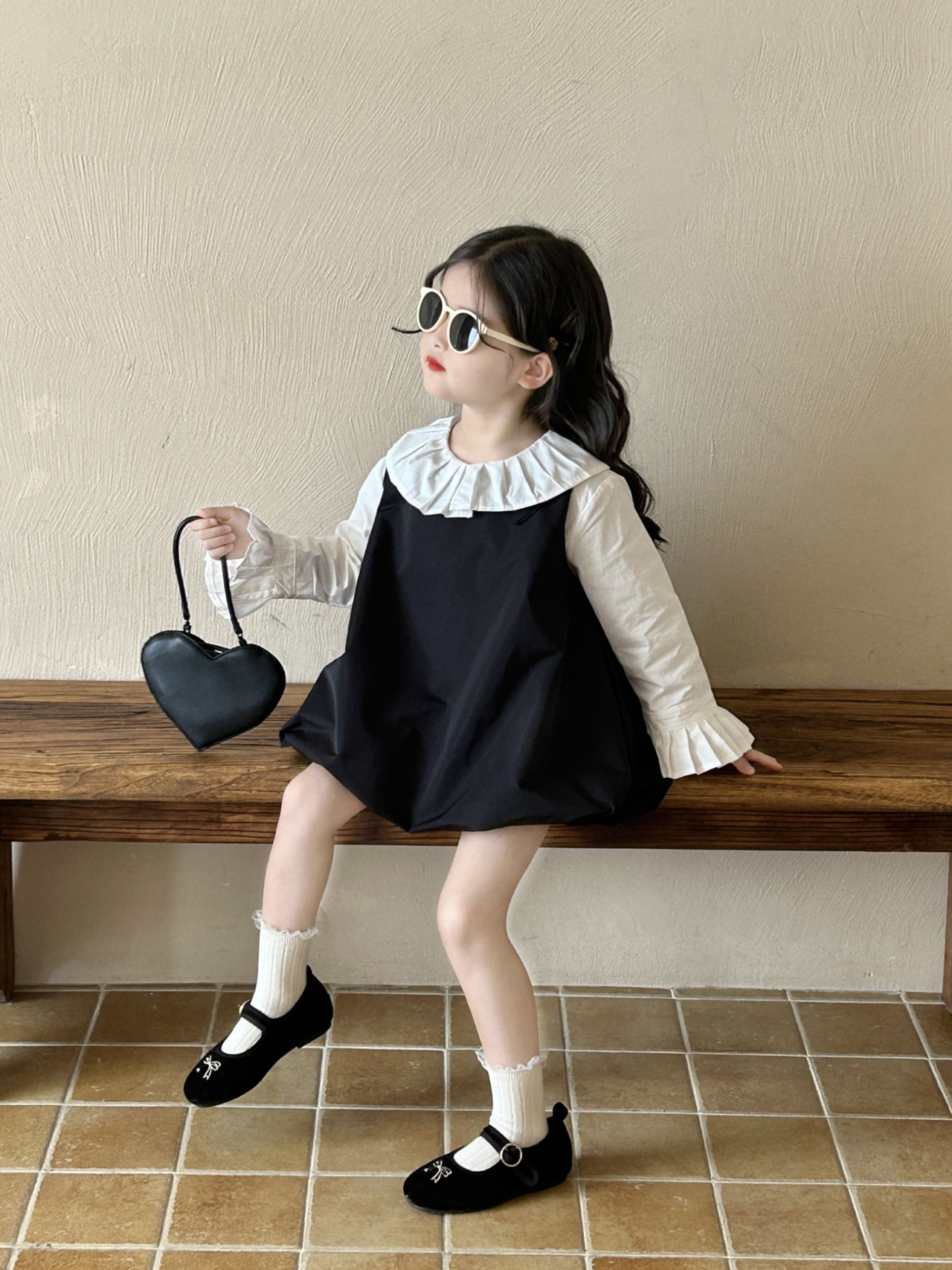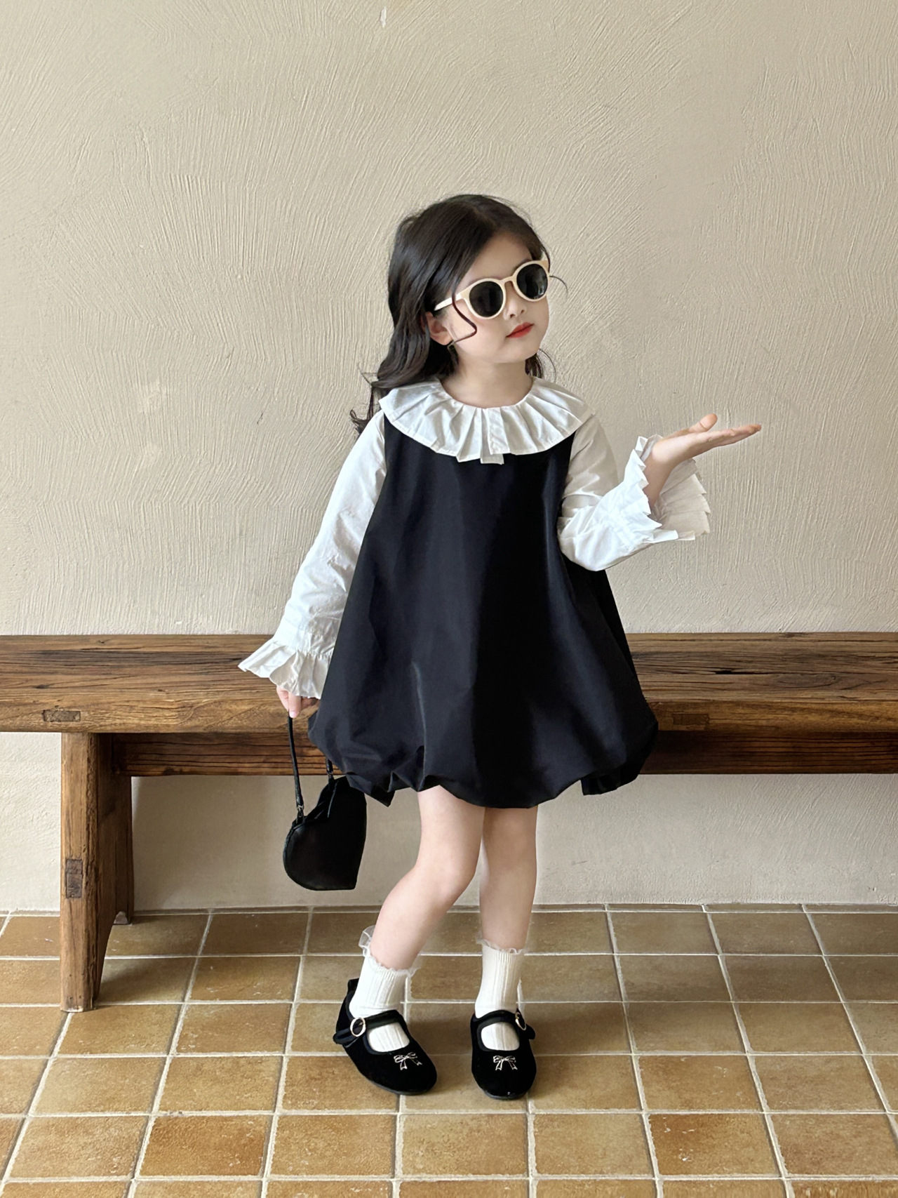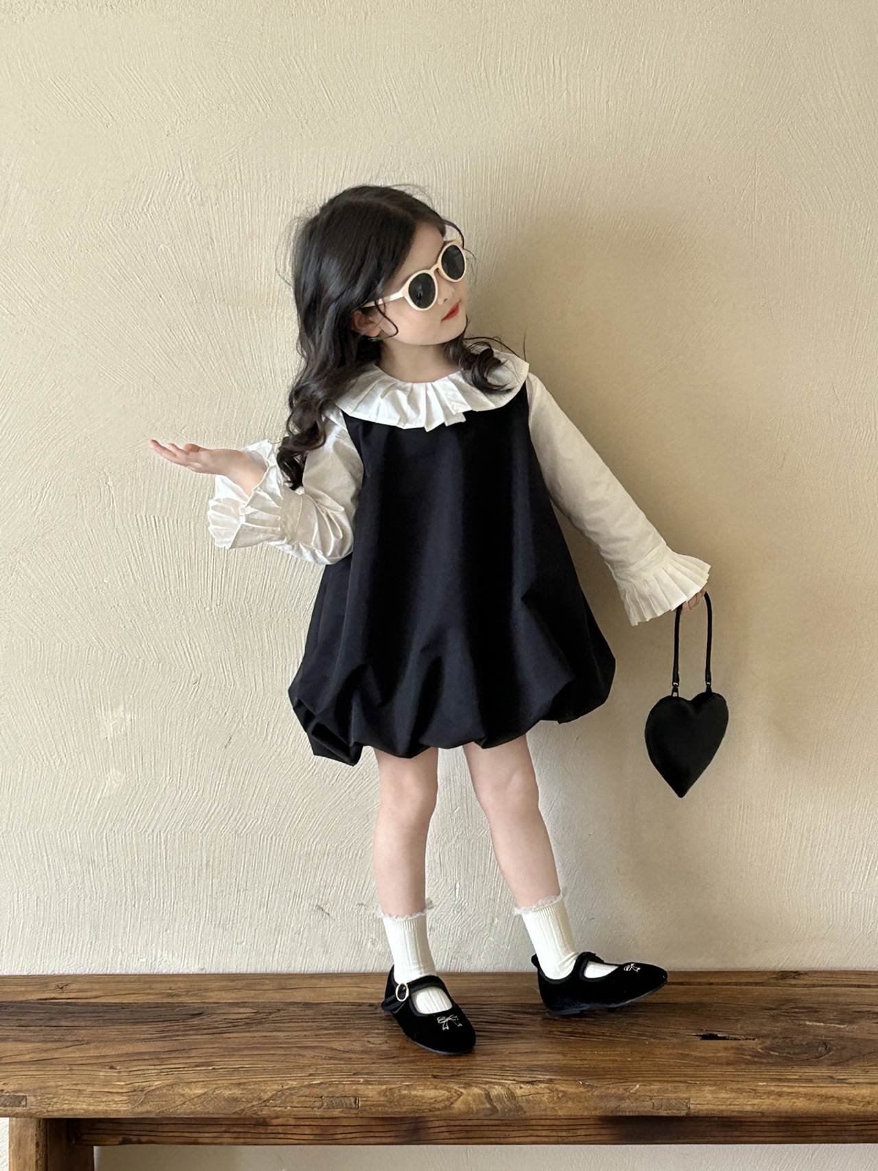 어린이 한국식 원피스 2025 봄과 가을 새 아동복 소녀 검은 조끼 치마 어린이 주름 칼라 셔츠스토어 가기