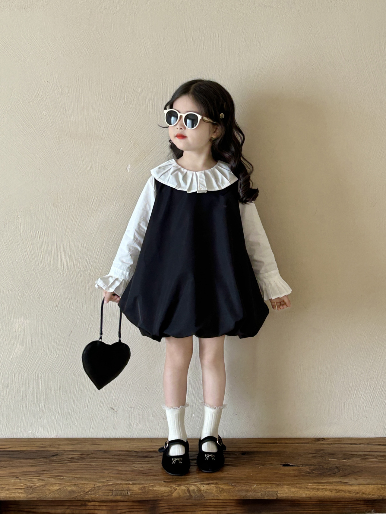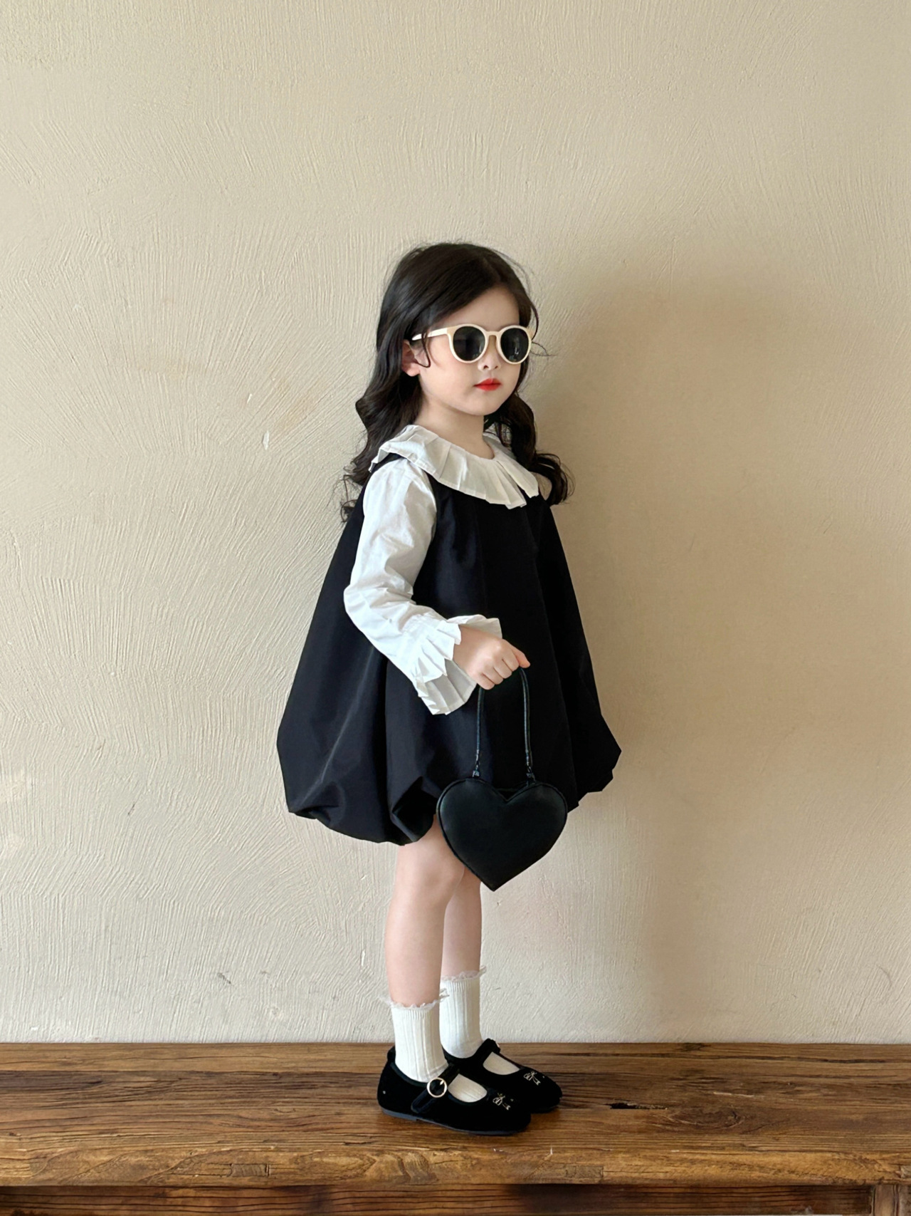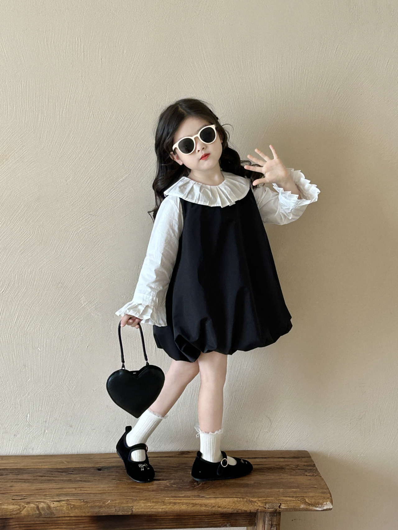어린이 한국식 원피스 2025 봄과 가을 새 아동복 소녀 검은 조끼 치마 어린이 주름 칼라 셔츠스토어 가기