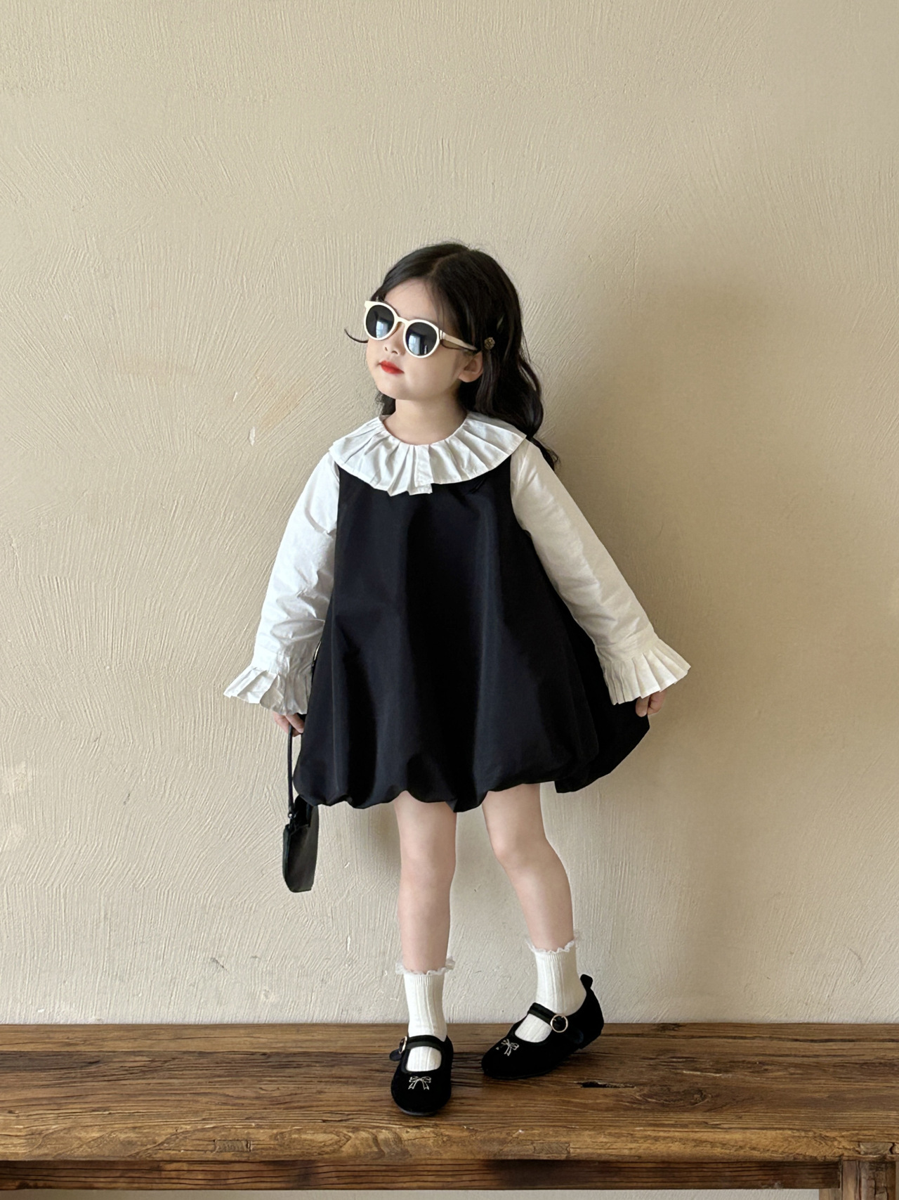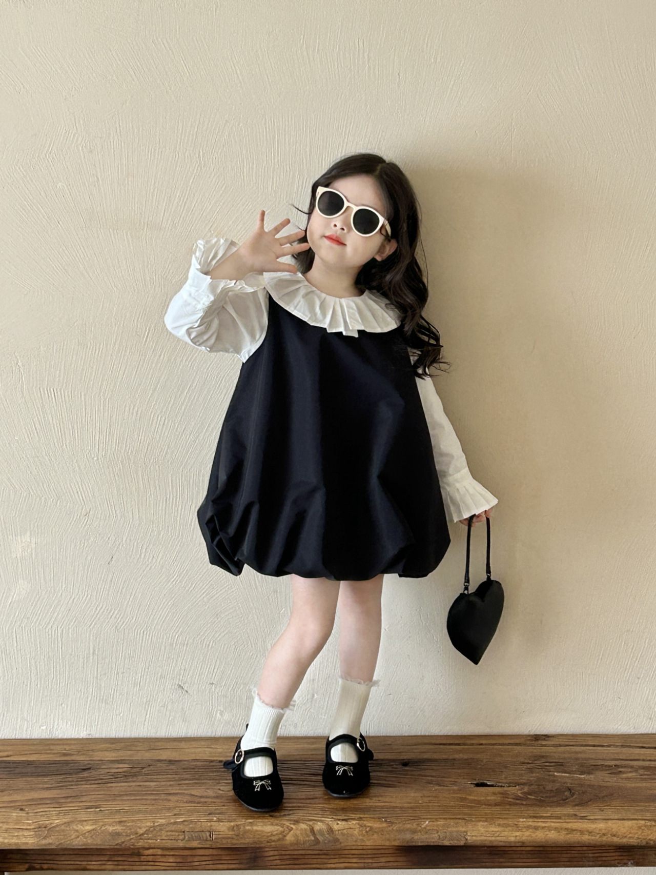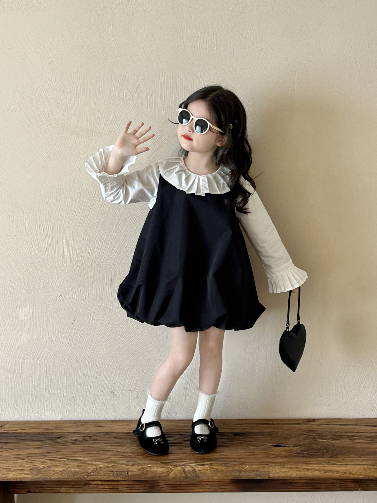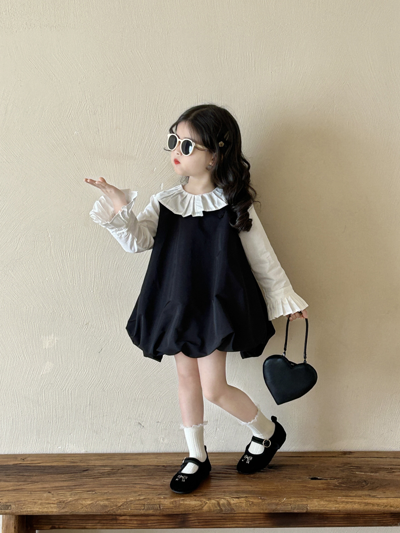 어린이 한국식 원피스 2025 봄과 가을 새 아동복 소녀 검은 조끼 치마 어린이 주름 칼라 셔츠스토어 가기