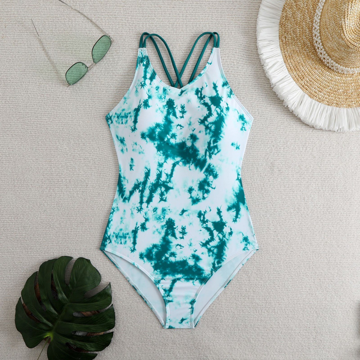 태국 수영복 여성의 2024 새로운 향기 염료 스트랩 원피스 비키니 슬림 백리스 온천 해변 수영복