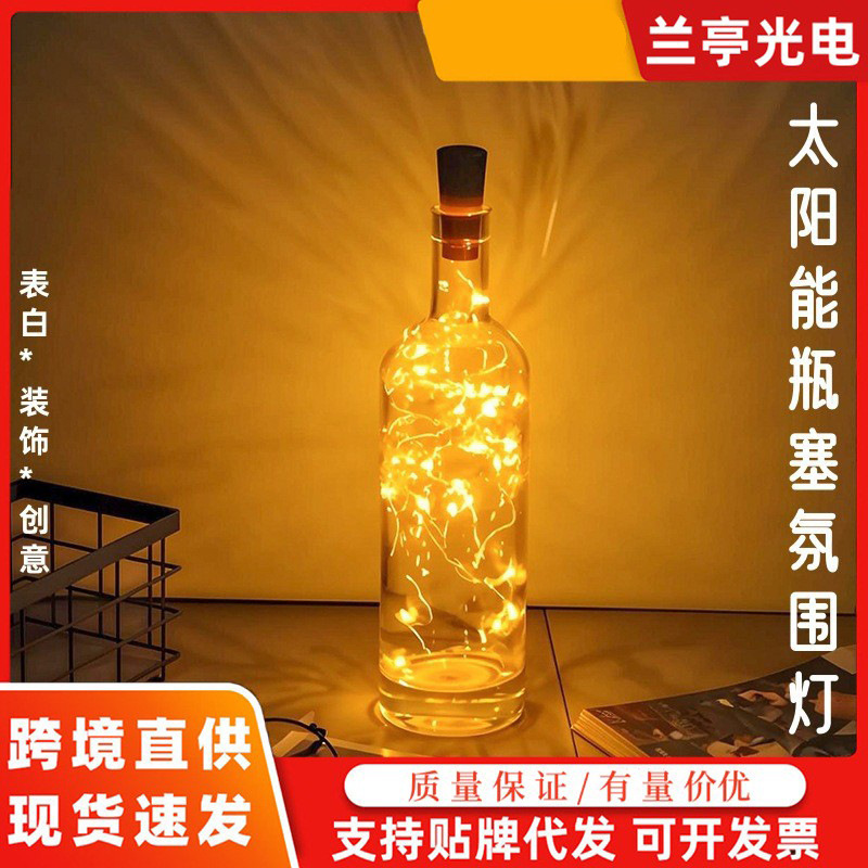 공장 직접 판매 태양 병 마개 조명 문자열 조명 분위기 조명 정원 조명 구리 와이어 빛나는 와인 병 조명 야외 장식 조명스토어 가기