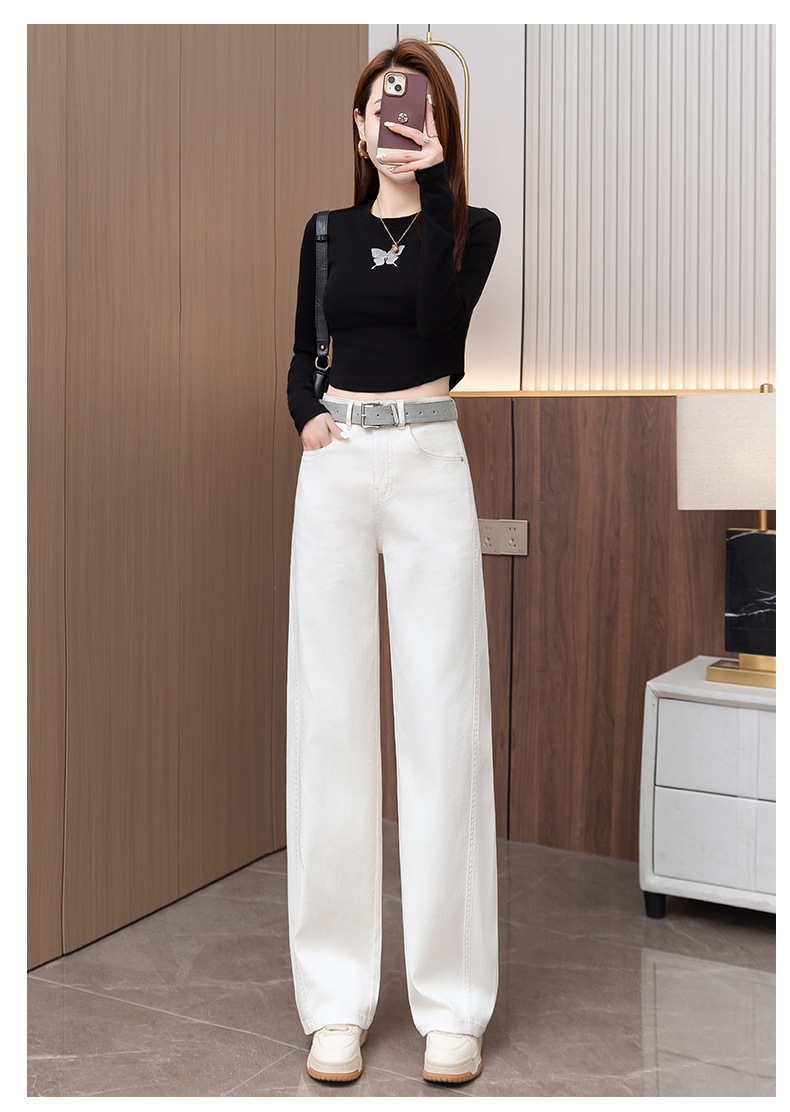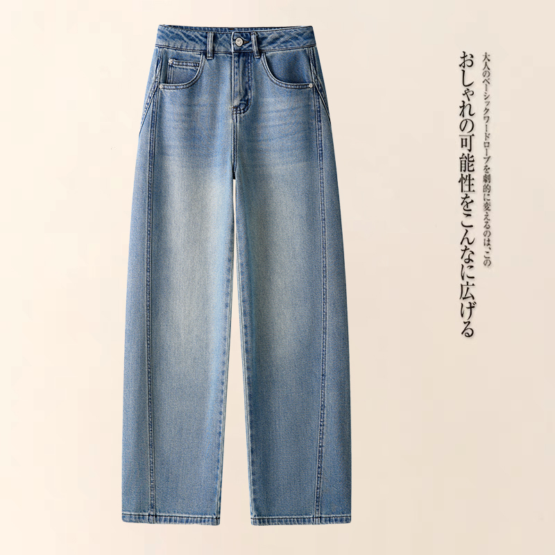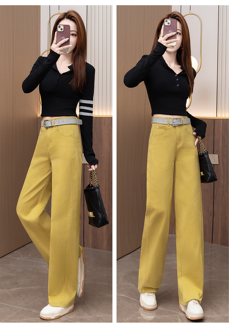 올해 인기있는 노란색 데님 마체 테 바지 여성 2025 봄과 가을 새 낫 바지 느슨한 스트레이트 와이드 다리 바지스토어 가기