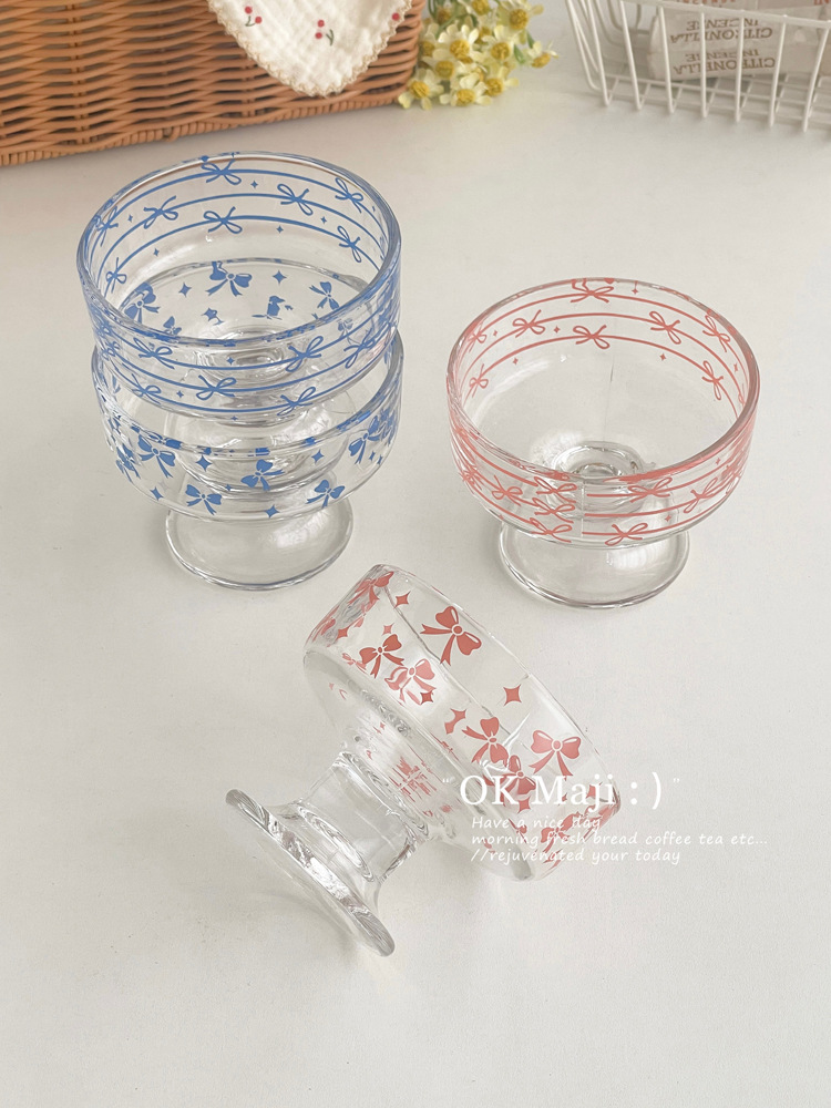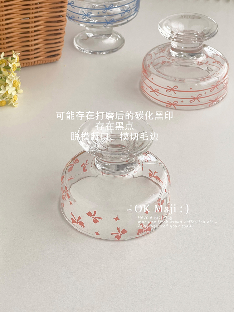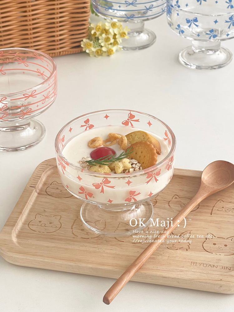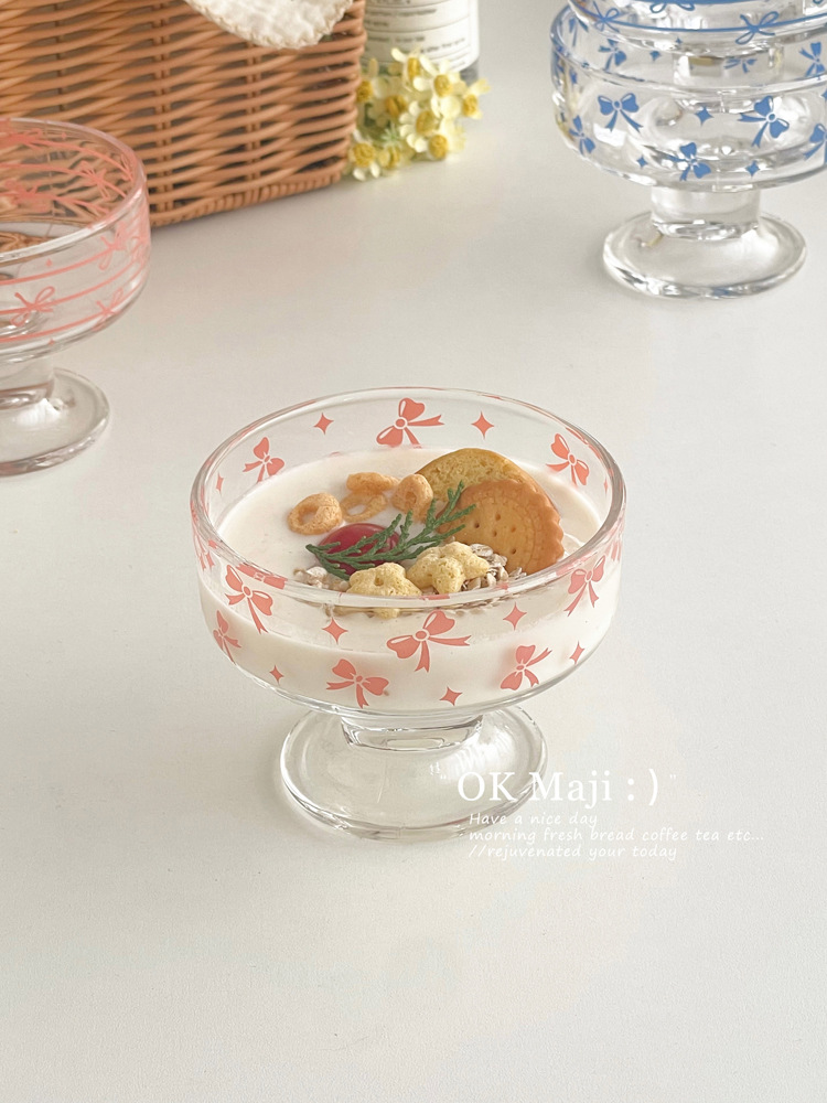 Ins 스타일 요구르트 그릇 높은 색 가치 오트밀 그릇 유리 과일 오트밀 그릇 높은 발 그릇 귀여운 아침 식사 그릇 요구르트 컵스토어 가기