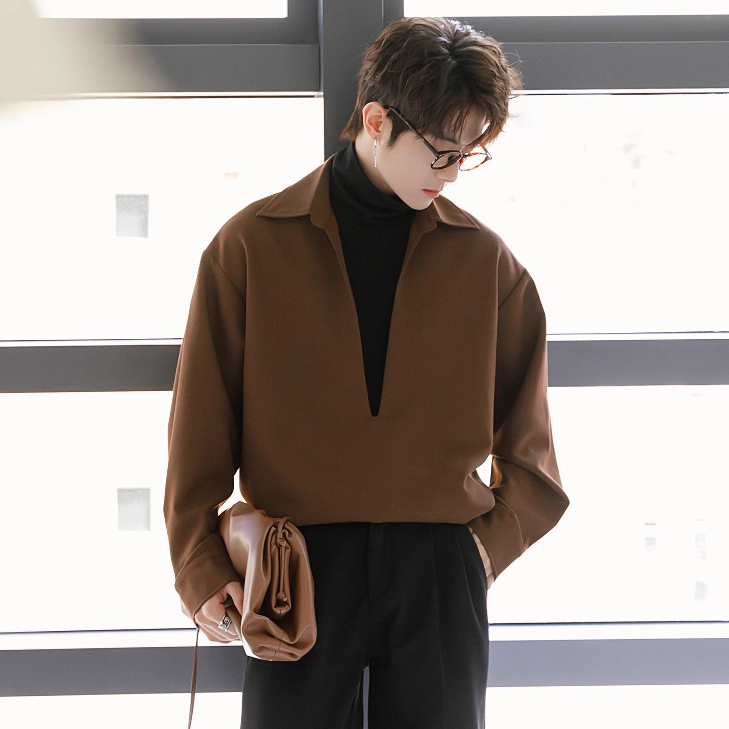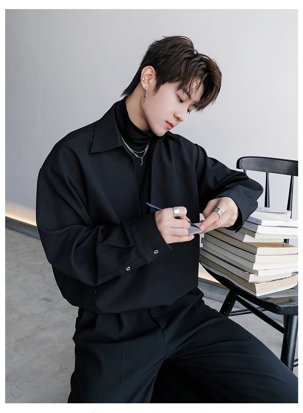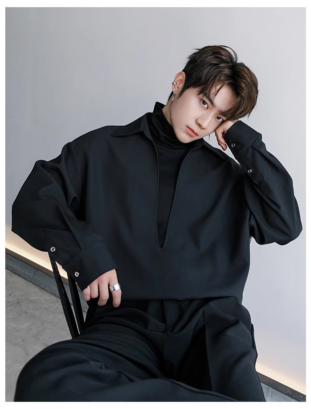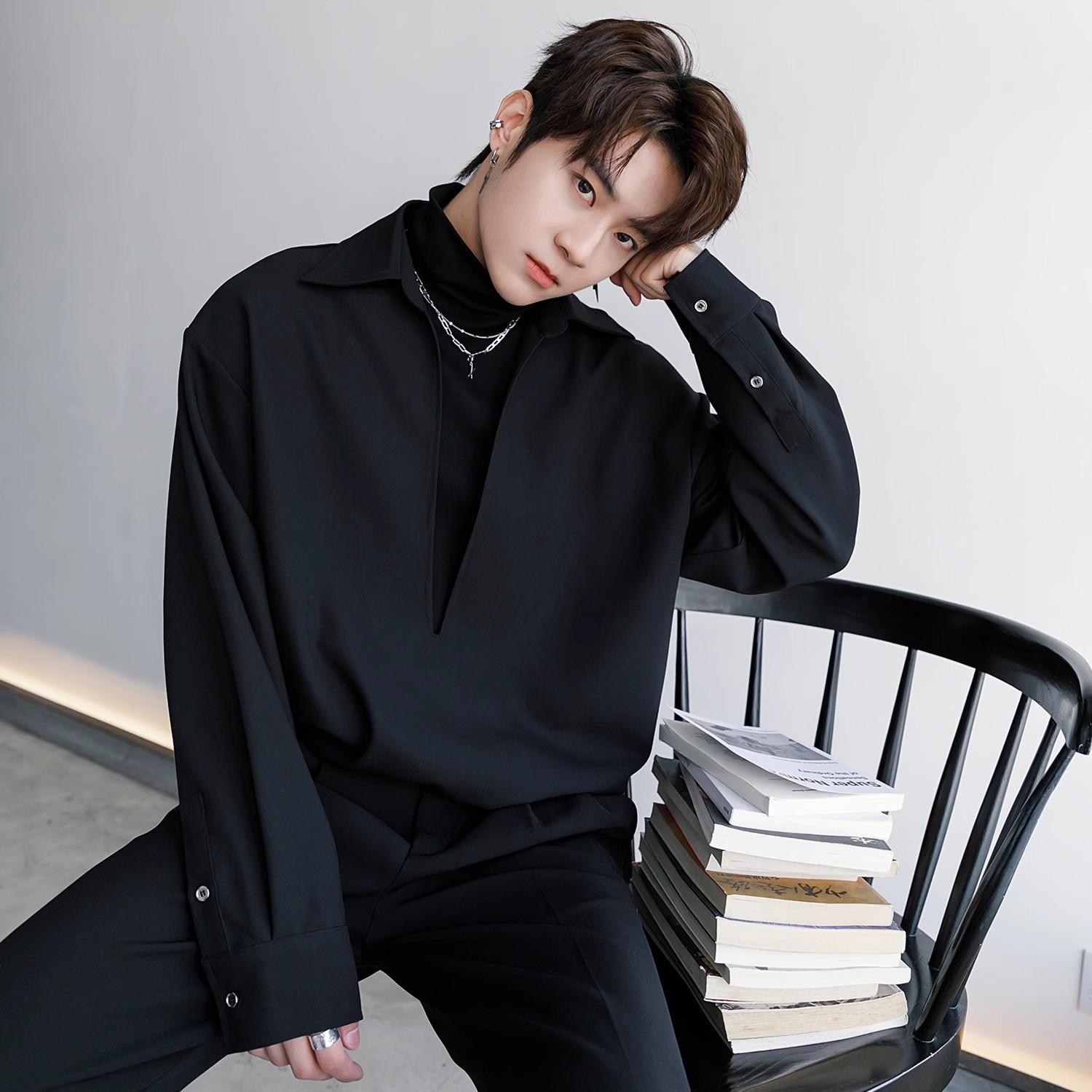 남자 긴팔 셔츠 2025 봄과 가을 새로운 패션 하이 엔드 센스 페이크 투피스 셔츠 코트스토어 가기