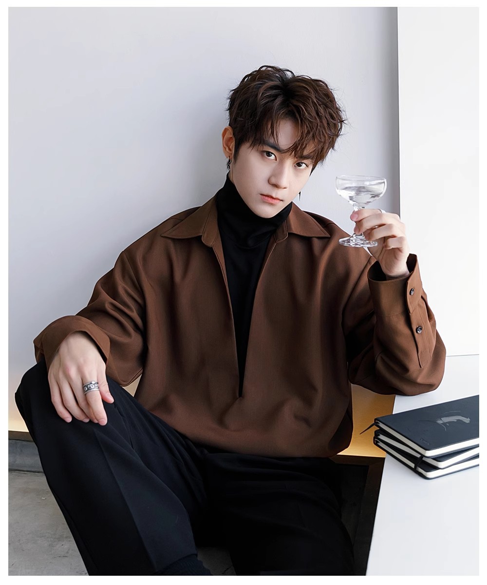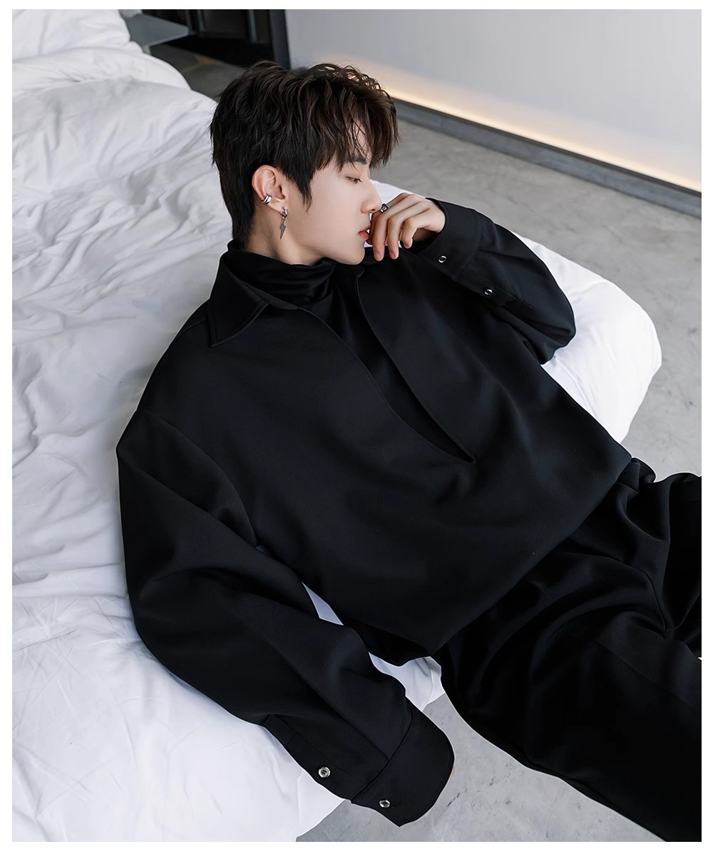 남자 긴팔 셔츠 2025 봄과 가을 새로운 패션 하이 엔드 센스 페이크 투피스 셔츠 코트