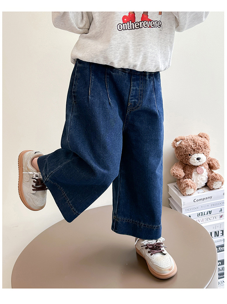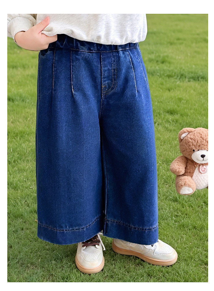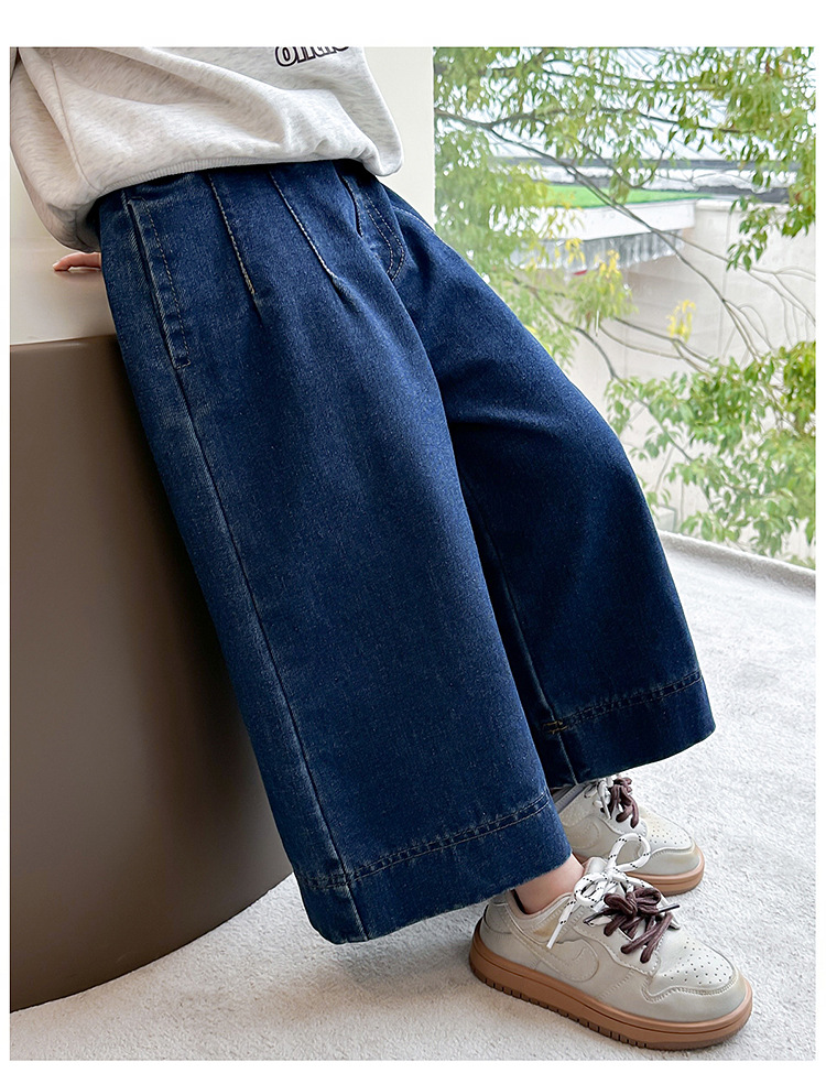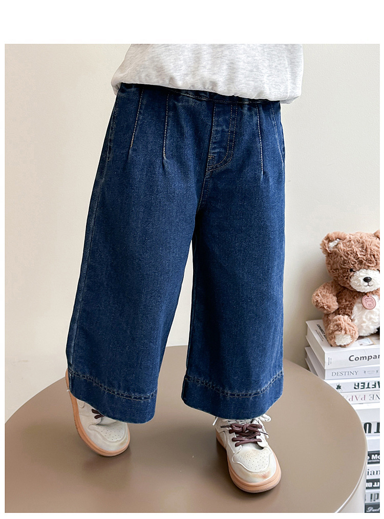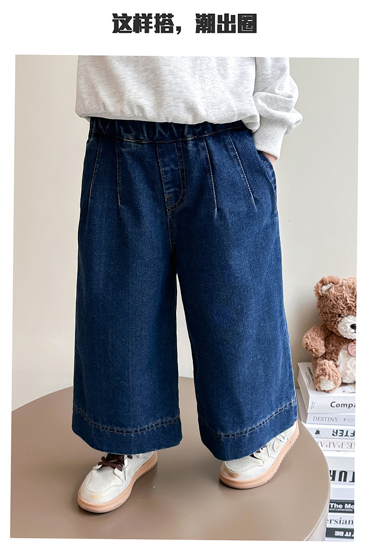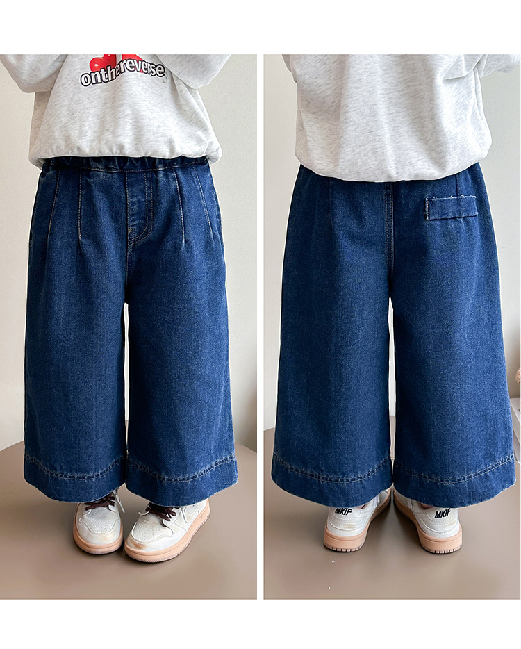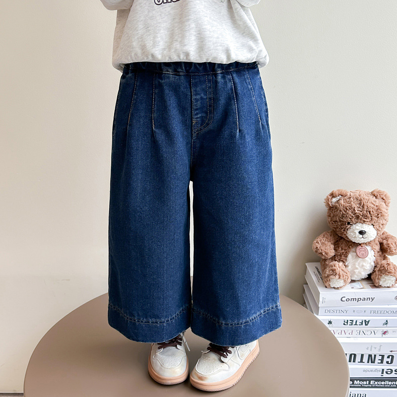 소녀 바지 봄과 가을 2025 새로운 어린이 데님 넓은 다리 바지 봄 소녀의 한국 스타일 봄 스트레이트 캐주얼 바지