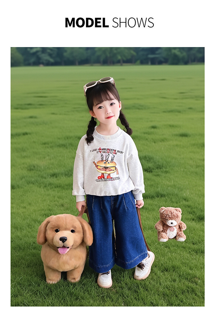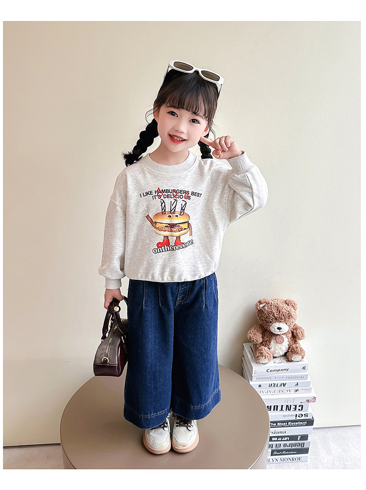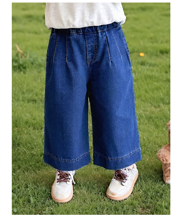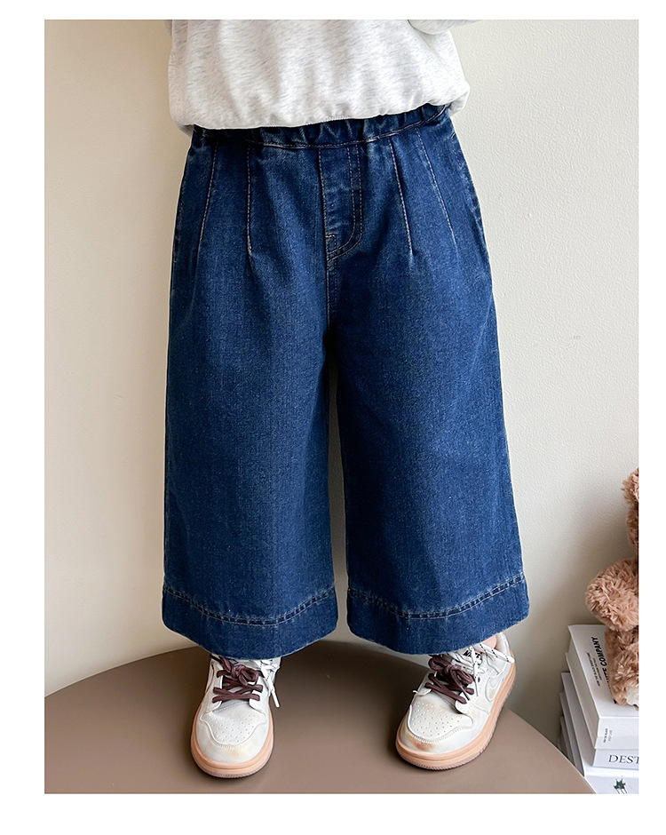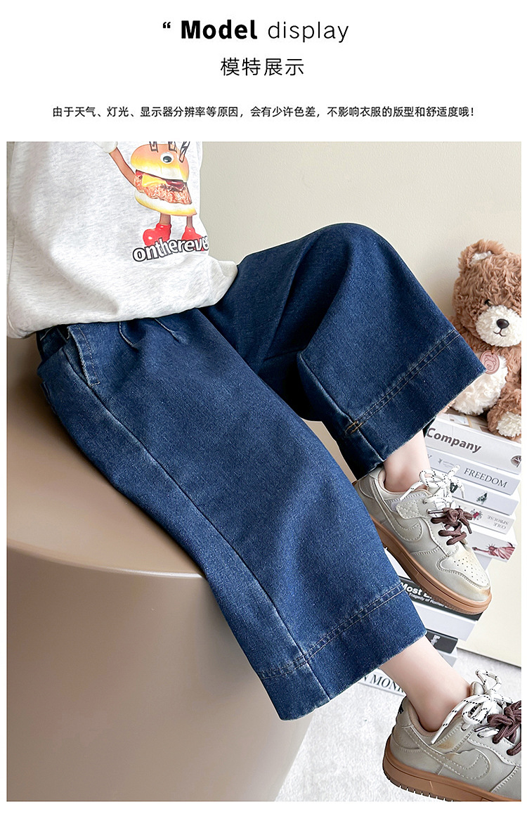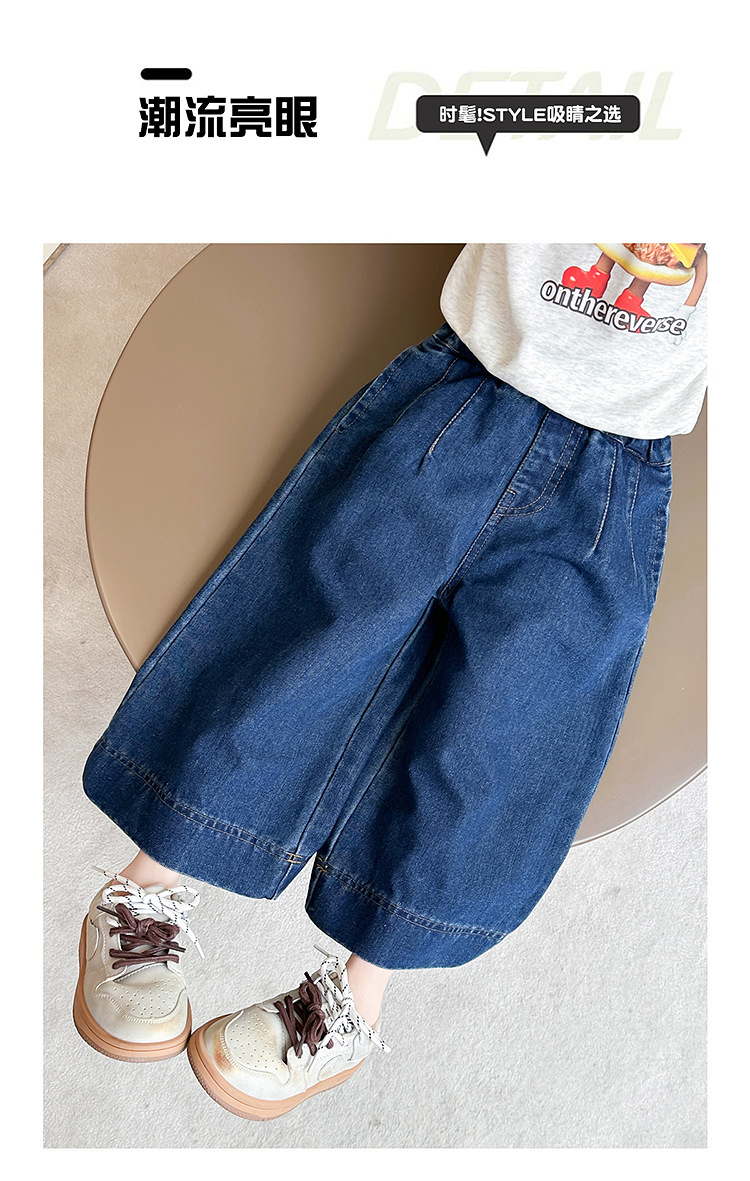 소녀 바지 봄과 가을 2025 새로운 어린이 데님 넓은 다리 바지 봄 소녀의 한국 스타일 봄 스트레이트 캐주얼 바지