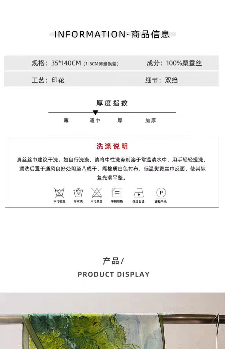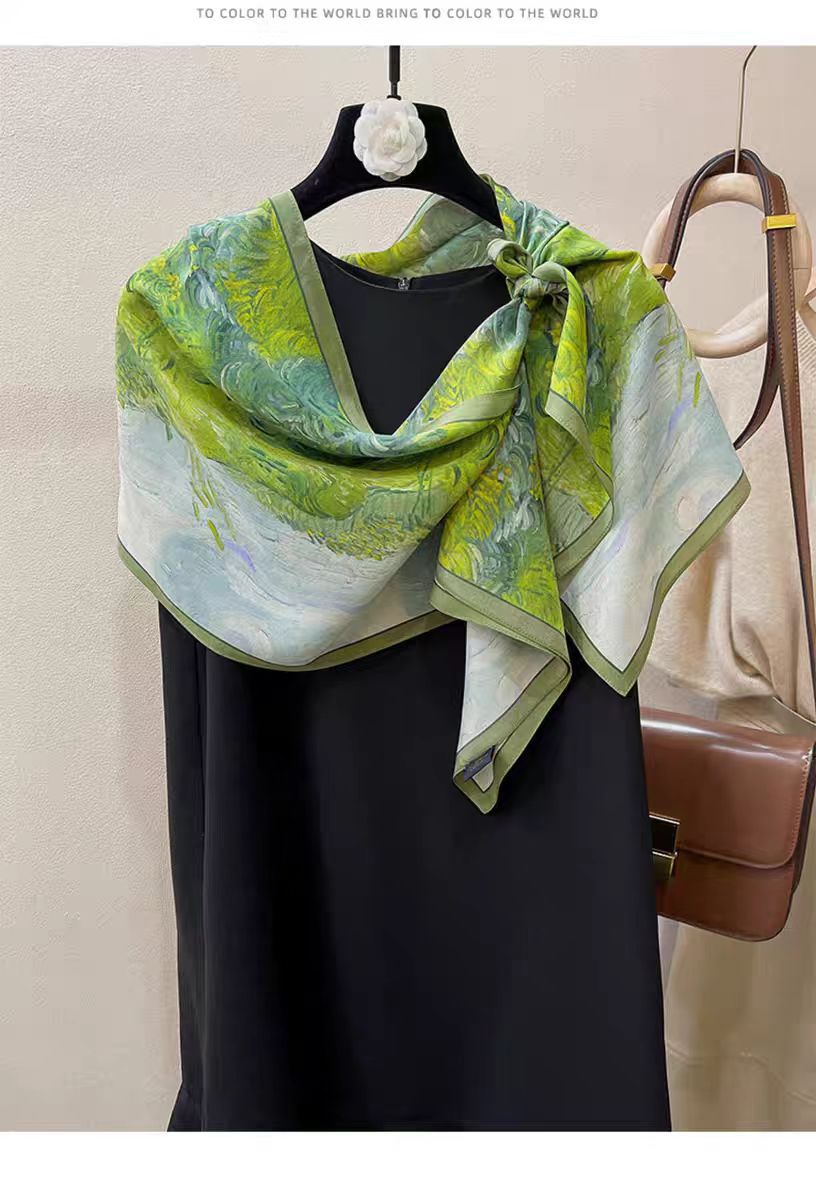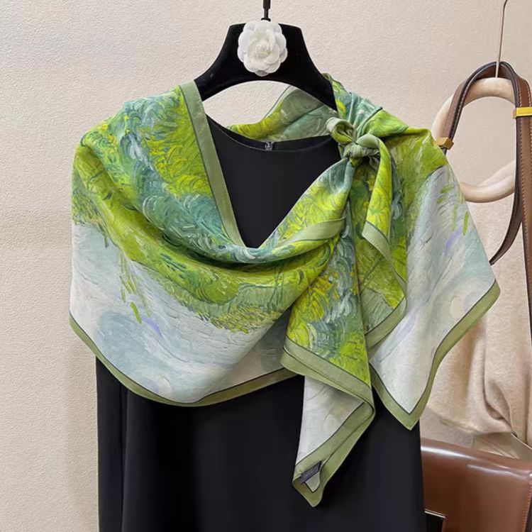 실크 크레페 드 친 유화 그린 뽕나무 실크 스카프 여성 봄과 여름 한국식 올 매치 롱 스카프 장식 리본스토어 가기