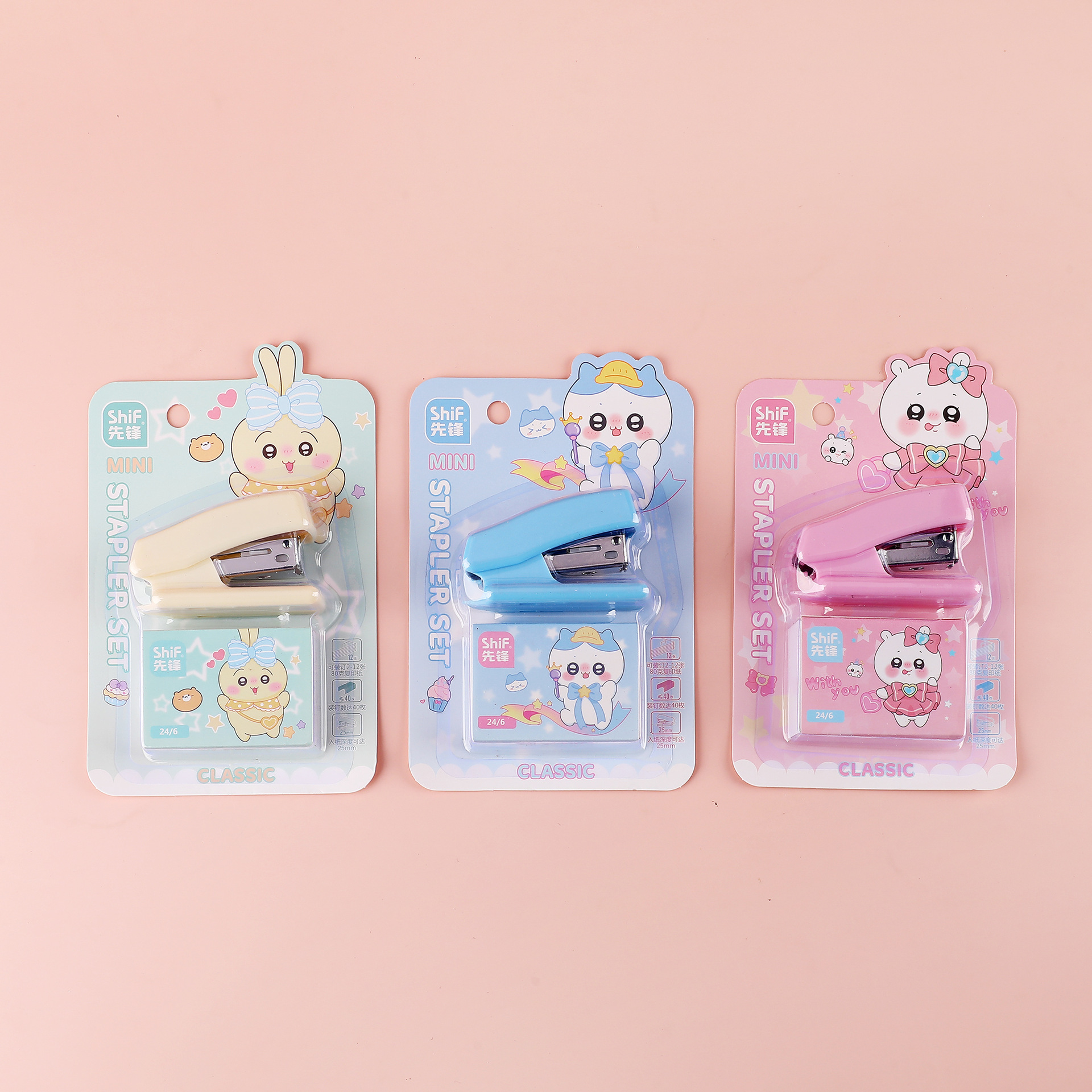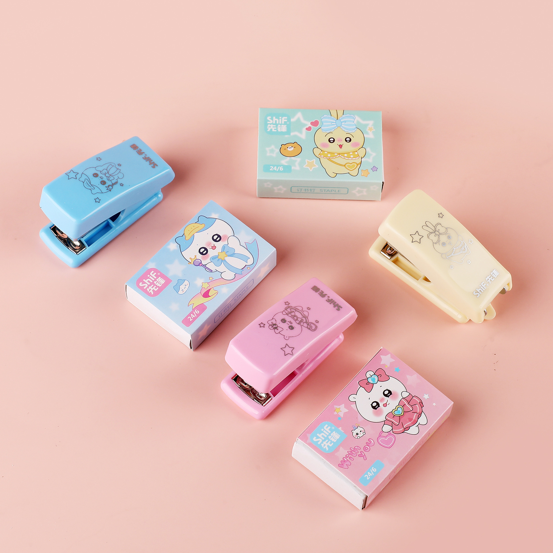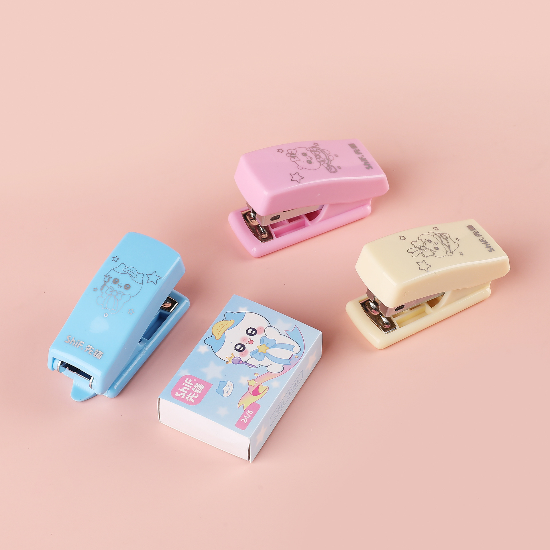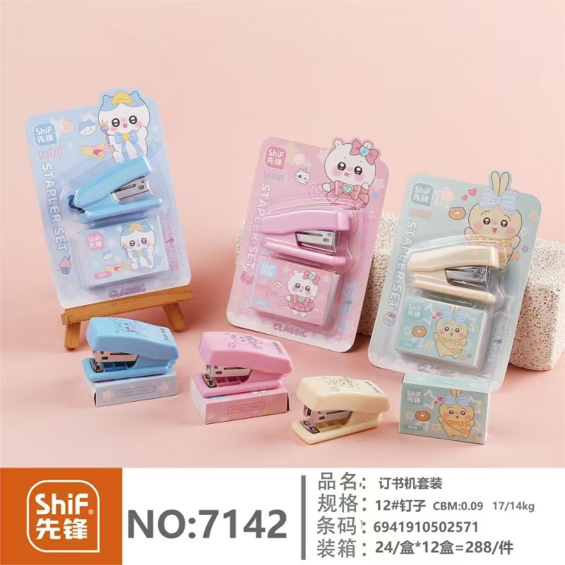 파이오니어 7142 만화 미니 스테이플러 세트 2 조각 세트 스몰 사이즈 귀여운 학생 특별 스테이플러 도매스토어 가기