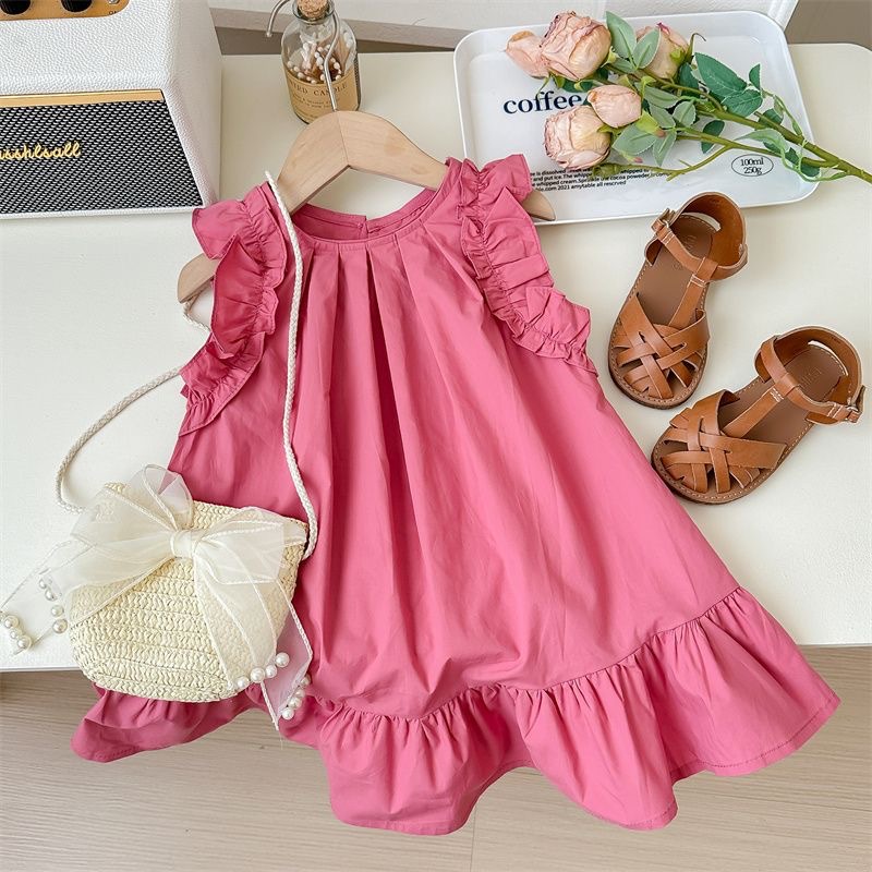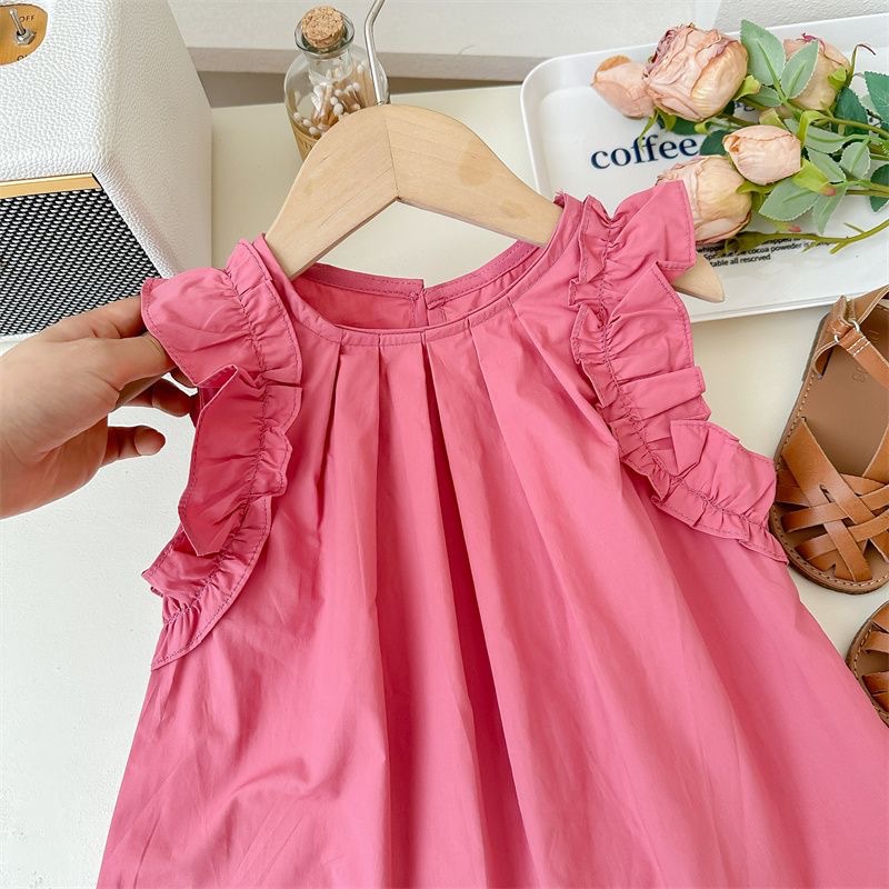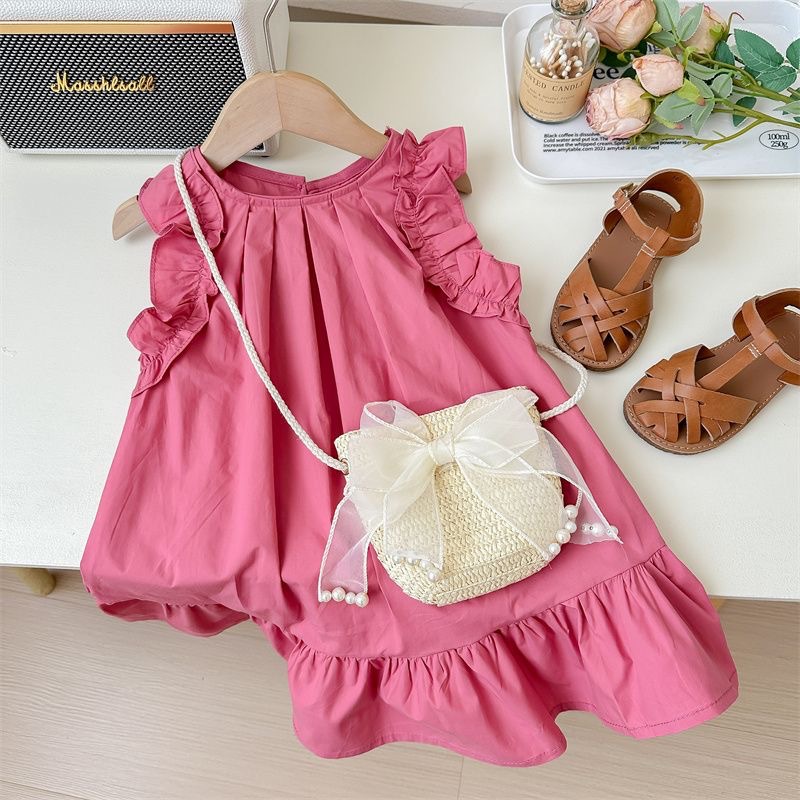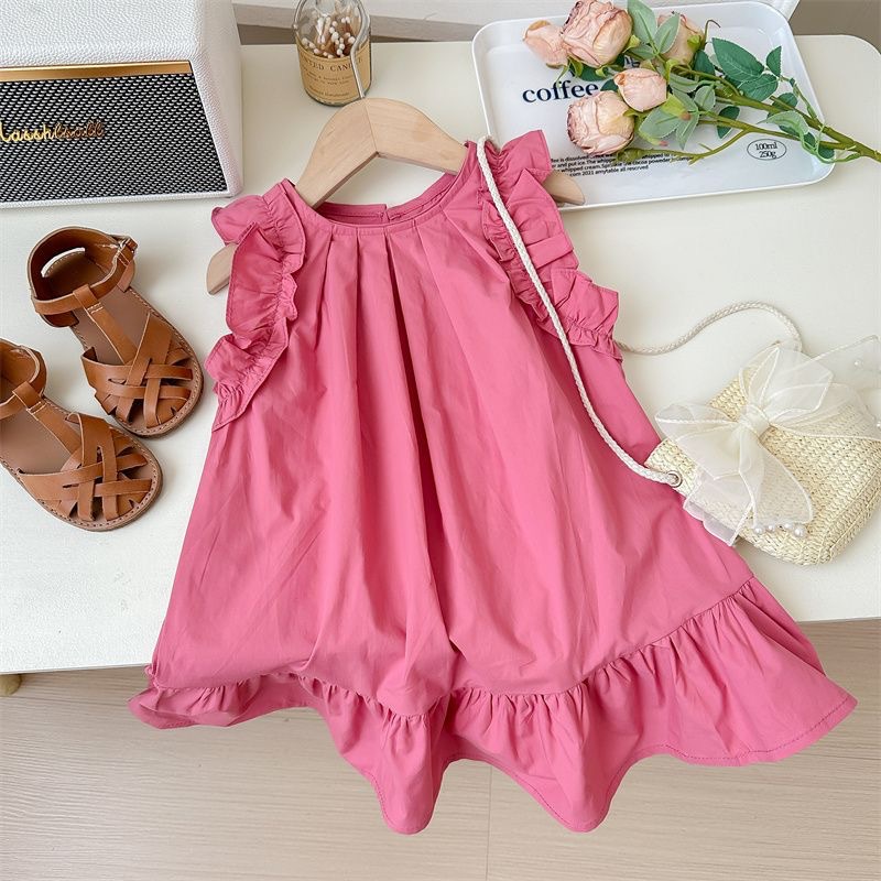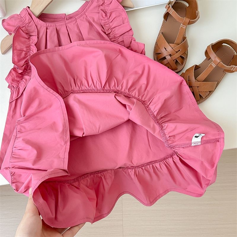 2025 한국식 소녀 공주 치마 아기 여름 비행 슬리브 랜턴 스커트 어린이 원피스 서양식 어린이 스커트
