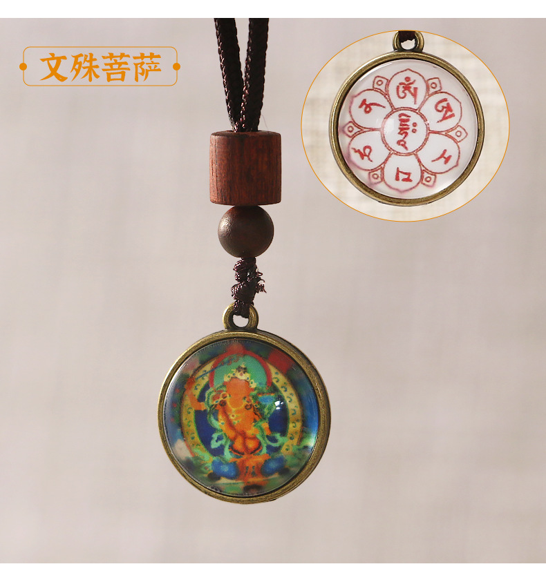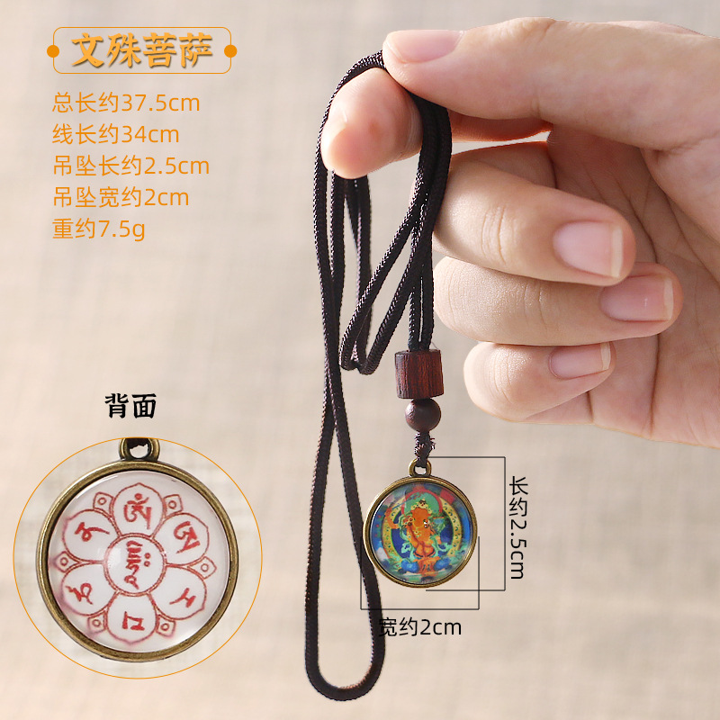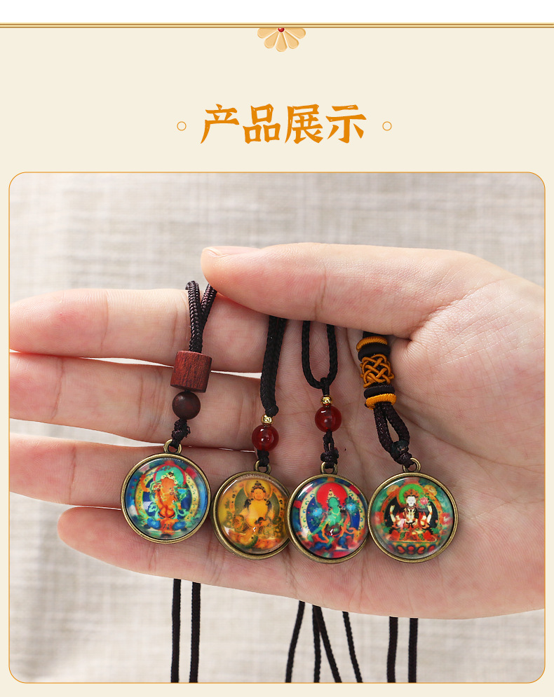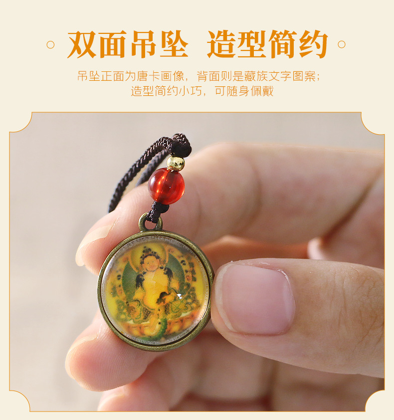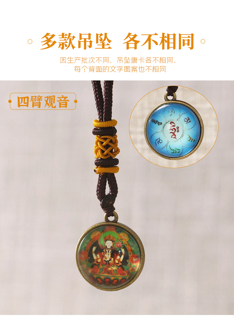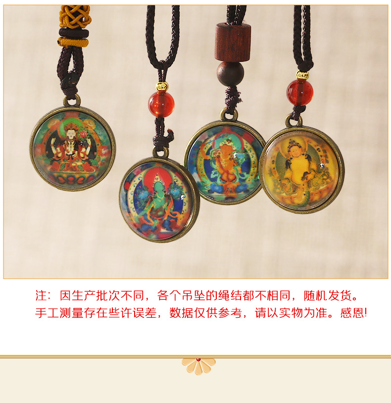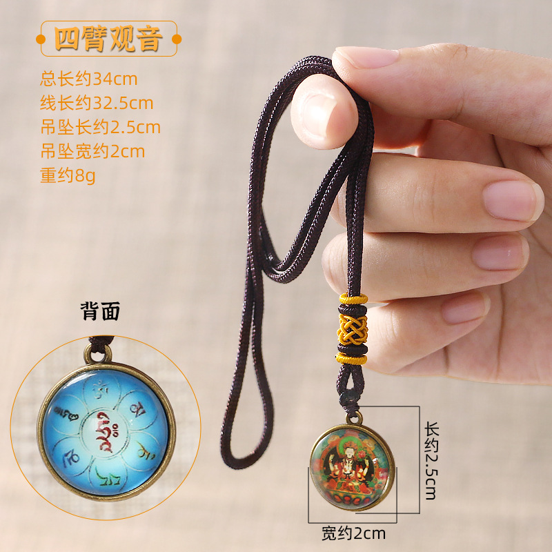 민족 스타일 펜던트 만주리 보살 4 팔 관음 펜던트 녹색 어머니 목걸이 티벳 탕카 휴대 전화 가방 펜던트스토어 가기