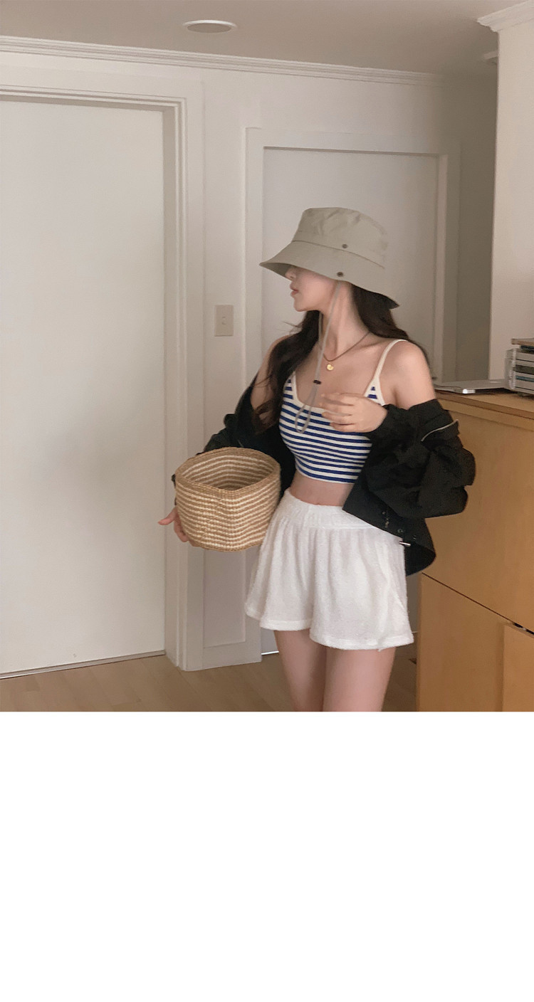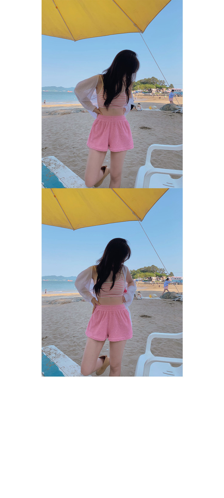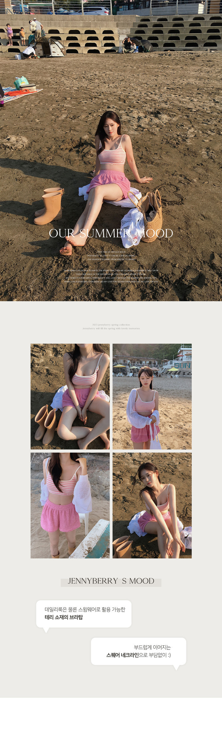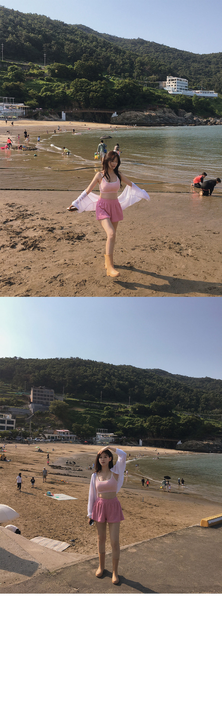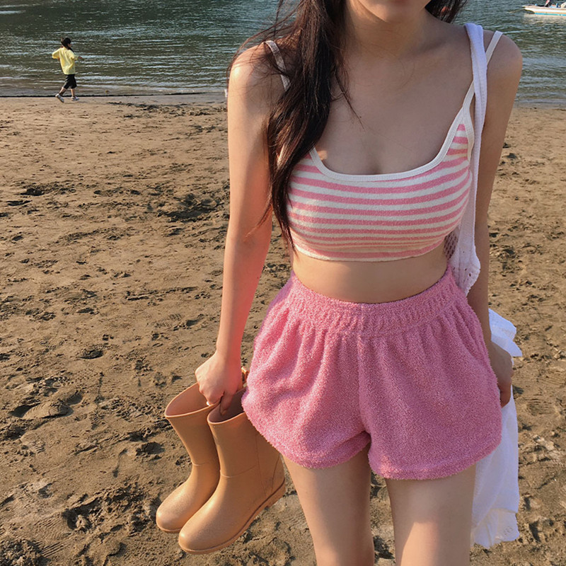 2024 한국식 새 스플릿 수영복 여성용 섹시 스트라이프 타월 패브릭 스트랩 비키니 홀리데이 비키니스토어 가기