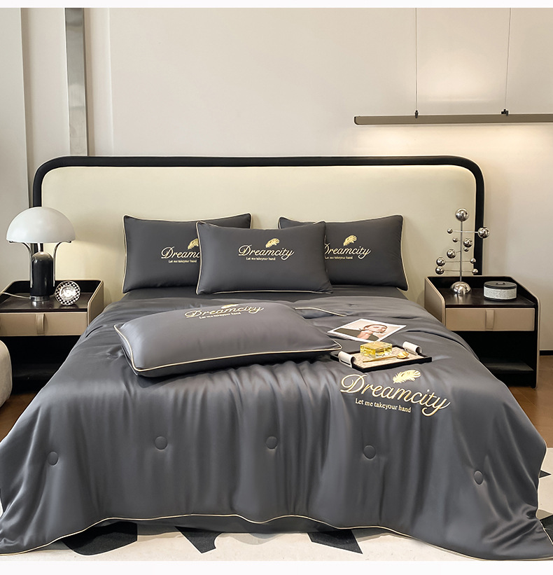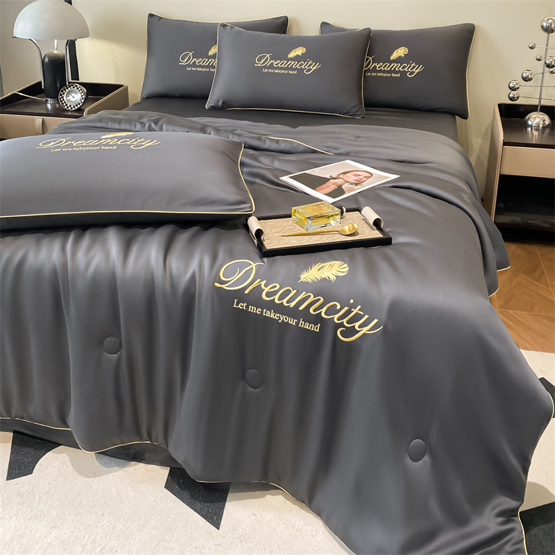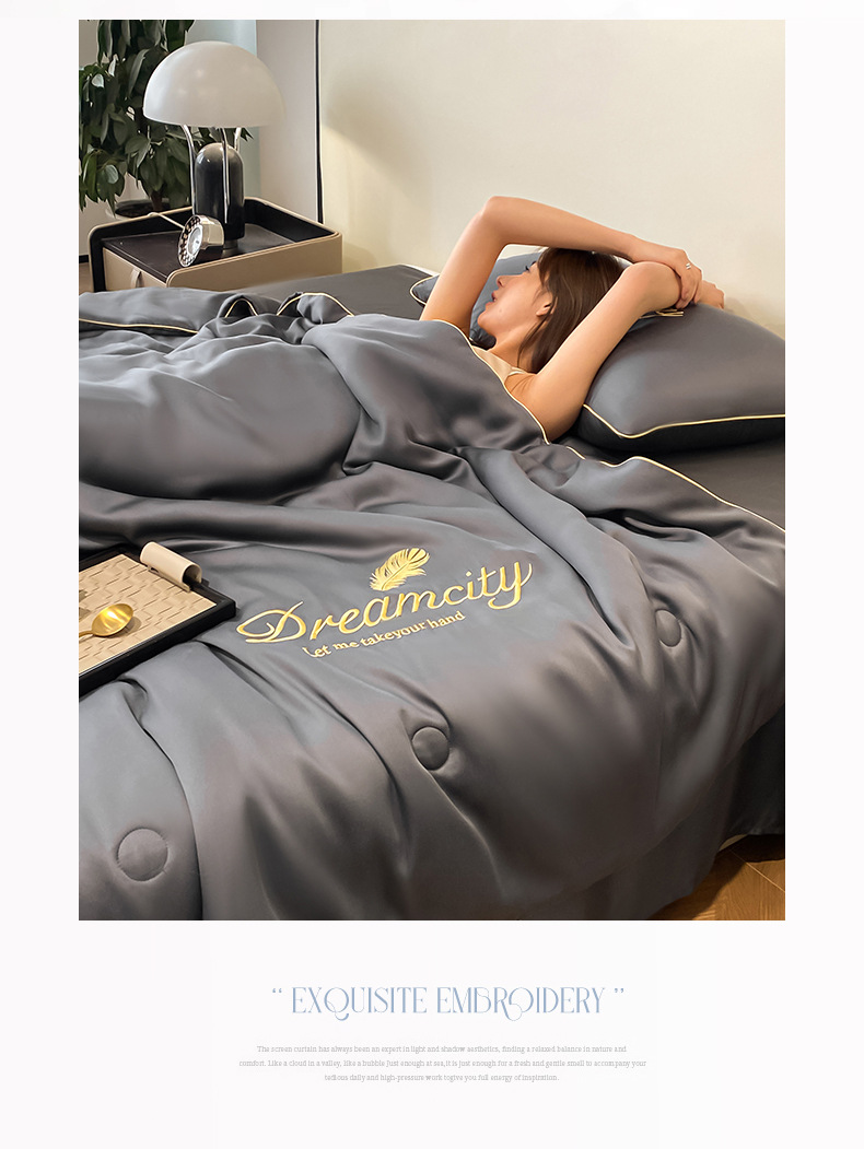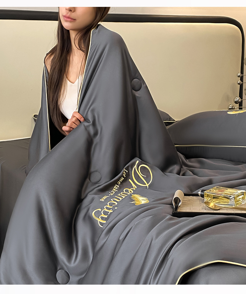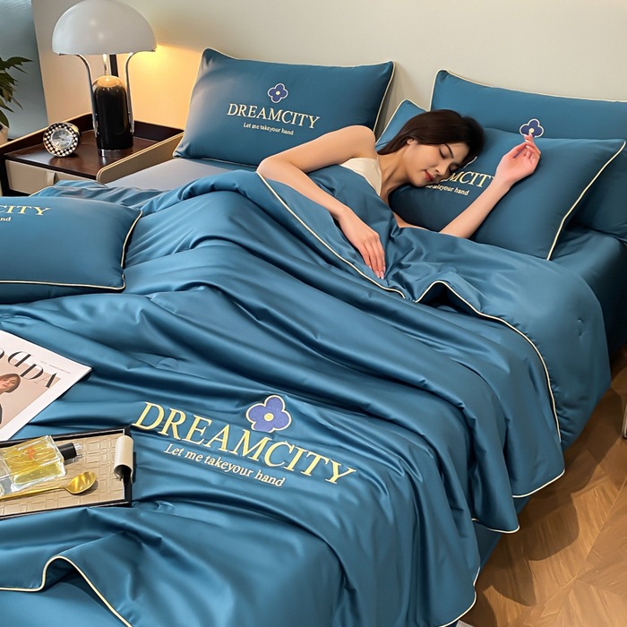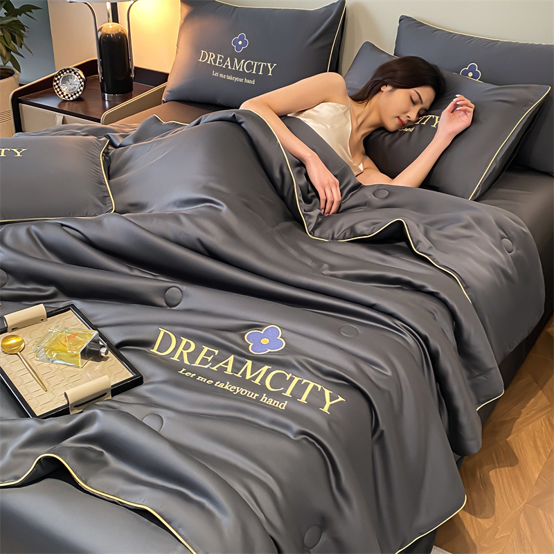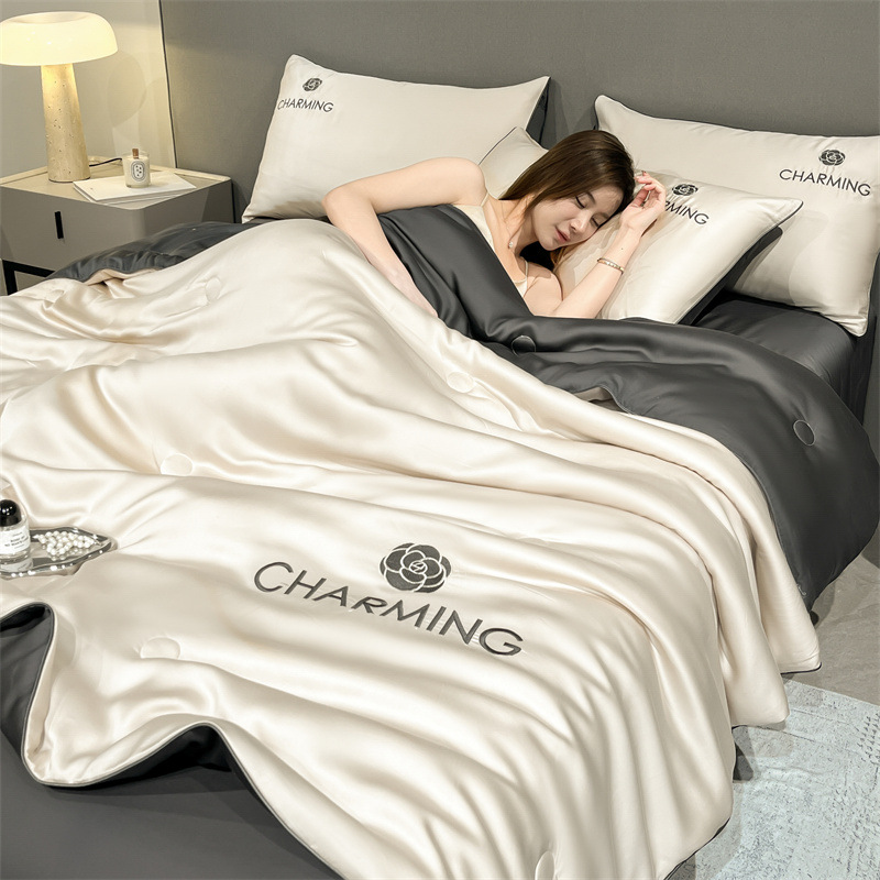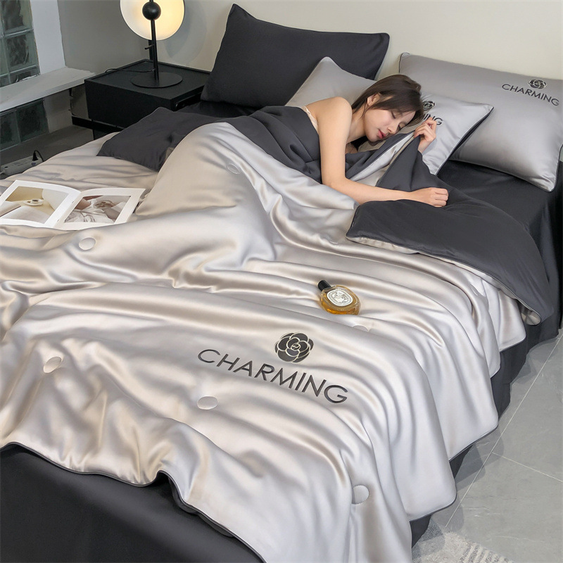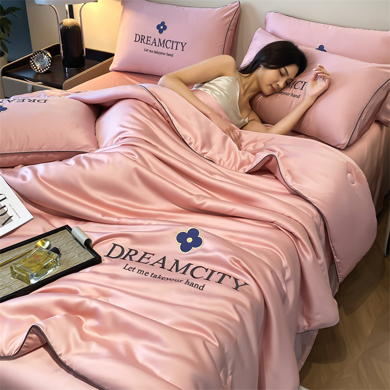 국경 간 폭발 씻은 실크 부티크 자수 여름 조용한 4 피스 세트 싱글 더블 에어컨 조용한 여름 여름 시원한 조용한 도매