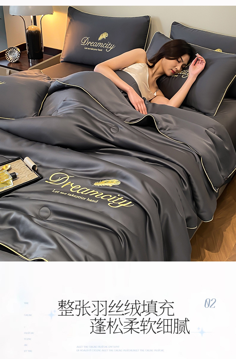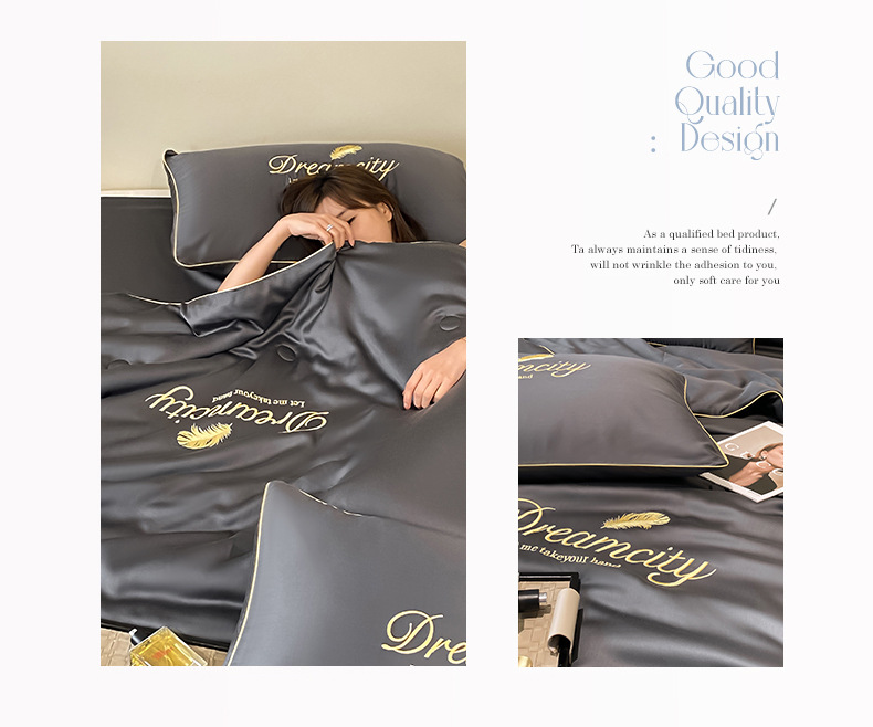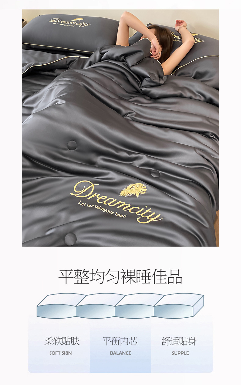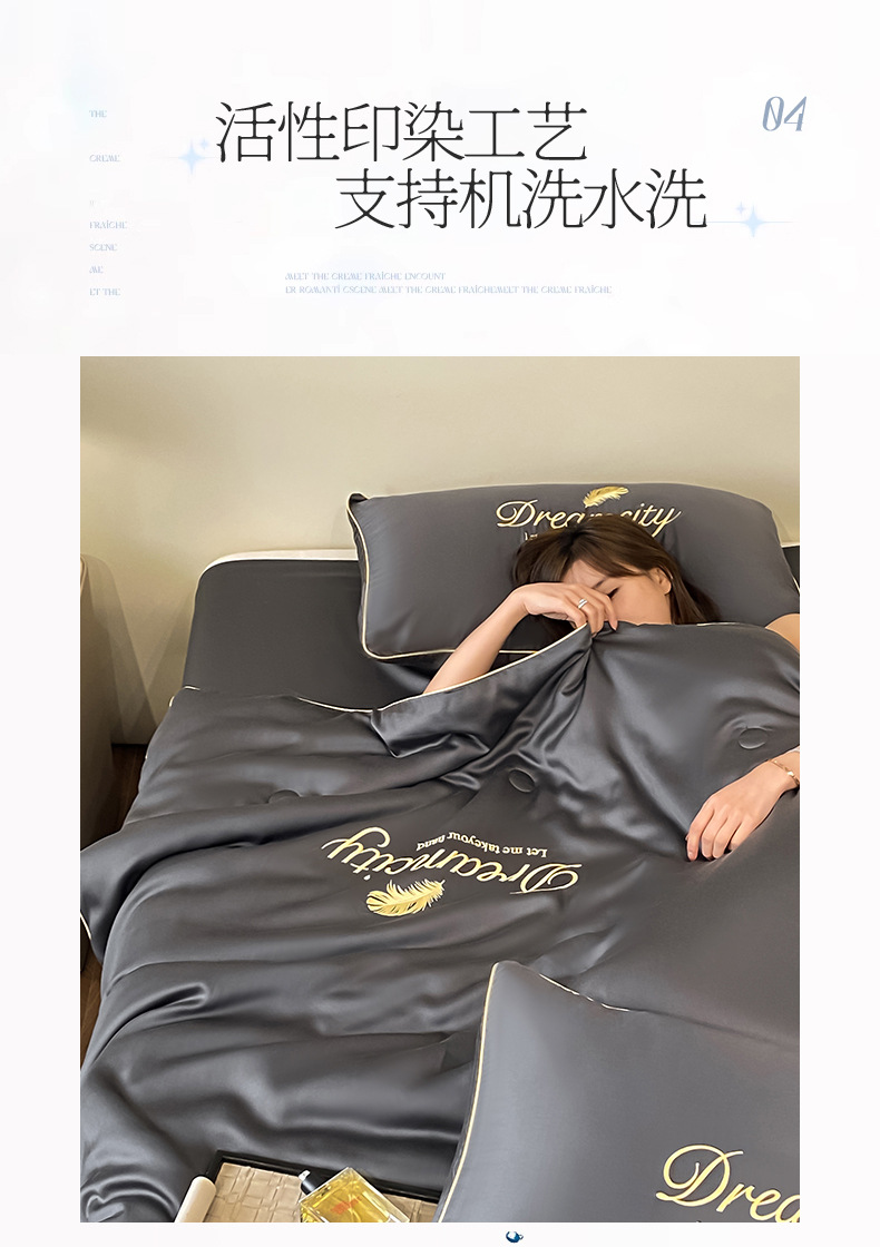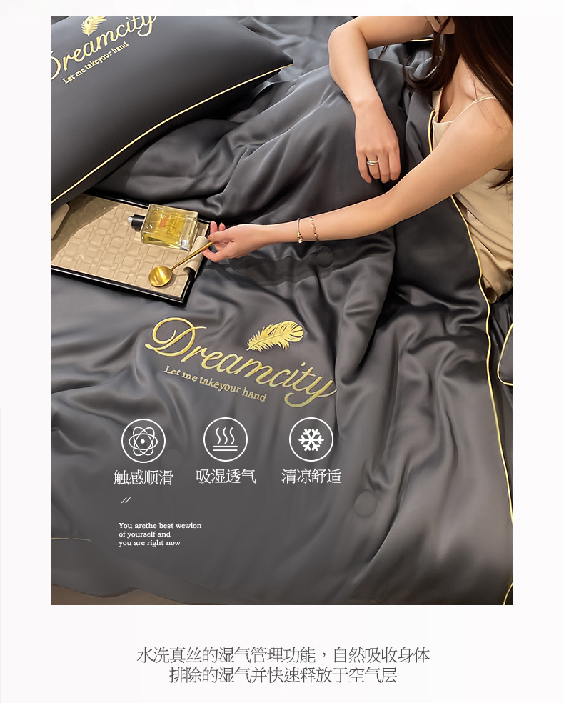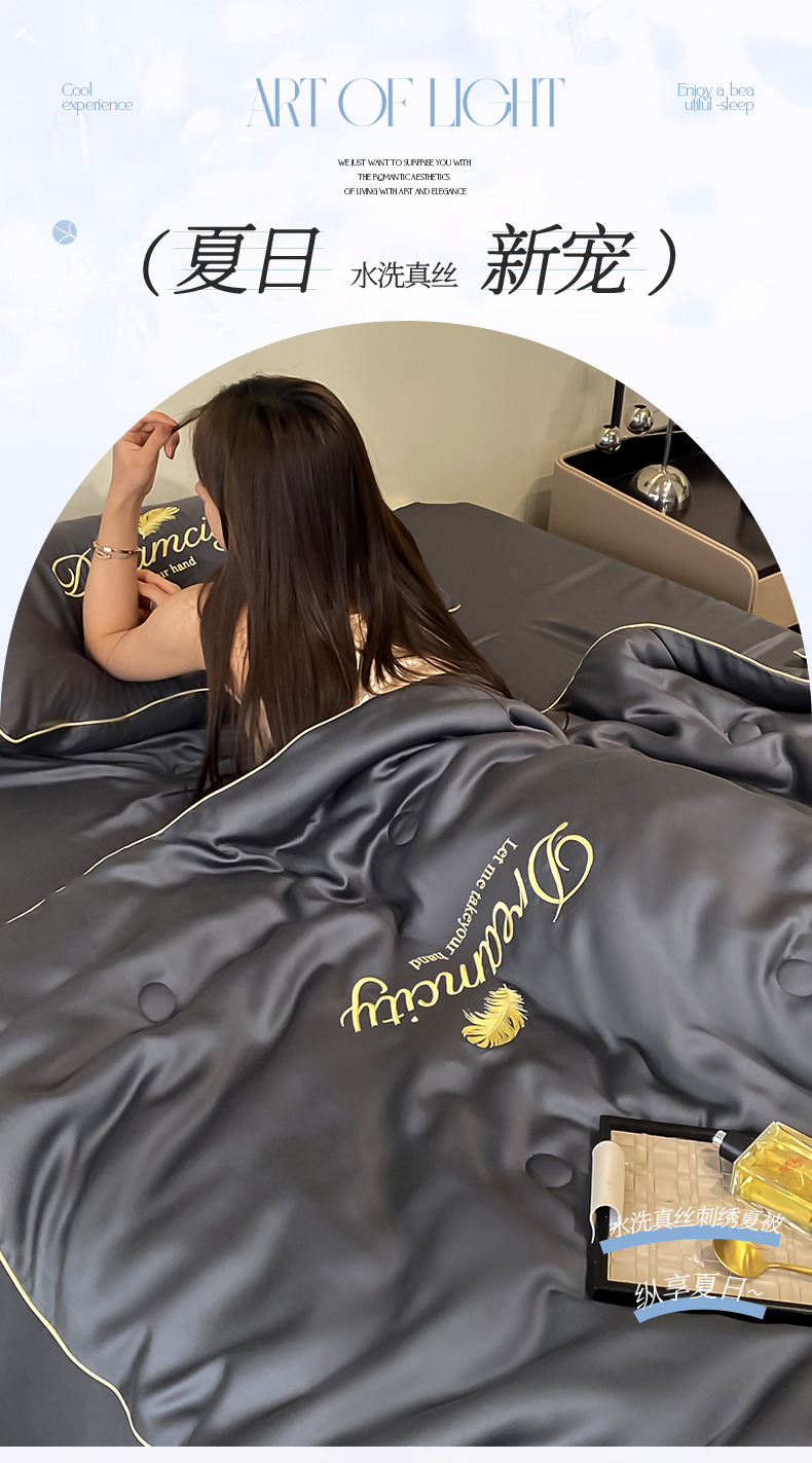 국경 간 폭발 씻은 실크 부티크 자수 여름 조용한 4 피스 세트 싱글 더블 에어컨 조용한 여름 여름 시원한 조용한 도매