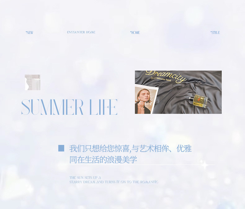 • 150x200cm 여름이불 4종세트 - 여름이불 + 시트 + 베갯잇 2개 {고급자수} YMF