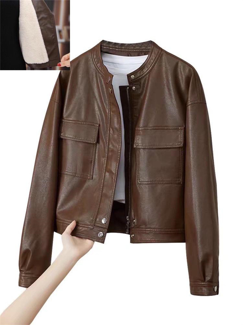 빈티지 라이스 화이트 수직 칼라 작은 가죽 자켓 여성의 봄과 가을 짧은 2025 새로운 PU 가죽 오토바이 가죽 자켓