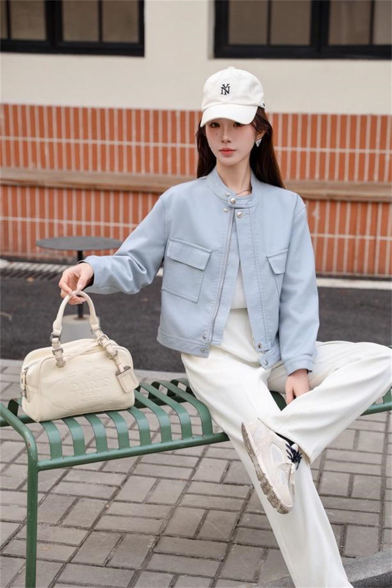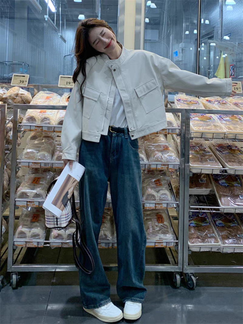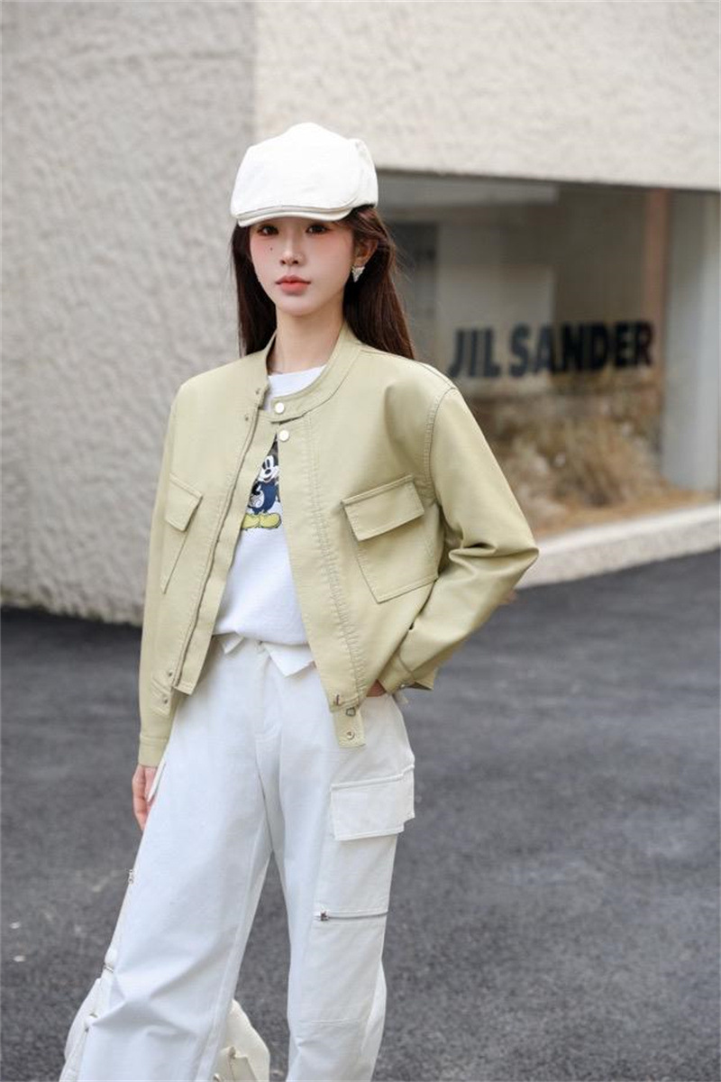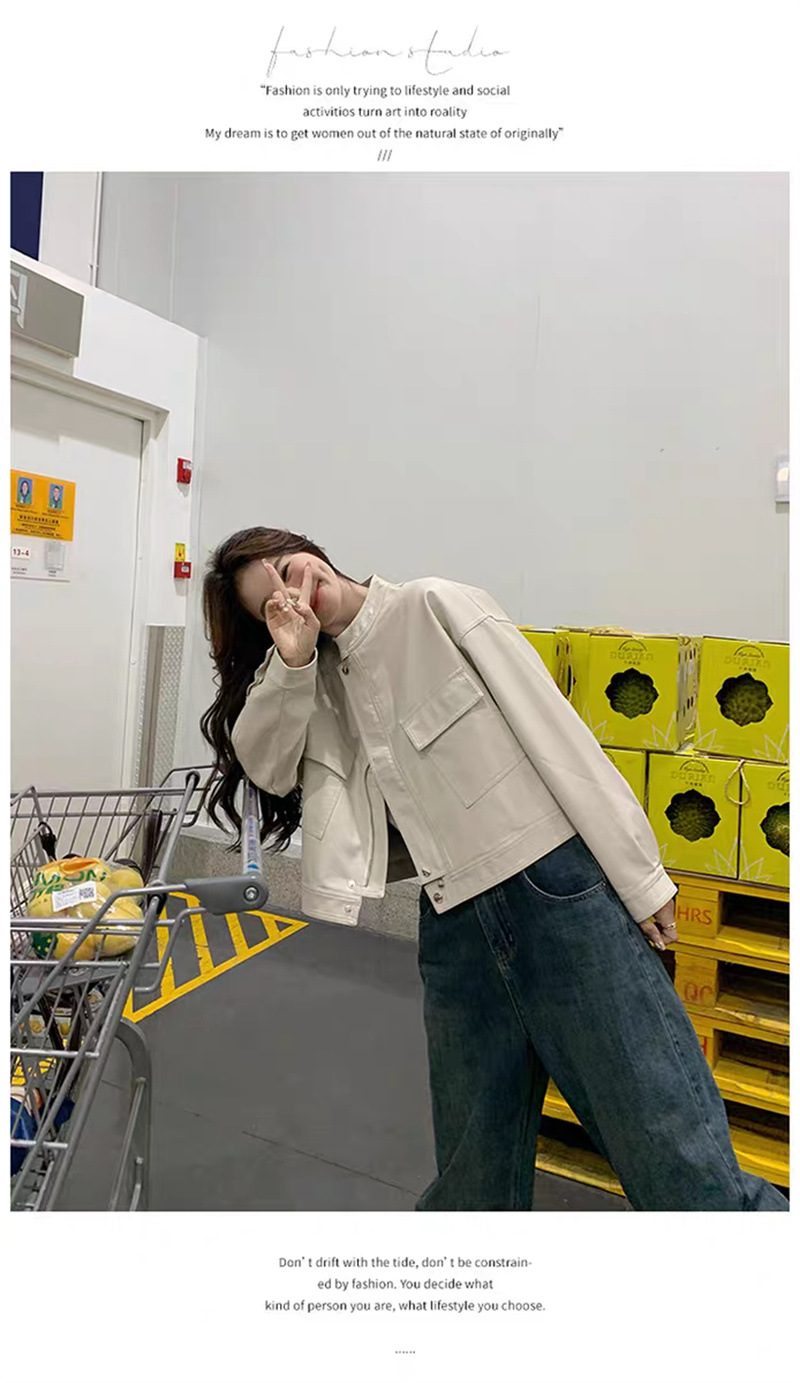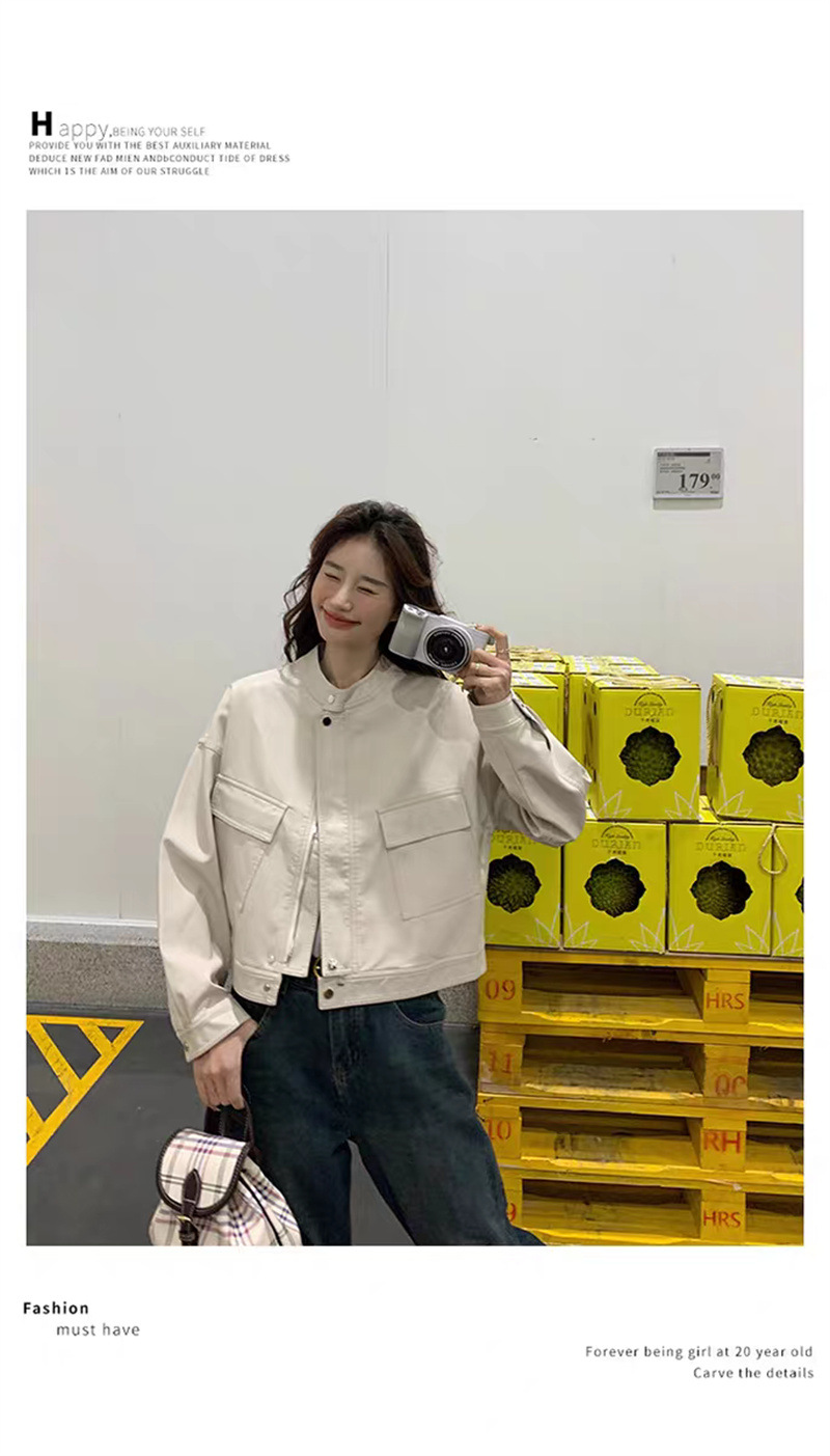 빈티지 라이스 화이트 수직 칼라 작은 가죽 자켓 여성의 봄과 가을 짧은 2025 새로운 PU 가죽 오토바이 가죽 자켓스토어 가기