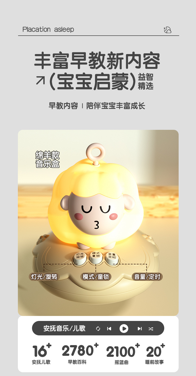 • [색상 상자] Little Sheep 원격 제어 버전 침대 벨 [밀크 커피 색상] 충전식 버전