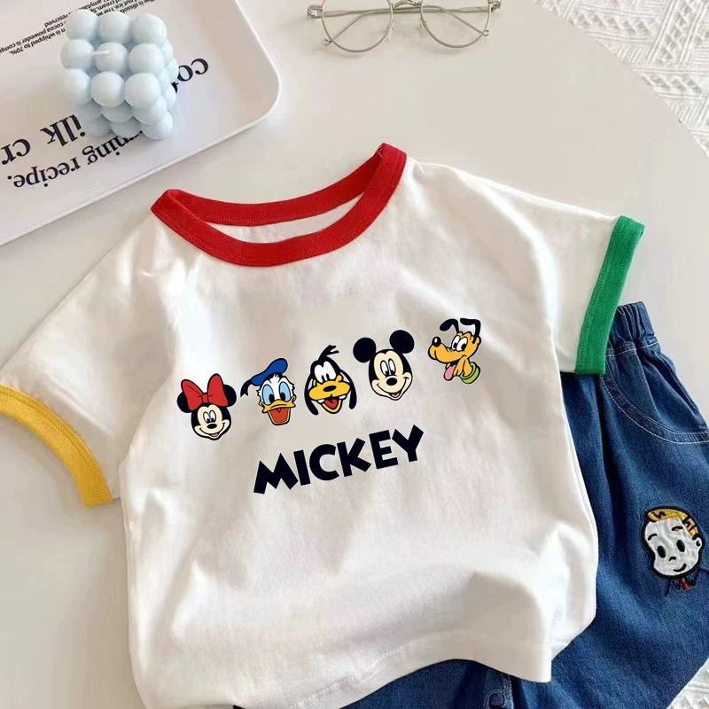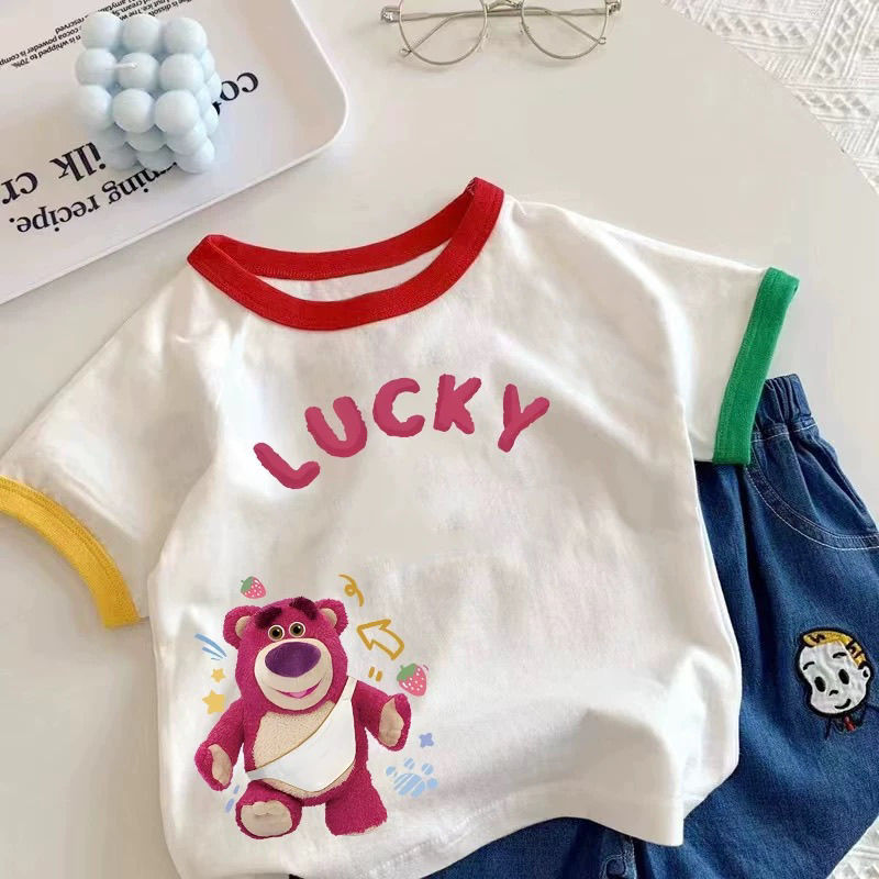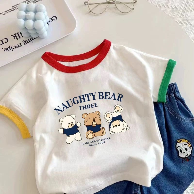 2025 새로운 아기 여름 서양식 소년 소녀 만화 반팔 티셔츠 100 면 반소매 어린이 탑