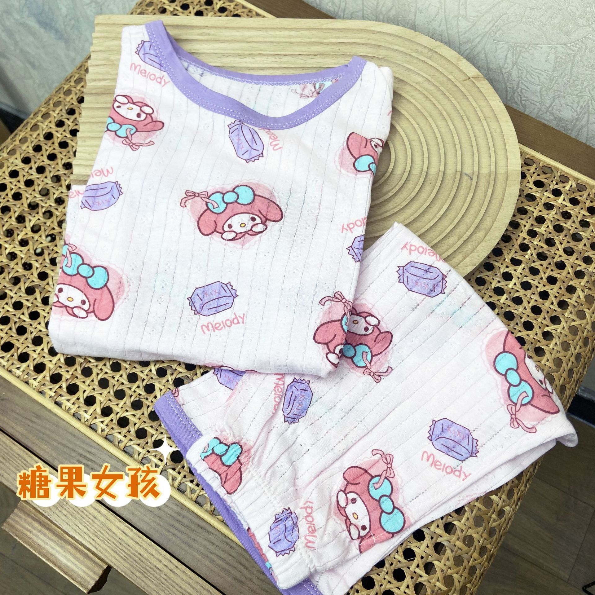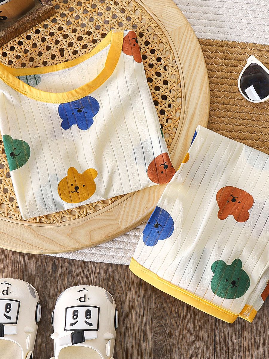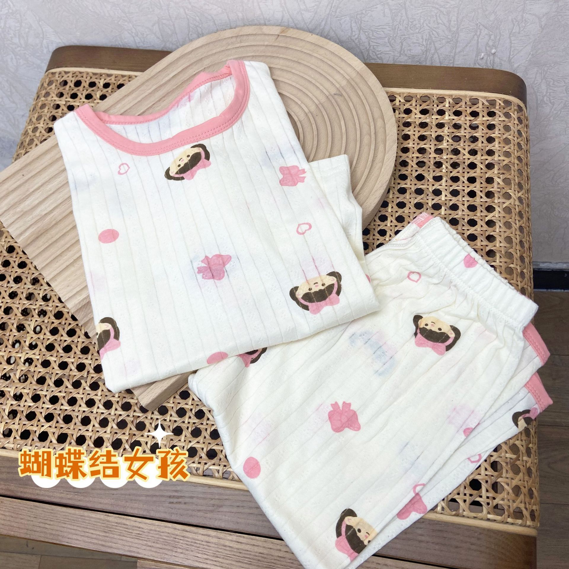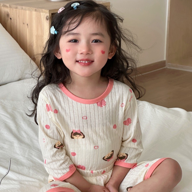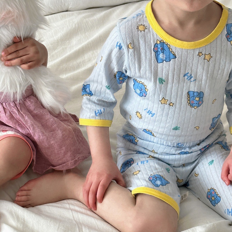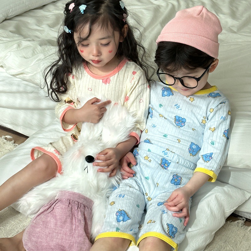 어린이 여름 자카드 에어컨 의류 남녀 아기 통기성 잠옷 세트 7부 소매 홈웨어 아동복 반팔스토어 가기